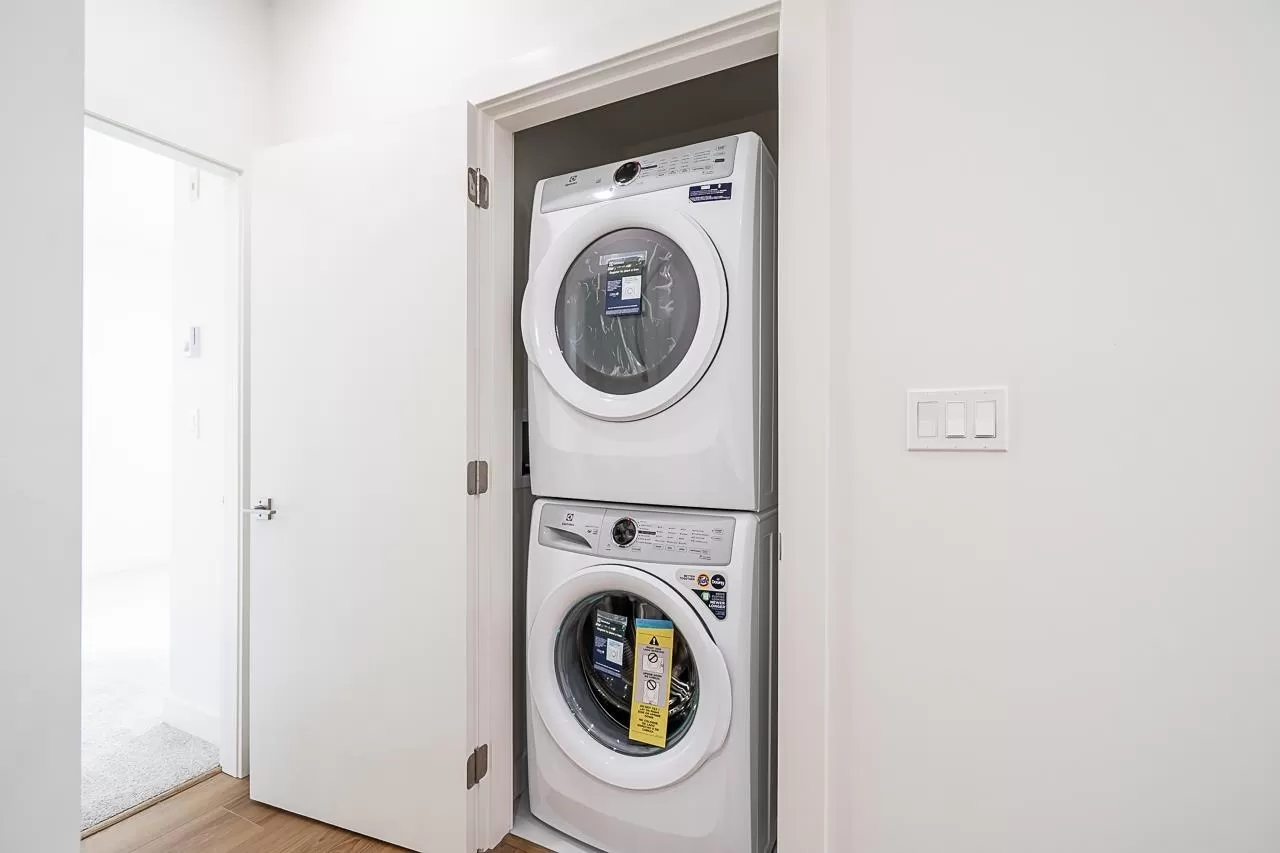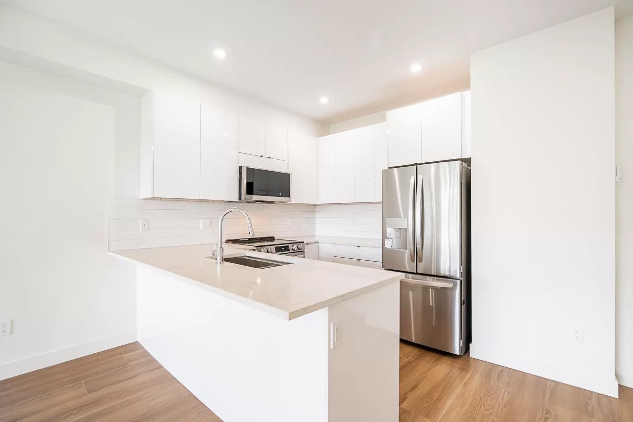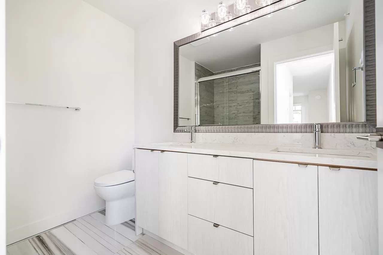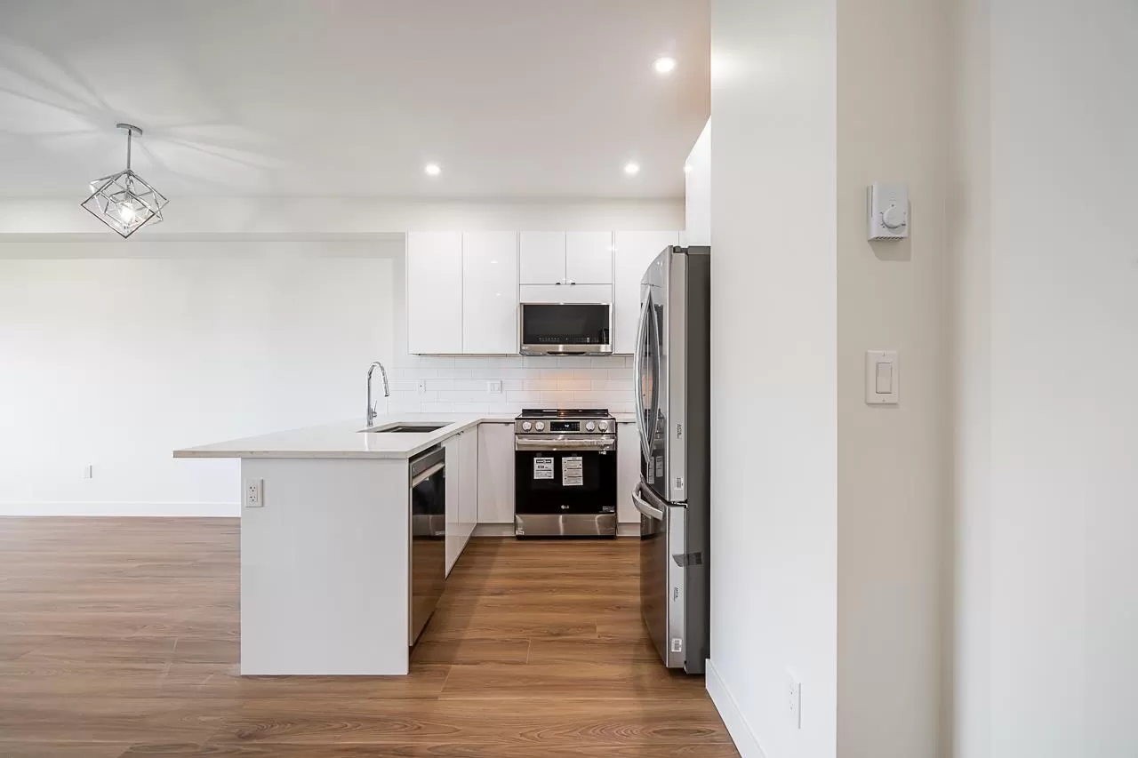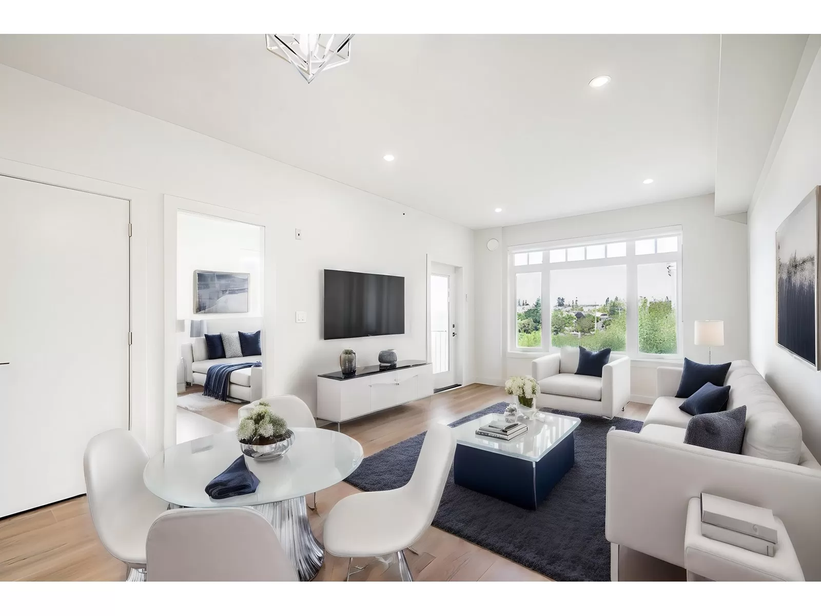 Welcome to Arora Court a collection of only 15 spacious boutique homes on the grennbelt! Beautiful TOP FLOOR LARGE 967sf corner South West 2bed/2bath home with a unique open concept floor plan. The thoughtfully designed interior offers high-quality finishes, 9ft ceilings, bright white kitchen with soft close cabinetry, quartz countertops, premium LG S/S appliances, zebra privacy roller blinds and a LARGE island for entertaining. Primary Bedroom features a LARGE walk in closet with closet organizers, spa like ensuite + BONUS vanity sitting area facing a massive window with a cathedral ceiling. Locker located on same floor as unit plus BONUS 2 parking stalls incl. Pets welcome no size restrictions! Book your private tour today! (id:27476)
