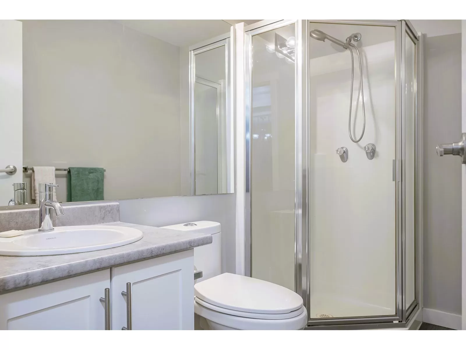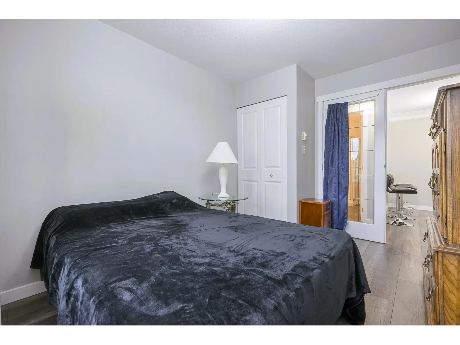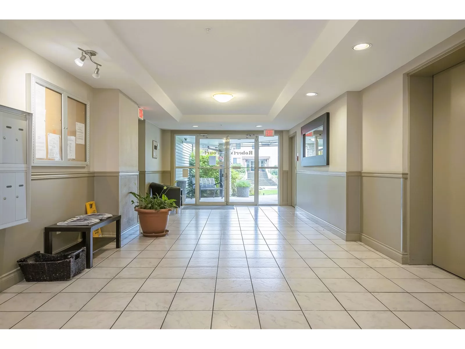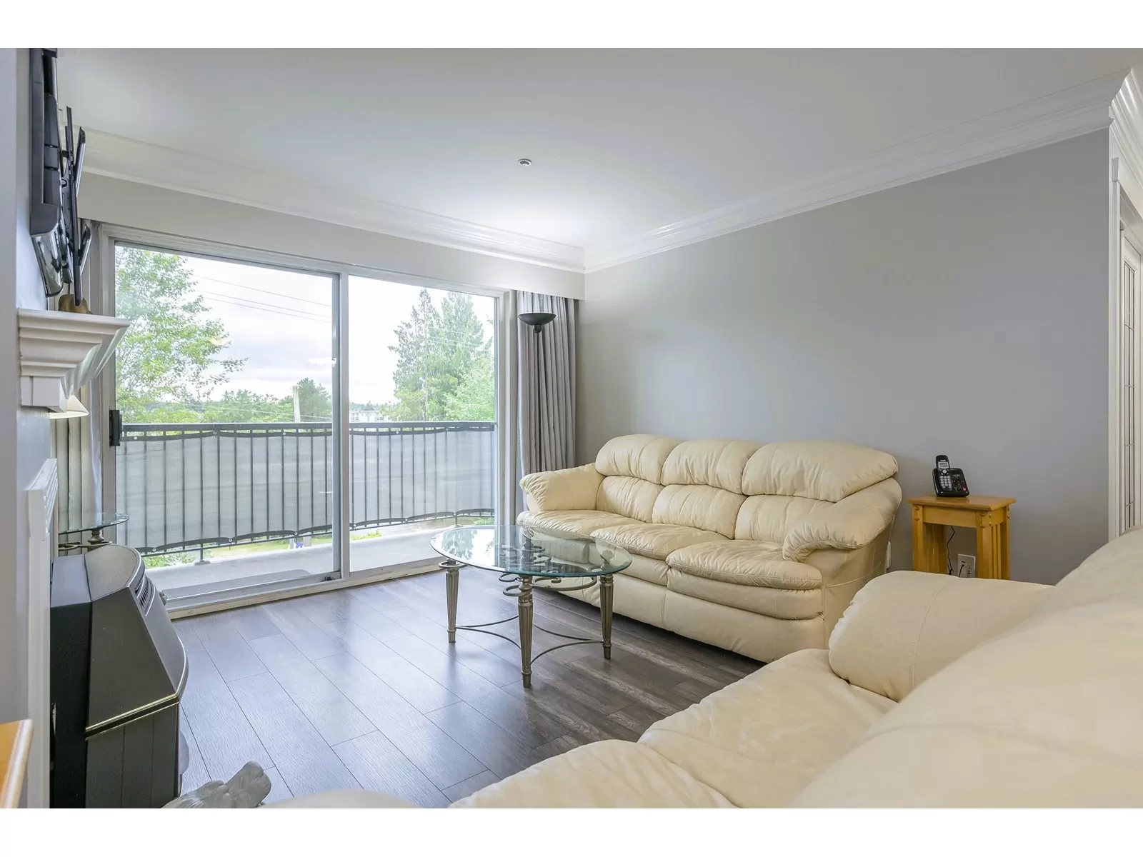 Welcome to Robert's Court! This bright, top-floor, south-facing 2-bed, 2-bath condo offers 1,026 sq. ft. of well-designed living space. Enjoy an open layout, updated kitchen with stainless steel appliances, white cabinets, and subway tile backsplash. Bedrooms are on opposite sides for added privacy, with a 4-piece ensuite in the primary: Crown moulding, a large laundry room, and extra storage complete the home. Building amenities include a gym and a social lounge. Steps to Fraser Hwy, transit, shopping, parks, schools, and Kwantlen University. Pet-friendly - 1 dog (max 18kg at maturity) and one cat, or two cats. A great start for first-time buyers! (id:27476)