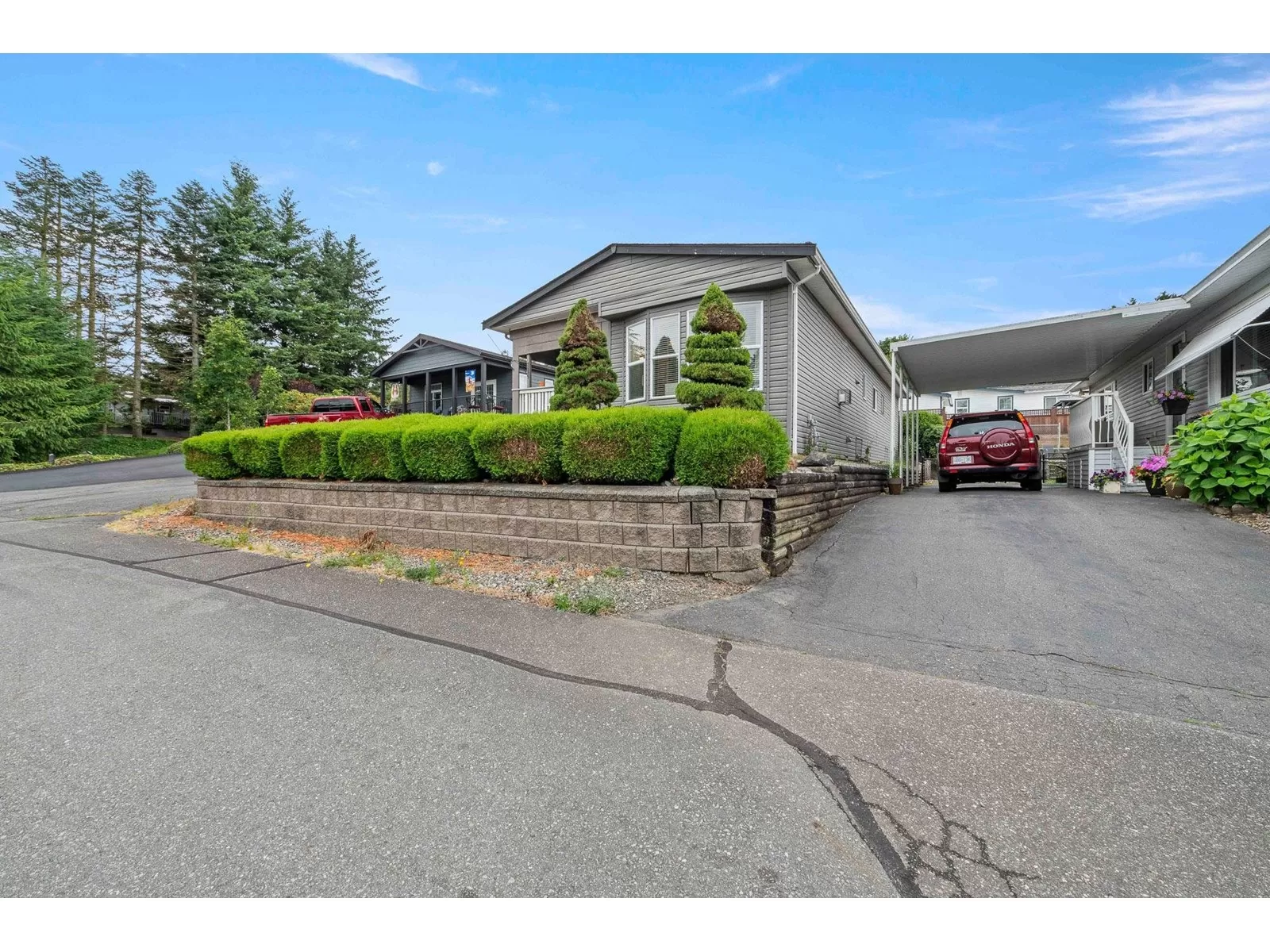 Perfect Pioneer 55+ Park. This hilltop home offers a blend of modern updates & natural surroundings, making it a perfect retreat. Located across from a park, it features a new pitched roof added in 2021 and durable vinyl siding for minimal upkeep. The updated kitchen with a skylight invites abundant natural light, and laminate flooring adds a sleek touch throughout. The primary bedroom has an ensuite door to a spacious main bath. For gardening enthusiasts, the tiered gardens are inviting. Enjoy the outdoors on the cozy covered porch & a large open deck. Low-maintenance yard backs onto greenspace, offering privacy. With ample parking & allowance for 2 pets without size restrictions, this property is full of possibilities. Don't miss this unique opportunity! Co-op Fee just $500/mnth. (id:27476)