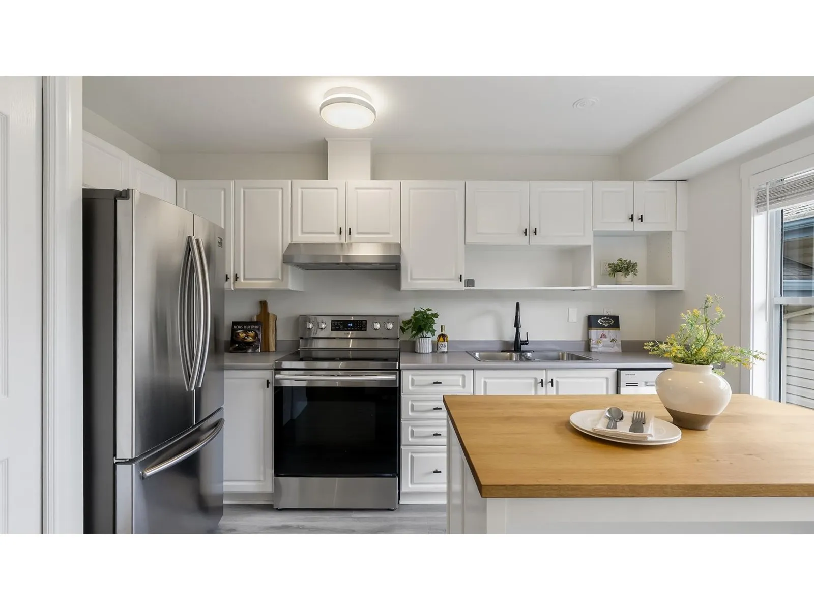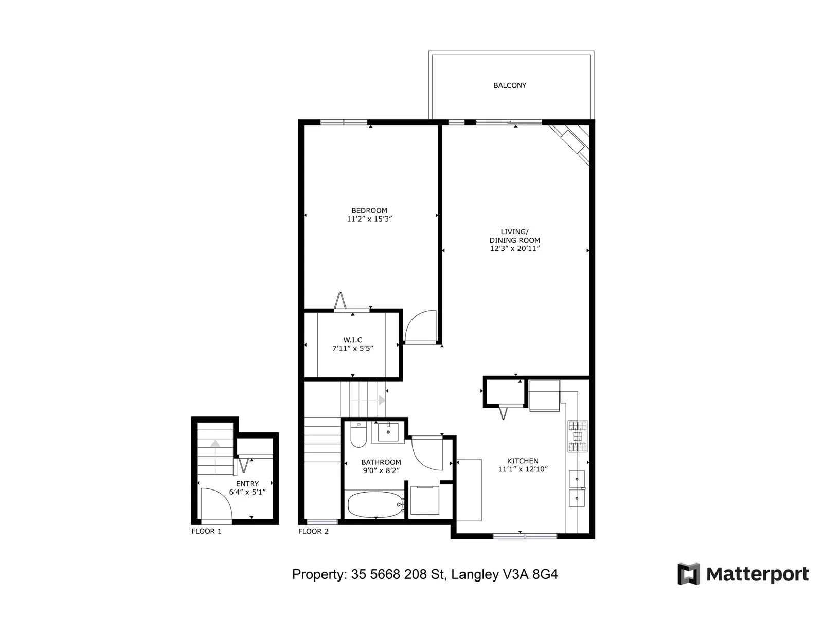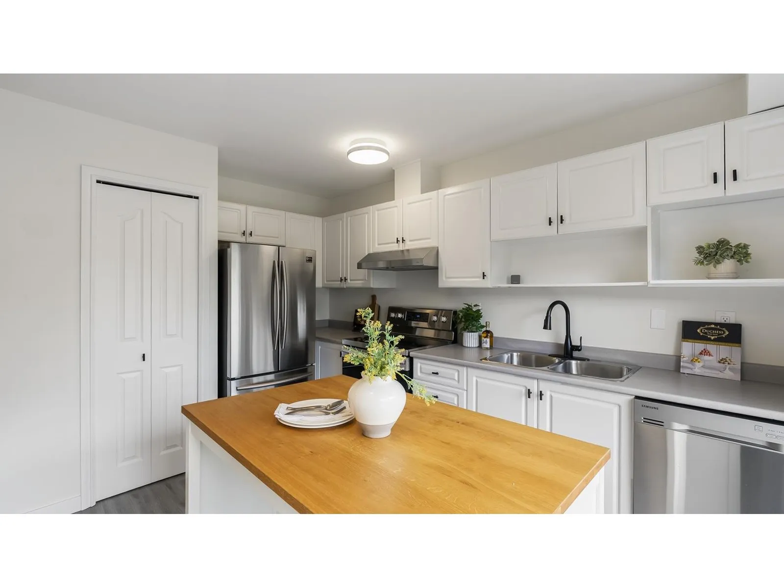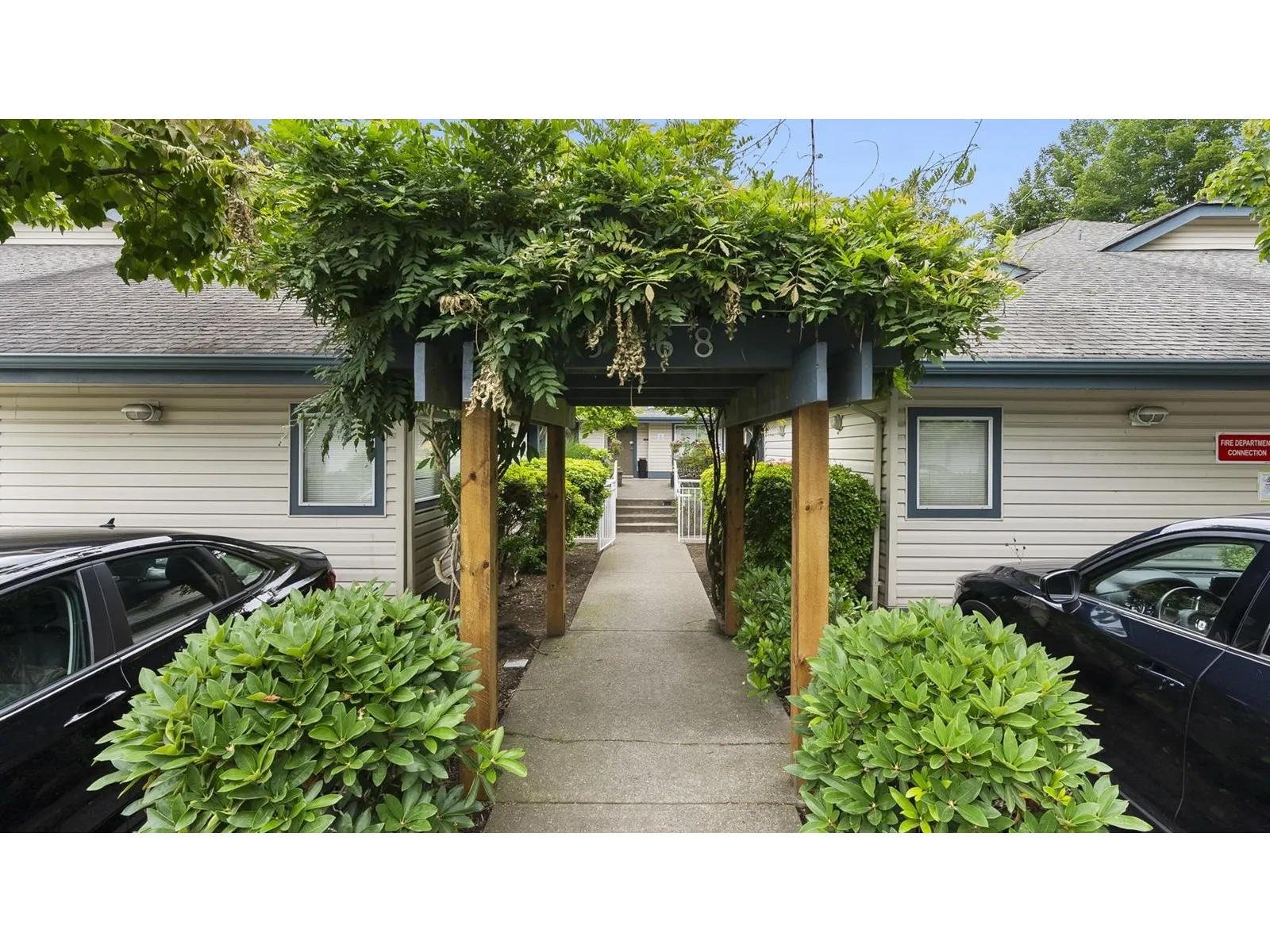 Bigger & better than a condo - this is a 1-bed, 1-bath, 900+sqft TOWNHOUSE! Welcome to The Meadows, tucked on a no-through street across from bike paths and a playground. Bright, spacious layout with laminate floors, s/s appliances, gas fireplace, portable island, in-suite laundry, and walk-in closet. Enjoy BBQs with guests on your spacious patio. Unbeatable location walkable to Downtown Langley-close to schools, Safeway, Costco, Walmart, and quick highway access via Langley Bypass. Half a block to Nicomekl Park & Kwantlen University. Parking for 2 cars with private covered spot + space in front. No elevator, no underground parking-just convenient townhouse living. Call today! (id:27476)