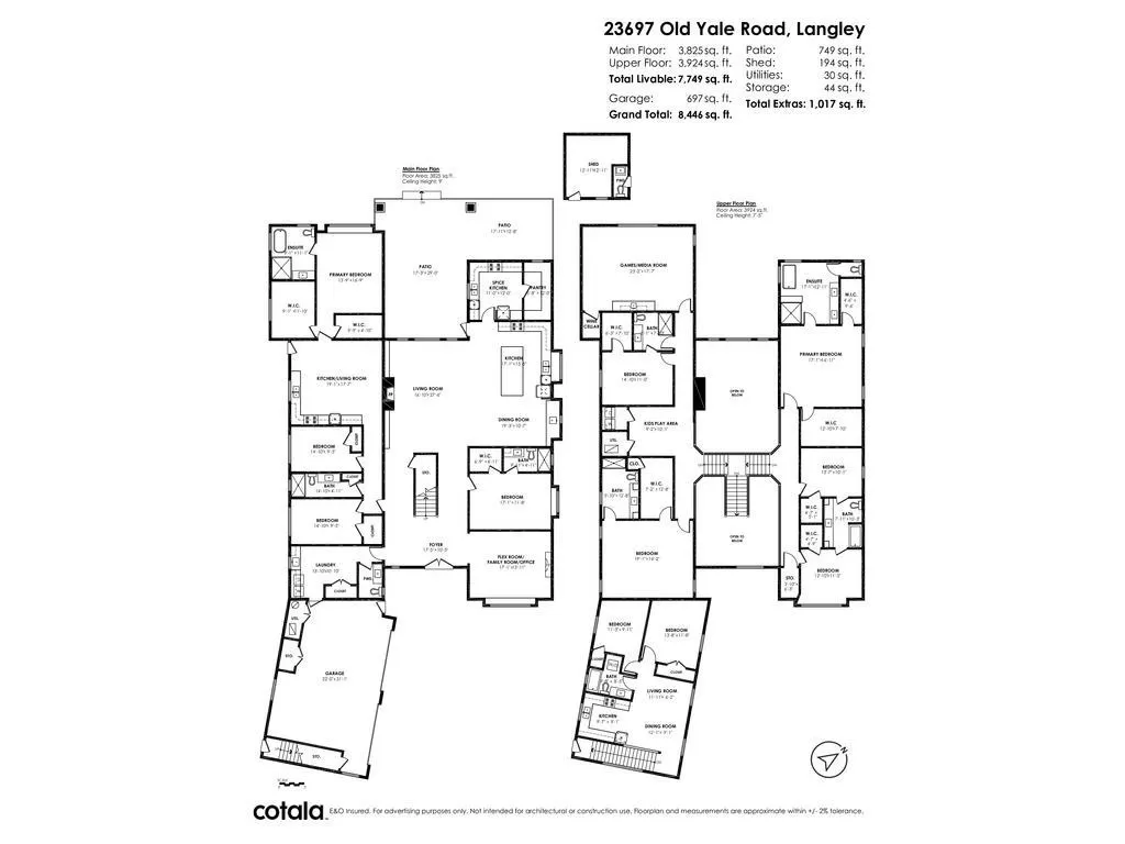PRICED TO SELL! Priced $989,000 below assessed value! Exceptional custom 7749 sqft 2 storey offers a perfect blend of luxury & versatility. Ideal for multi-generational living or income-generation with a 2-bedroom suite above the garage (with own meter) & a spacious 3 bedrm, 2 bathrm side suite. The main home boasts 6 large bedrooms all with walk-in closets & ensuites - one on the main. Grand living & dining area with soaring ceilings, seamlessly connected to a huge gourmet kitchen with breakfast bar island, separate spice kitchen & large walk-in pantry. Flex/family/office room. Upstairs - games/media room with a bar & wine cellar, kids play area & 5 bedrooms. Large covered patio with gas & plumbing, perfect for year-round entertaining. 4 zone Kef speaker Sonos system, camera system, Generac generator, A/C, shed with bathroom & so much more. 16,509 sqft property on city sewer. Loads of parking - room for your tuck, massive RV & all your toys. One-of-a-kind property that offers endless possibilities. A MUST SEE (id:27476)