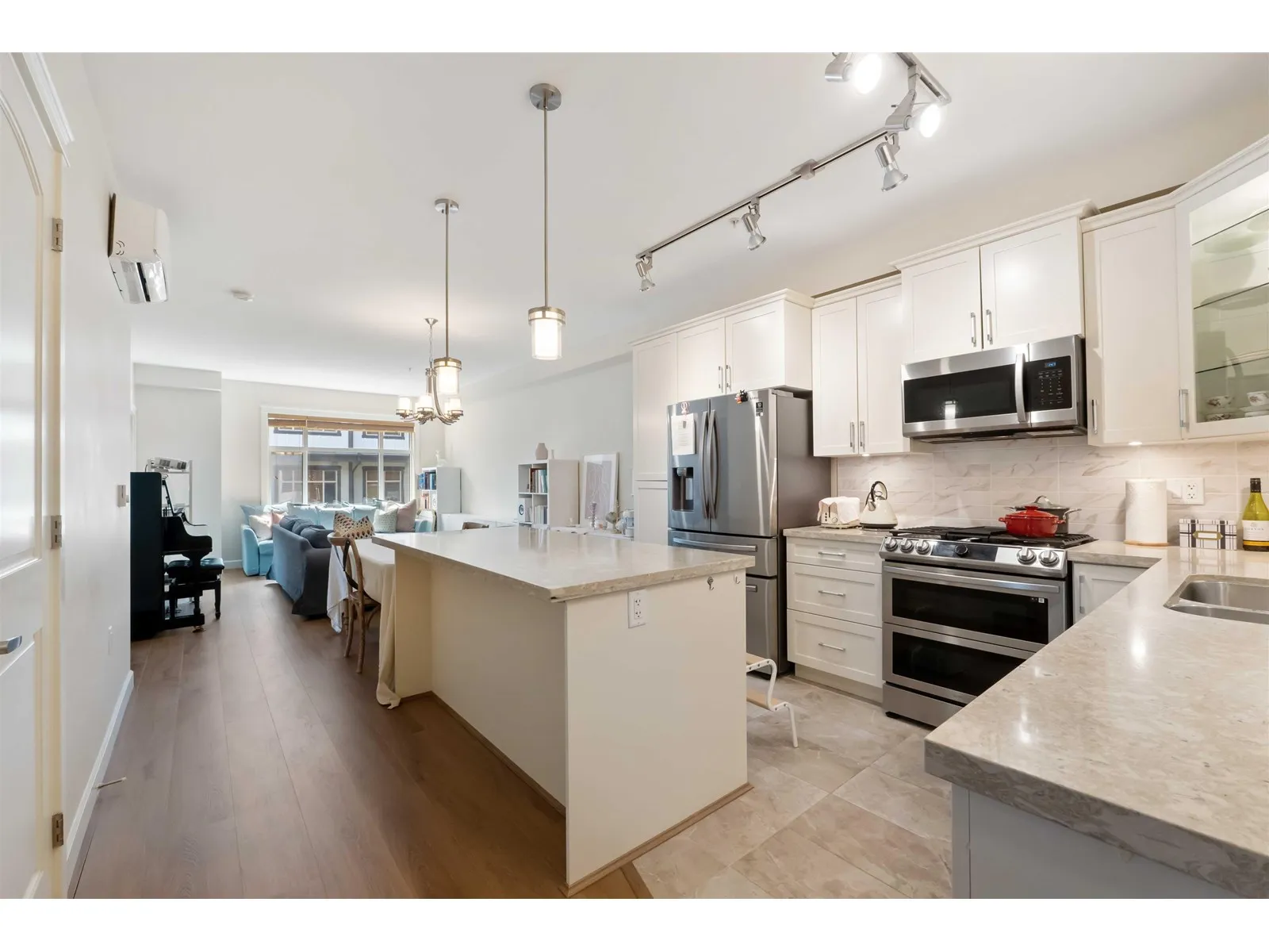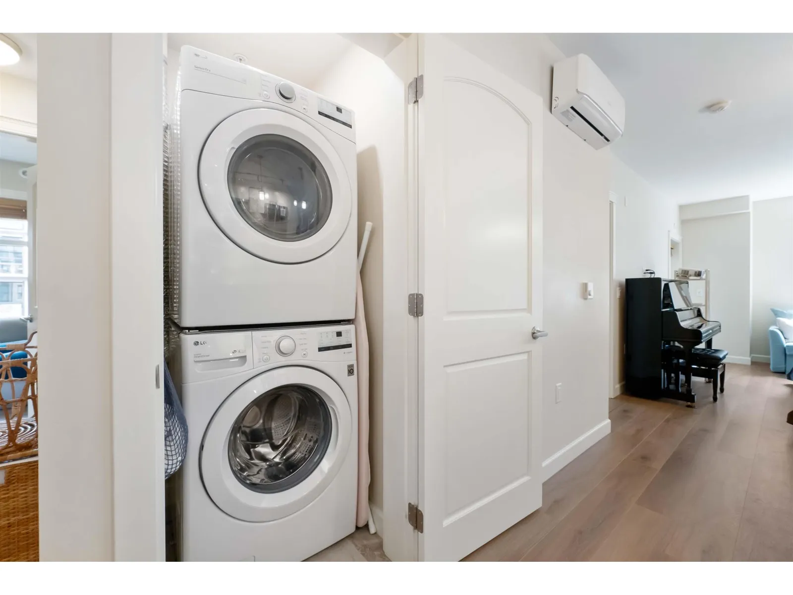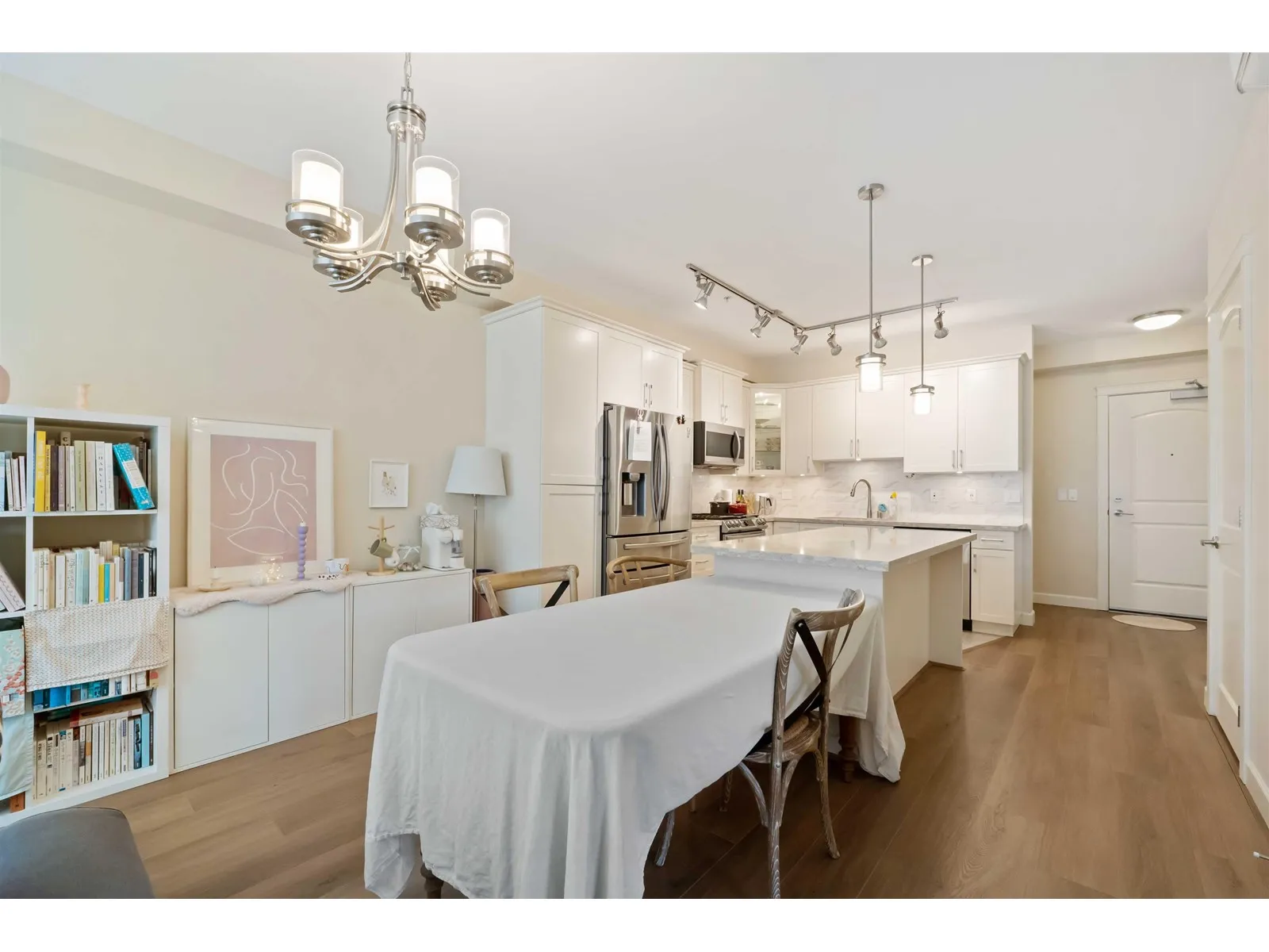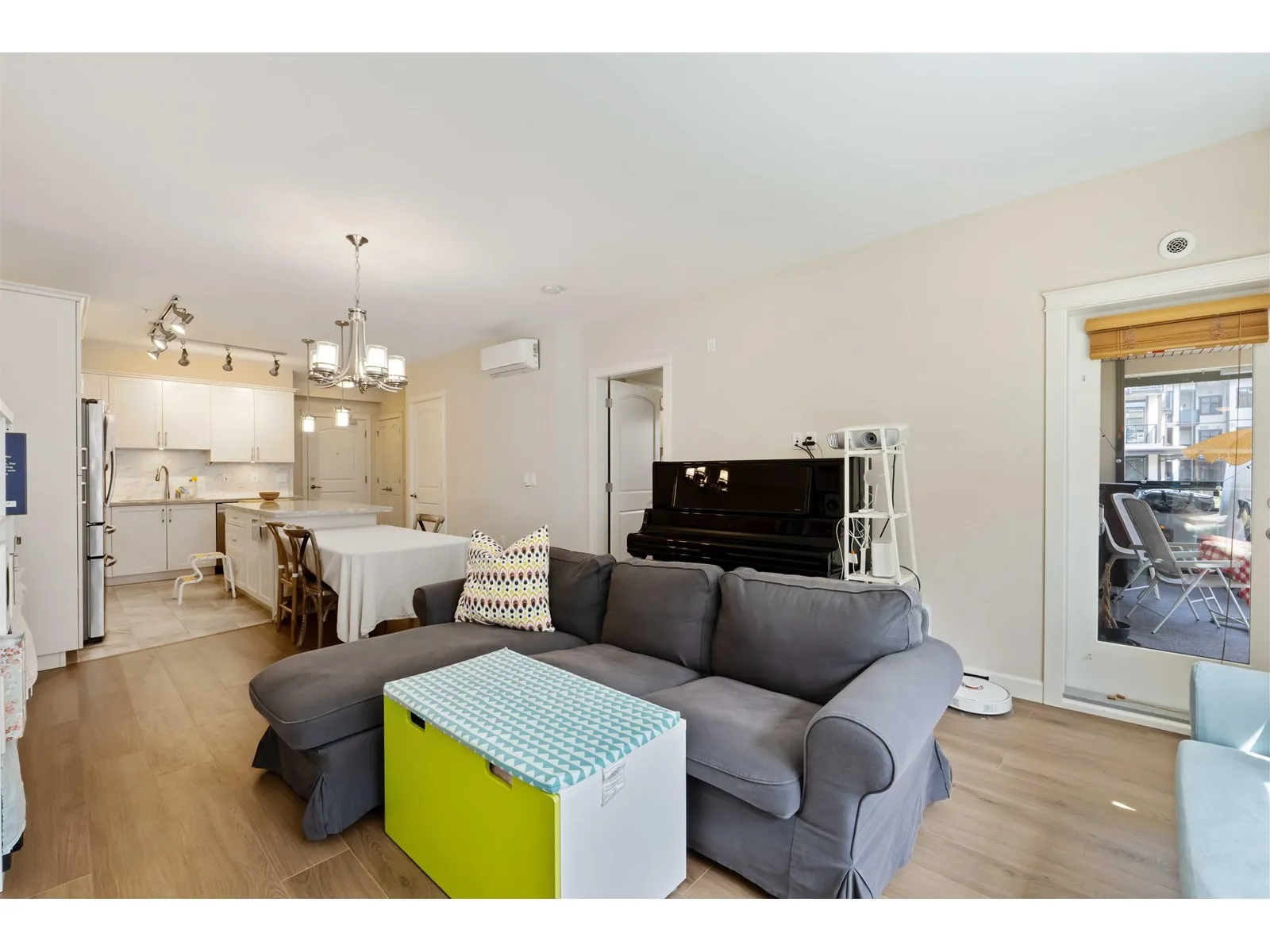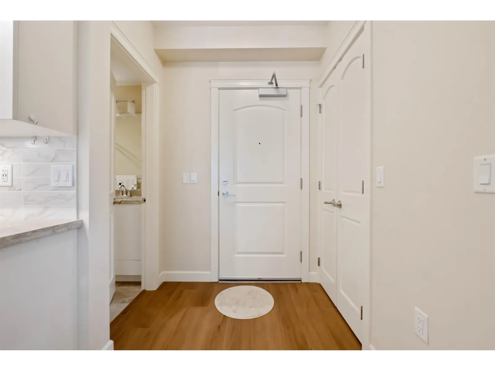 Live in style at Yorkson Park! This beautifully designed 5th-floor corner end unit 3 bed / 2 bath + solarium condo offers 1,041 sq. ft. of sophisticated living space plus a 236 sq. ft. glass-enclosed solarium, perfect for year-round enjoyment with a gas hookup for BBQ. The high-end kitchen features stainless steel appliances, a 5-burner gas cooktop, double oven, white shaker cabinets, and quartz countertops. Thoughtful upgrades include 9' ceilings, A/C & heating and heated bathroom floors. Comes with 2 underground parking stalls and a private roll-up storage locker with an EV outlet. Ideally located just steps from Carvolth Park & Ride, Hwy 1, and top-tier shopping. Low strata fees include gas, fitness room, a lounge, and a playroom. (id:27476)