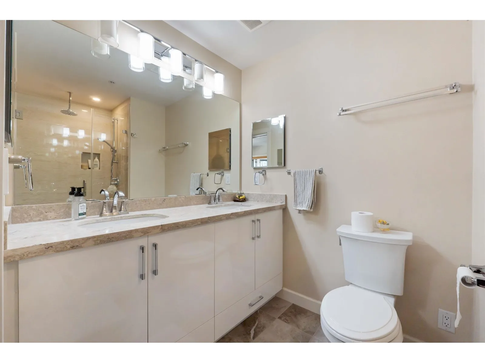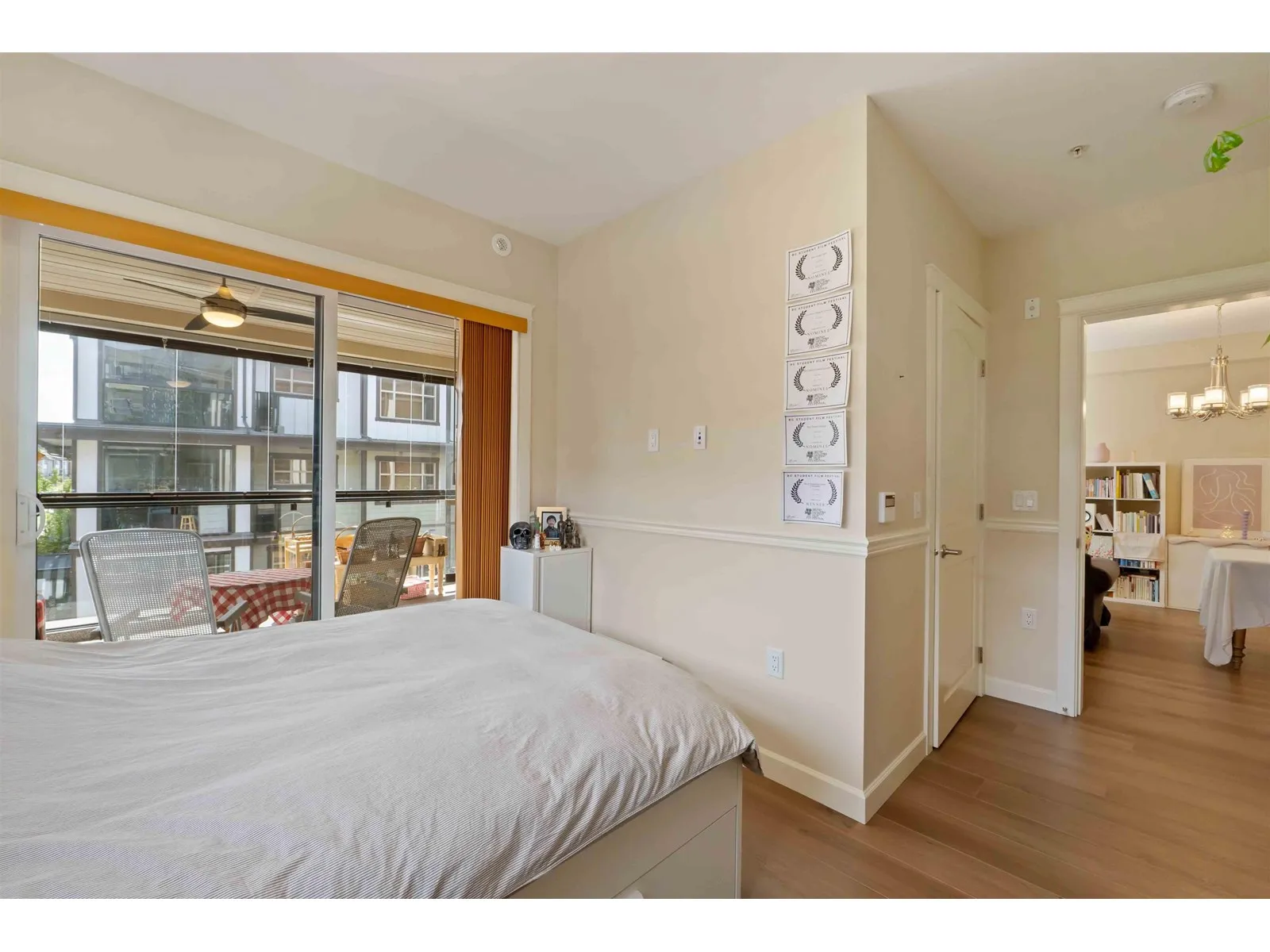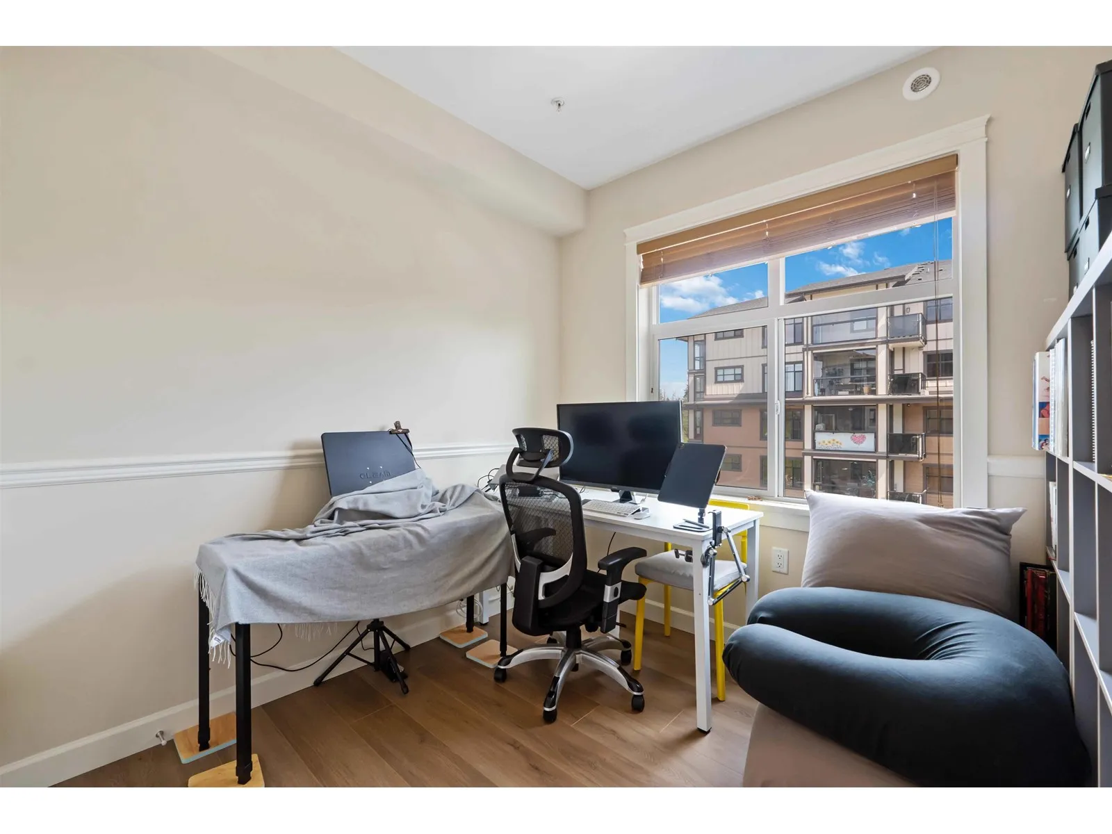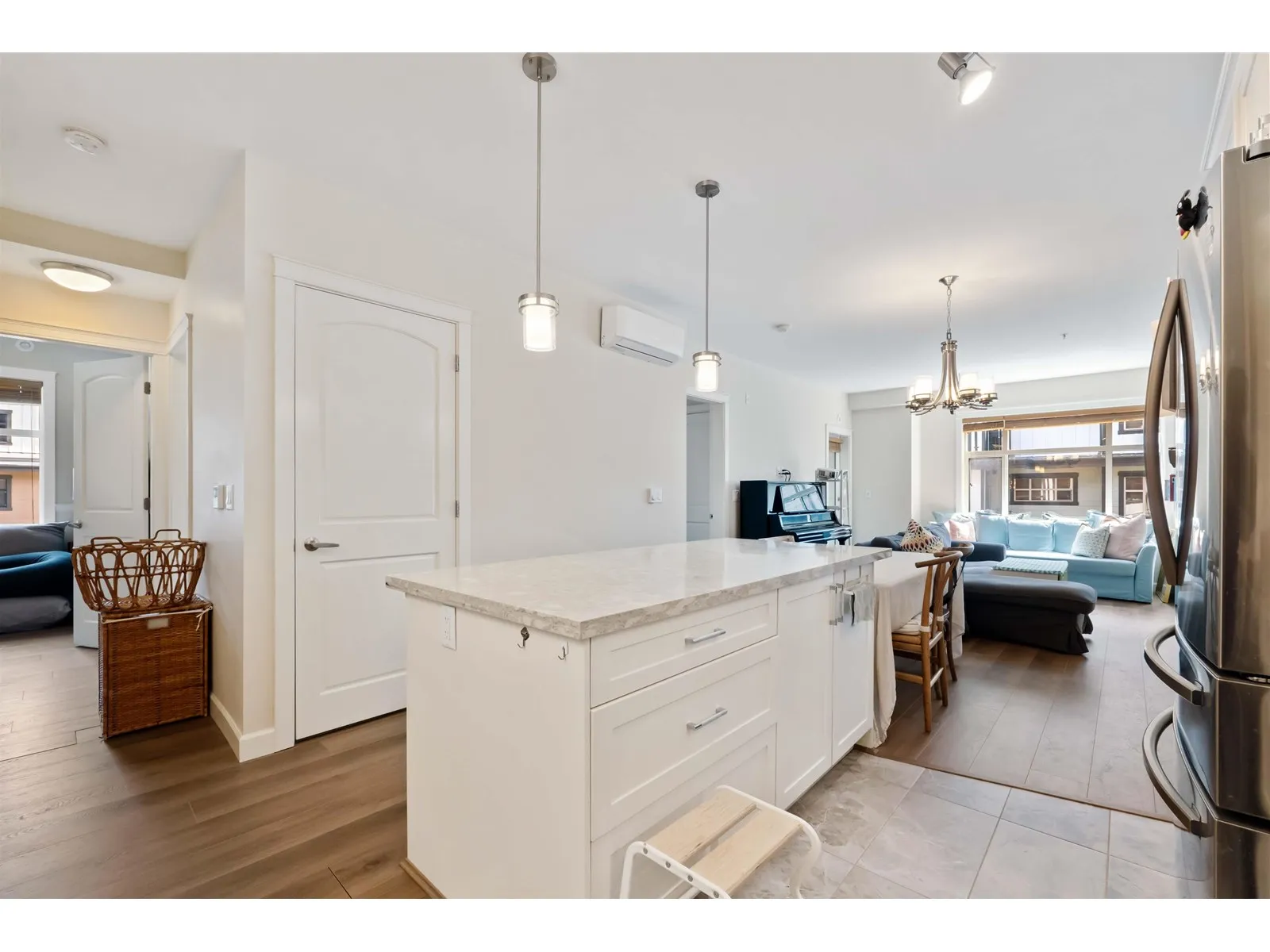 Live in style at Yorkson Park! This beautifully designed 5th-floor corner end unit 3 bed / 2 bath + solarium condo offers 1,041 sq. ft. of sophisticated living space plus a 236 sq. ft. glass-enclosed solarium, perfect for year-round enjoyment with a gas hookup for BBQ. The high-end kitchen features stainless steel appliances, a 5-burner gas cooktop, double oven, white shaker cabinets, and quartz countertops. Thoughtful upgrades include 9' ceilings, A/C & heating and heated bathroom floors. Comes with 2 underground parking stalls and a private roll-up storage locker with an EV outlet. Ideally located just steps from Carvolth Park & Ride, Hwy 1, and top-tier shopping. Low strata fees include gas, fitness room, a lounge, and a playroom. (id:27476)