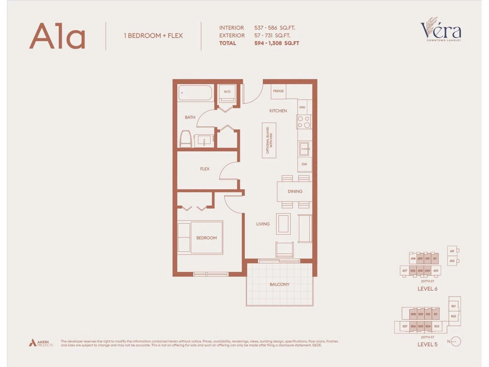 Vera Langley Downtown! 1 Bed + 1 Bath + Den, smart and affordable living just 8-min walk from the future 2028 SkyTrain. Includes 1 EV-ready parking and 1 locker on the same floor. Enjoy 9' ceilings, wall-mounted AC, open layout, and premium Fulgor appliances in a sleek kitchen with quartz counters and soft-close cabinetry. Located in the heart of Downtown Langley with easy access to shops, parks, and transit. All units at Vera qualify for First-Time Home Buyer GST exemption! Excellent incentives available-don't miss this opportunity! Please call For private showings at the Vera Building! (id:27476)