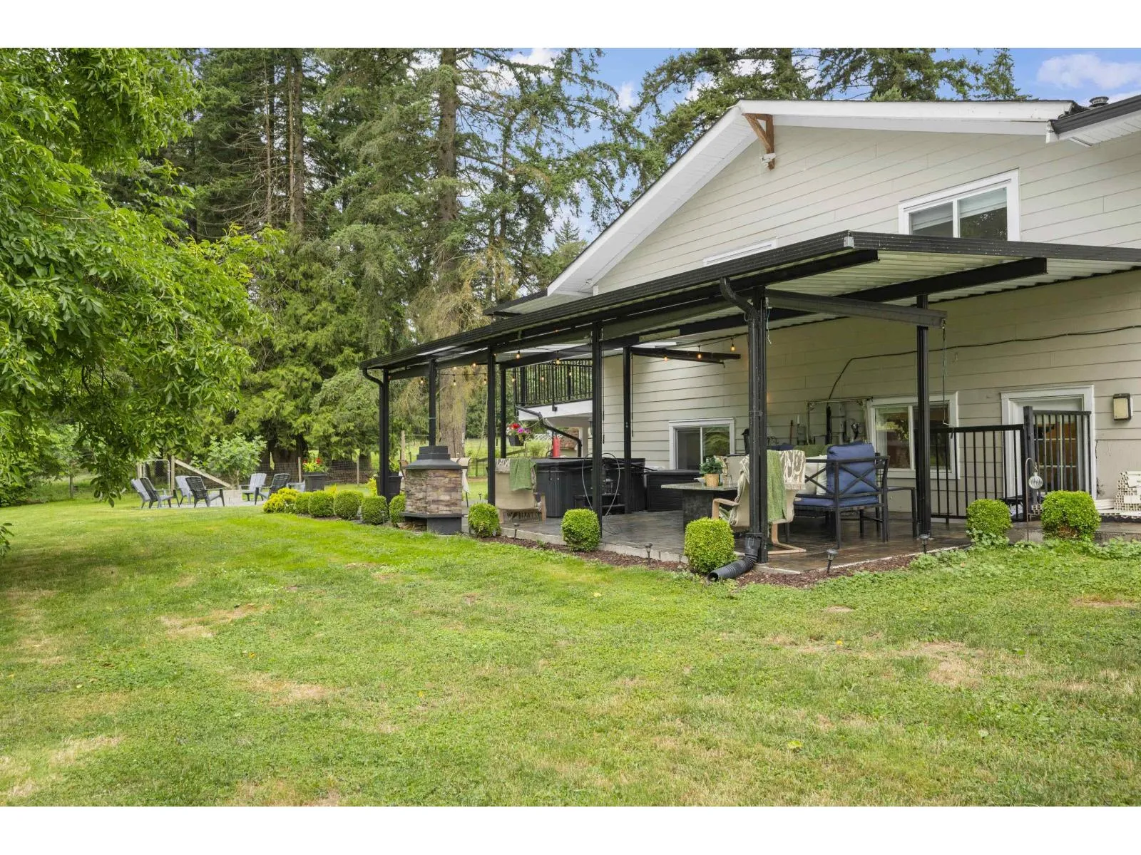 WELCOME HOME to this substantially updated home nestled in 5 acres in Glen Valley, perfect for the car enthusiast, hobby farmer, or horse lover. This beautifully landscaped, gated property boasts 6 beds, 3 bathrooms, and features an open floor plan on the main floor with beautiful hardwood flooring, new kitchen, new bathrooms, crown molding and access to multiple covered decks. Enjoy wood fireplaces both upstairs and down, and heated tile flooring (including the basement). The basement suite offers 3 bed, huge open concept, with large kitchen. Grounds include all kinds of fruit trees (cherry, pear, apple),grape vines, fig & walnut trees and more. There is a triple car garage, horse barn, large shed & separate enclosures for sheep, chickens & dogs. Quick access to #1. 2nd home possible (id:27476)