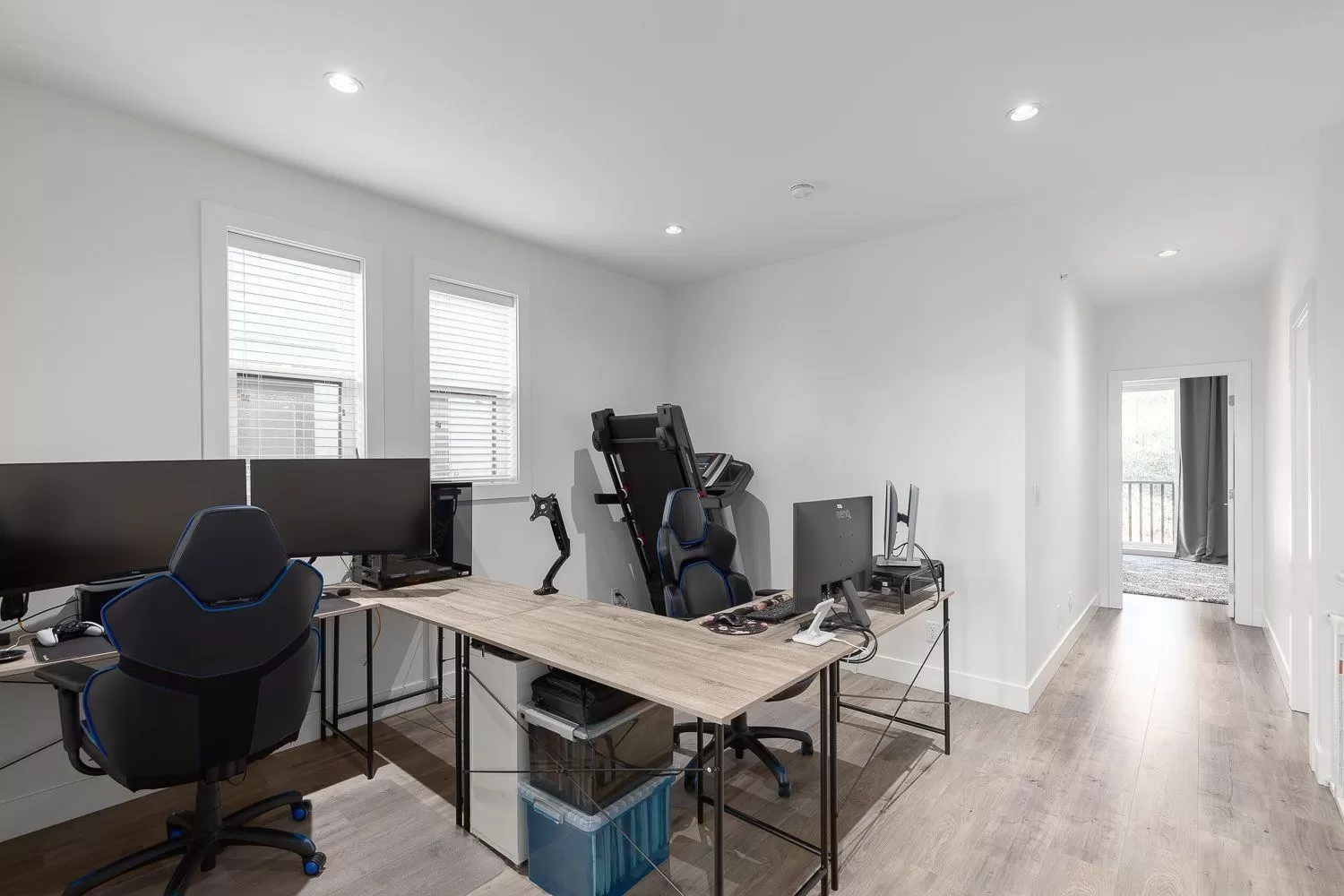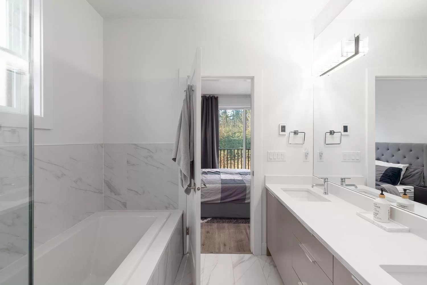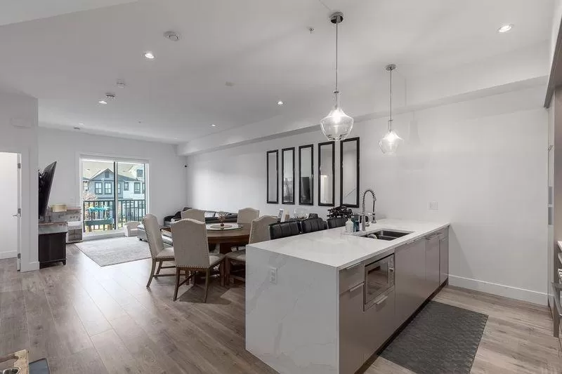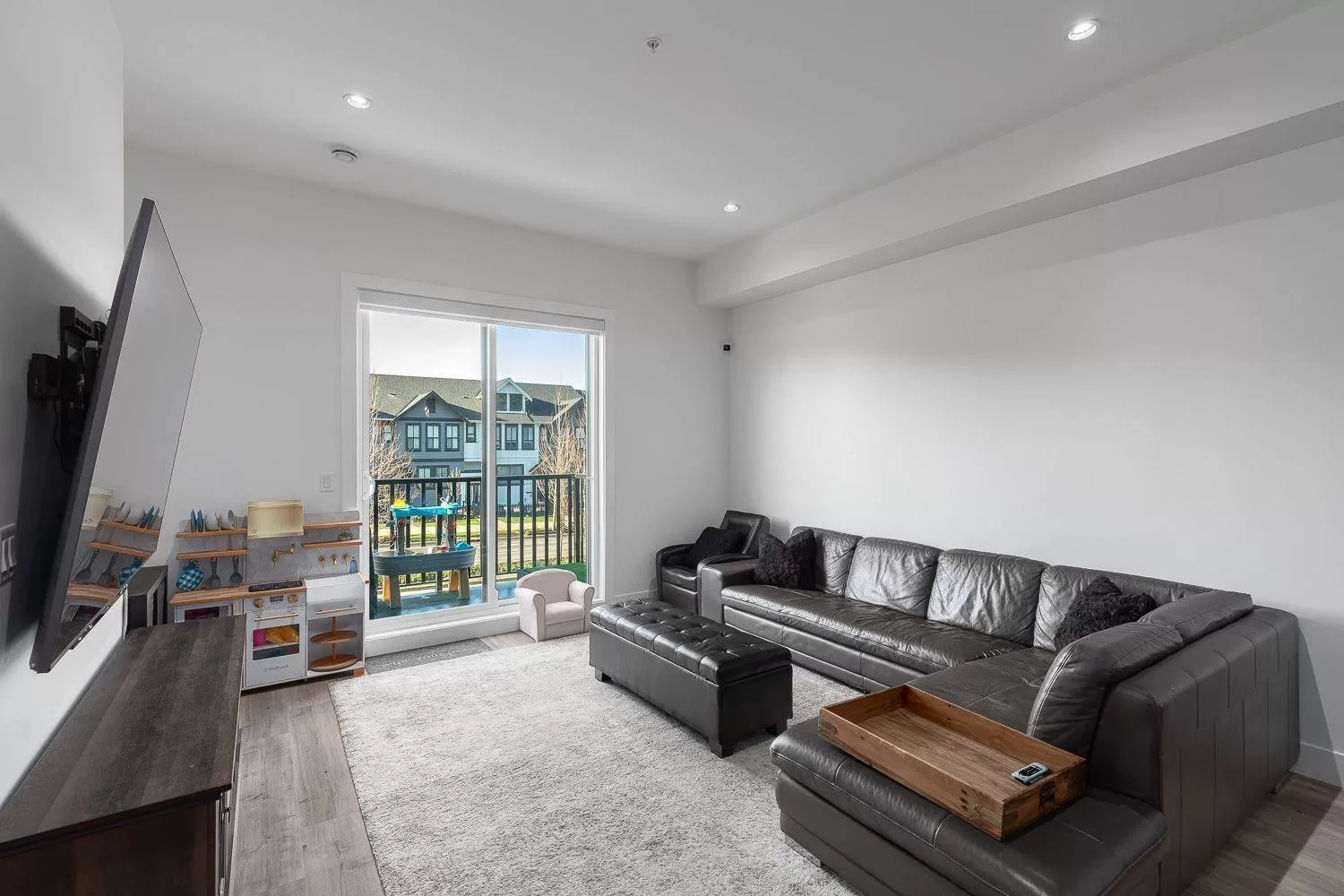 NO STRATA FEES! This stunning, non-strata corner unit Rowhome is located in the heart of the sought-after Latimer neighbourhood. The entertainer's dream layout features an open-concept design with 10' ceilings, a spacious galley kitchen, dining area, and living room with premium Fisher & Paykel appliances, a gas stove, and access to a deck with gas BBQ hookup. Includes a convenient powder room and a fully finished basement with an in-law suite. Offers 4 bedrooms with an optional 5th, two 3-piece bathrooms, and a luxurious 5-piece primary ensuite with dual vanities. Side-by-side double garage with ample parking. Georgian architecture surrounded by mature landscaping. A brand-new elementary school is just a block away. (id:27476)