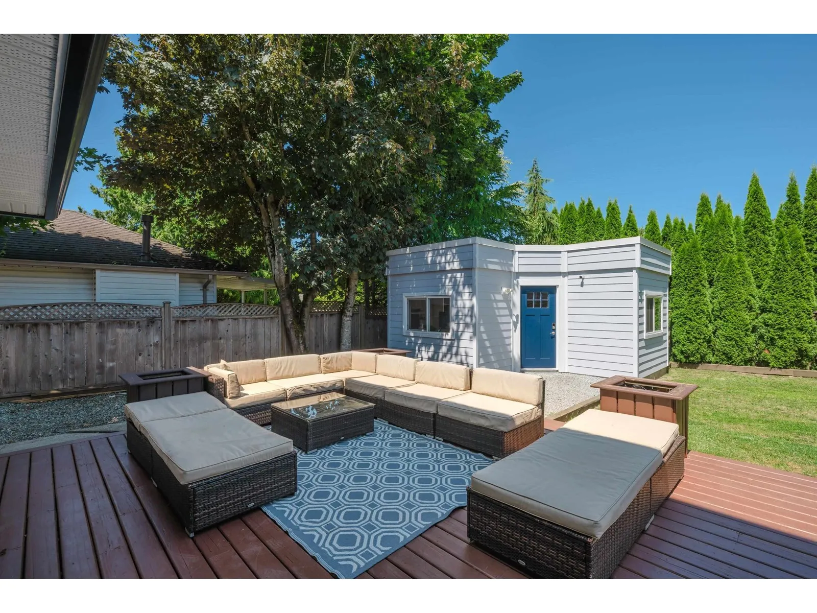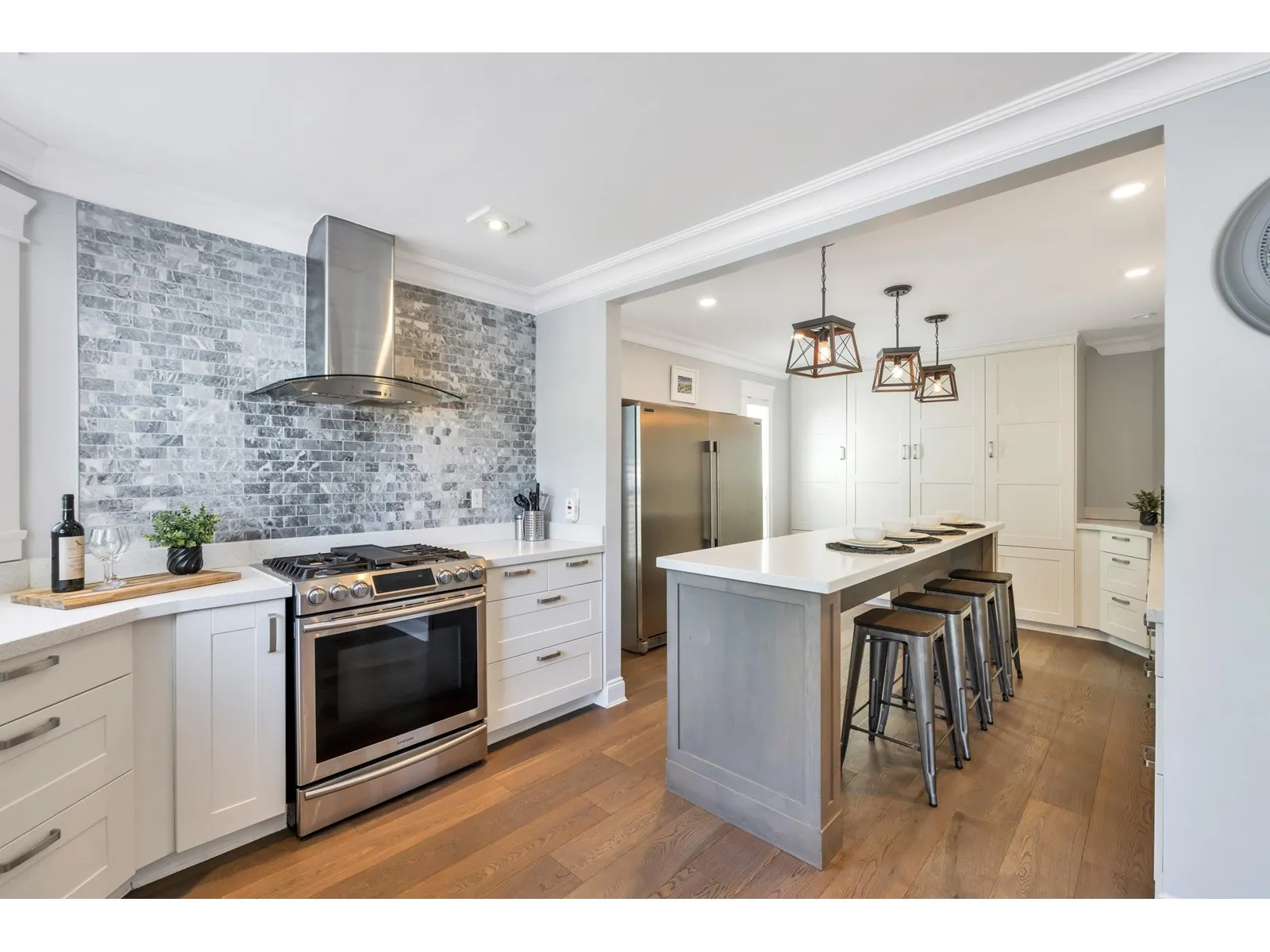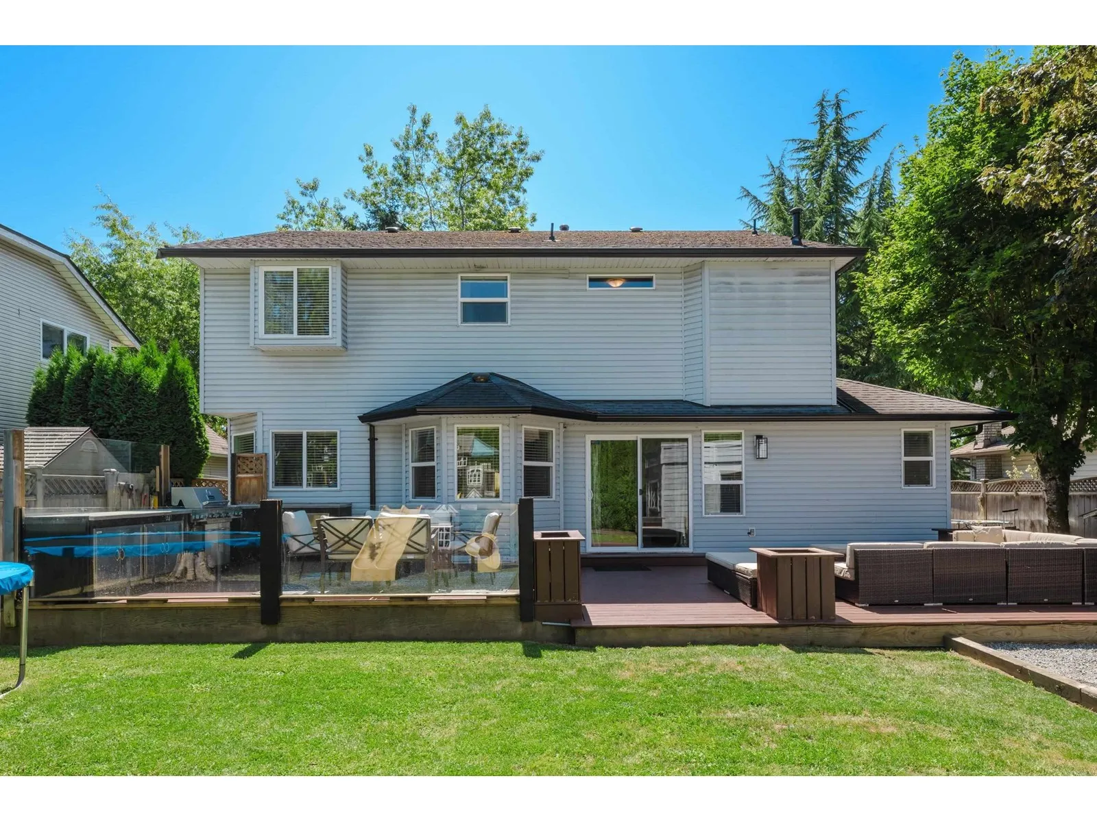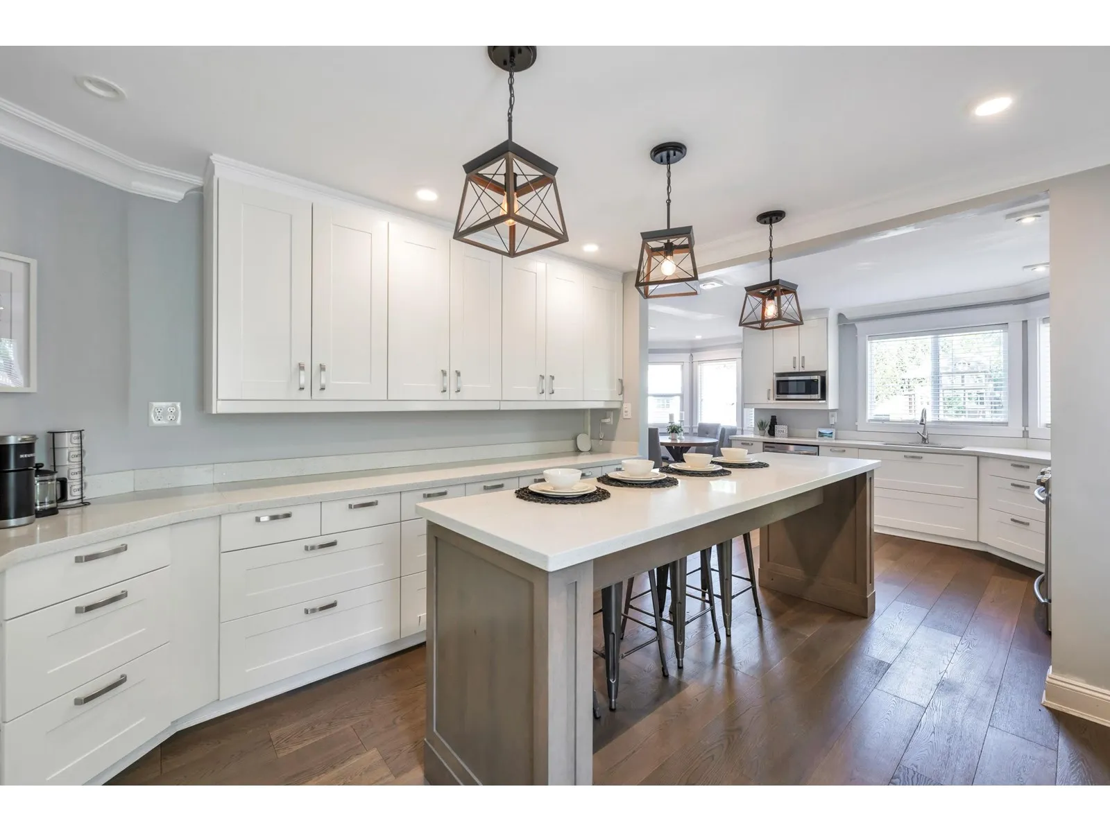 Beautiful 2-storey home on a quiet, tree-lined street in upper Murrayville. Main floor boasts wide plank hardwood flooring, crown moldings, a gorgeous renovated & expanded kitchen featuring extensive white shaker cabinetry, quartz counters, breakfast bar with pendant lighting, & stainless appliances incl double-wide fridge/freezer. Eating area w/ bay windows, and adjacent family room w/ glass doors leading to huge rear decks, private yard, and detached 230 sq ft rec room/flex space (ideal for teens or private office). Bdrm/flex rm, powder rm, and laundry. 3 spacious bedrooms up incl primary bdrm w/ sitting area and gorgeous ensuite. Bathrooms tastefully updated. Double garage, & RV parking! Great family neighbourhood close to parks, cafes, shops, schools, hospital, & WC Blair Rec Centre. (id:27476)