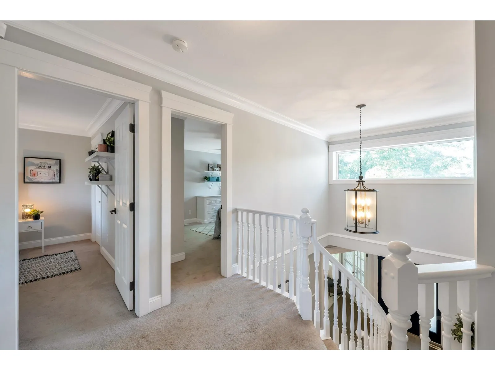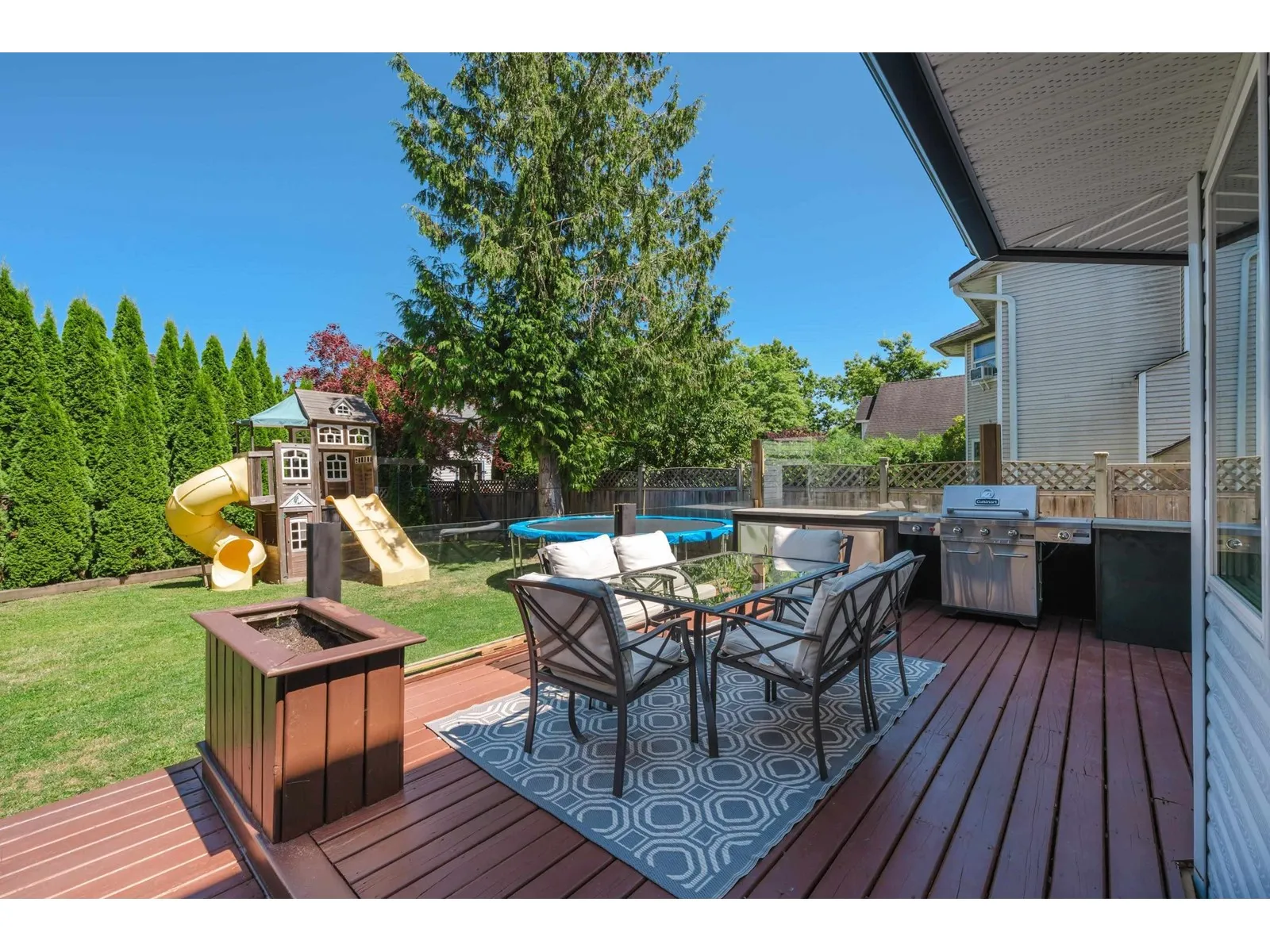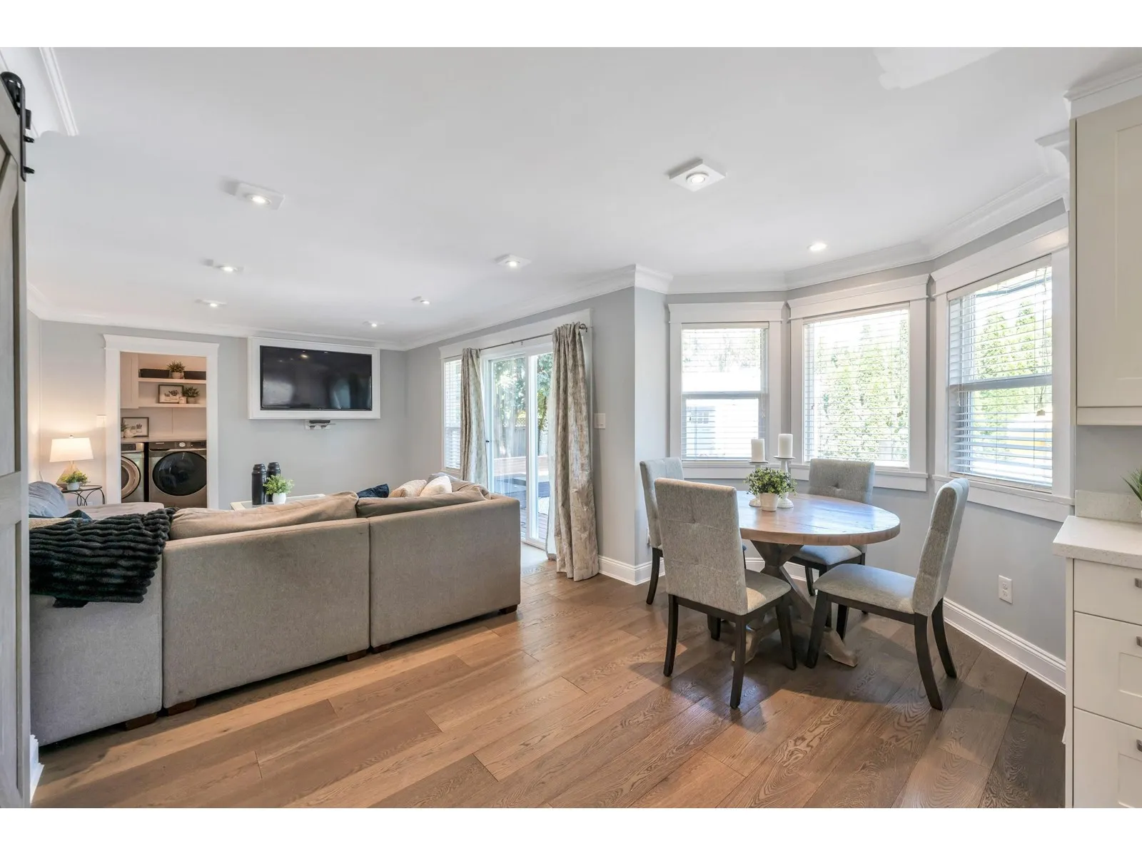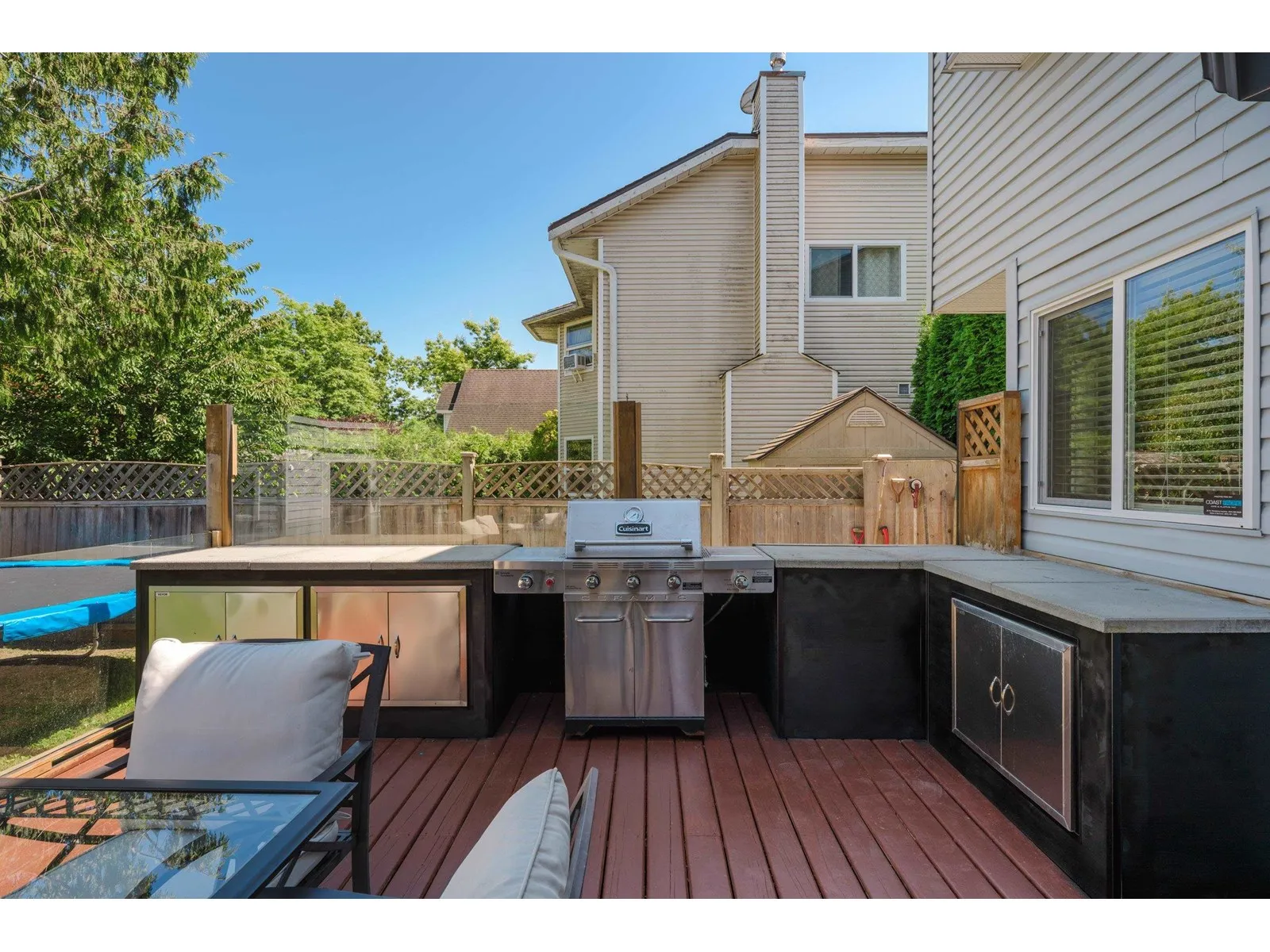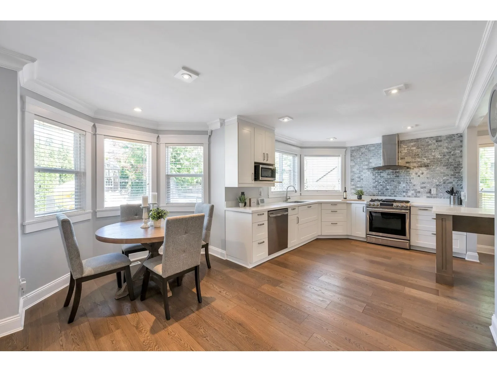 Beautiful 2-storey home on a quiet, tree-lined street in upper Murrayville. Main floor boasts wide plank hardwood flooring, crown moldings, a gorgeous renovated & expanded kitchen featuring extensive white shaker cabinetry, quartz counters, breakfast bar with pendant lighting, & stainless appliances incl double-wide fridge/freezer. Eating area w/ bay windows, and adjacent family room w/ glass doors leading to huge rear decks, private yard, and detached 230 sq ft rec room/flex space (ideal for teens or private office). Bdrm/flex rm, powder rm, and laundry. 3 spacious bedrooms up incl primary bdrm w/ sitting area and gorgeous ensuite. Bathrooms tastefully updated. Double garage, & RV parking! Great family neighbourhood close to parks, cafes, shops, schools, hospital, & WC Blair Rec Centre. (id:27476)