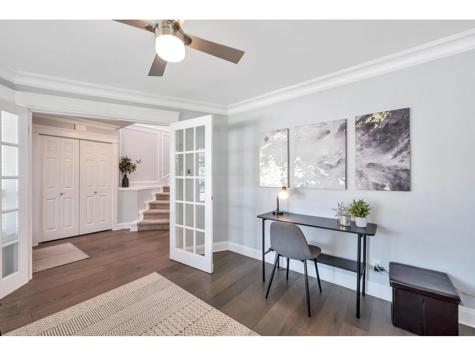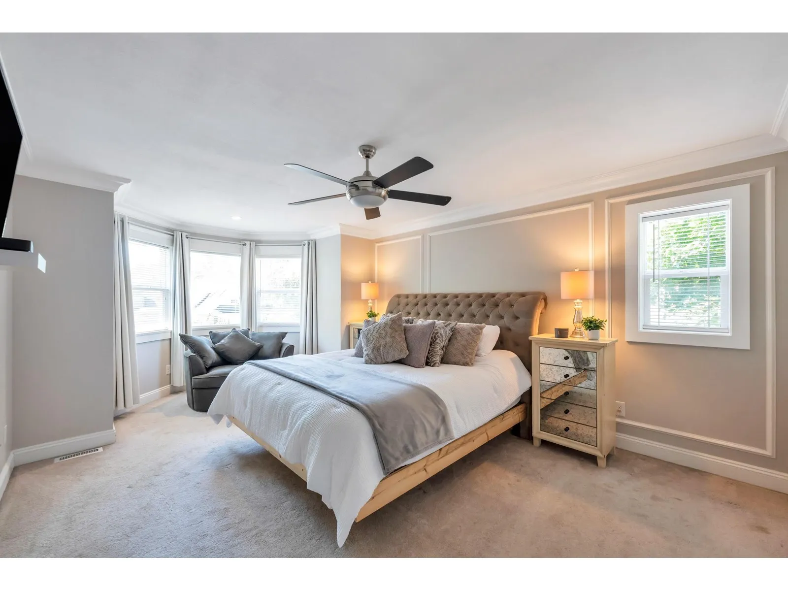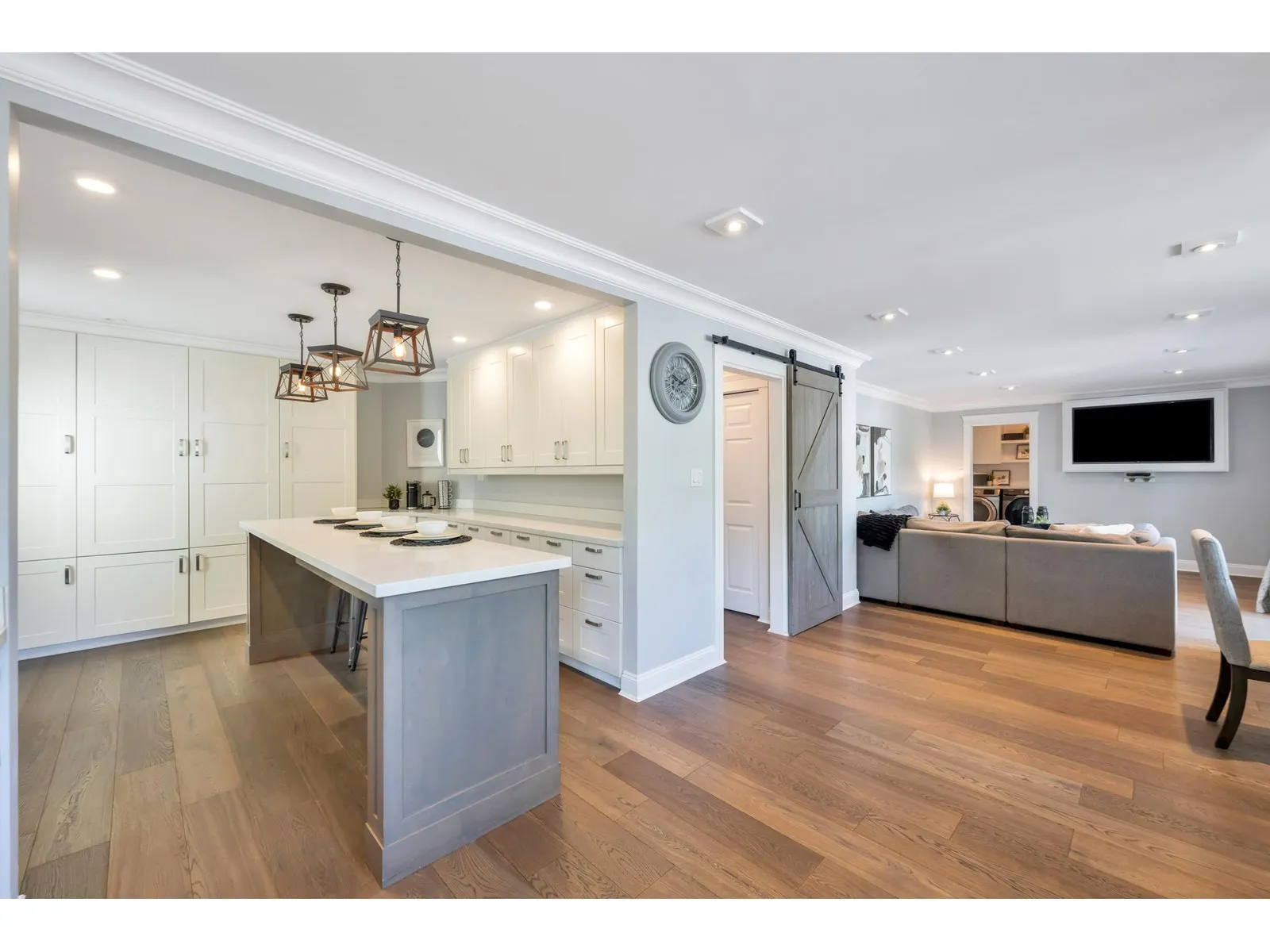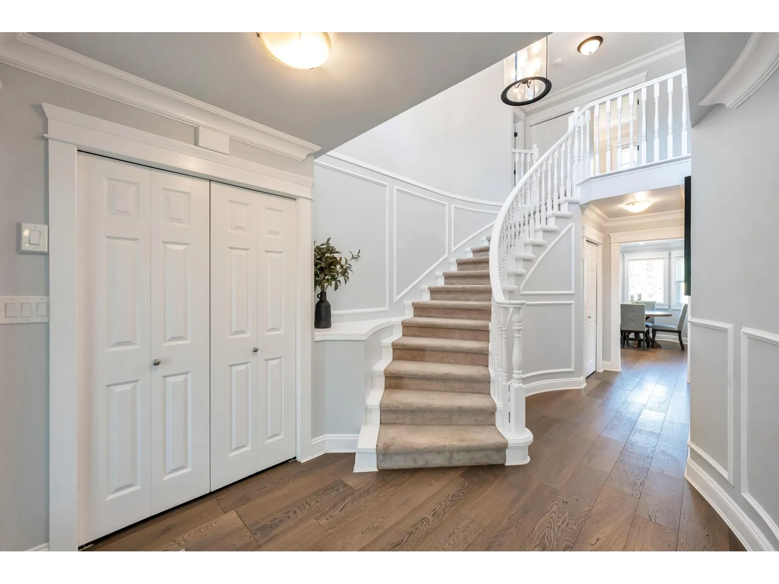 Beautiful 2-storey home on a quiet, tree-lined street in upper Murrayville. Main floor boasts wide plank hardwood flooring, crown moldings, a gorgeous renovated & expanded kitchen featuring extensive white shaker cabinetry, quartz counters, breakfast bar with pendant lighting, & stainless appliances incl double-wide fridge/freezer. Eating area w/ bay windows, and adjacent family room w/ glass doors leading to huge rear decks, private yard, and detached 230 sq ft rec room/flex space (ideal for teens or private office). Bdrm/flex rm, powder rm, and laundry. 3 spacious bedrooms up incl primary bdrm w/ sitting area and gorgeous ensuite. Bathrooms tastefully updated. Double garage, & RV parking! Great family neighbourhood close to parks, cafes, shops, schools, hospital, & WC Blair Rec Centre. (id:27476)