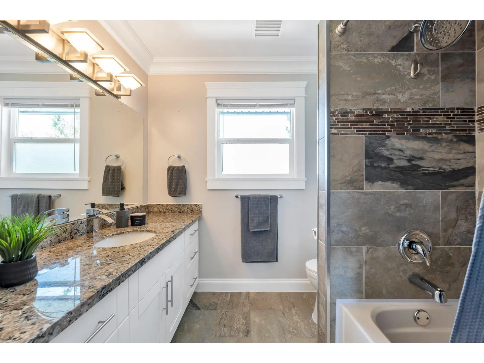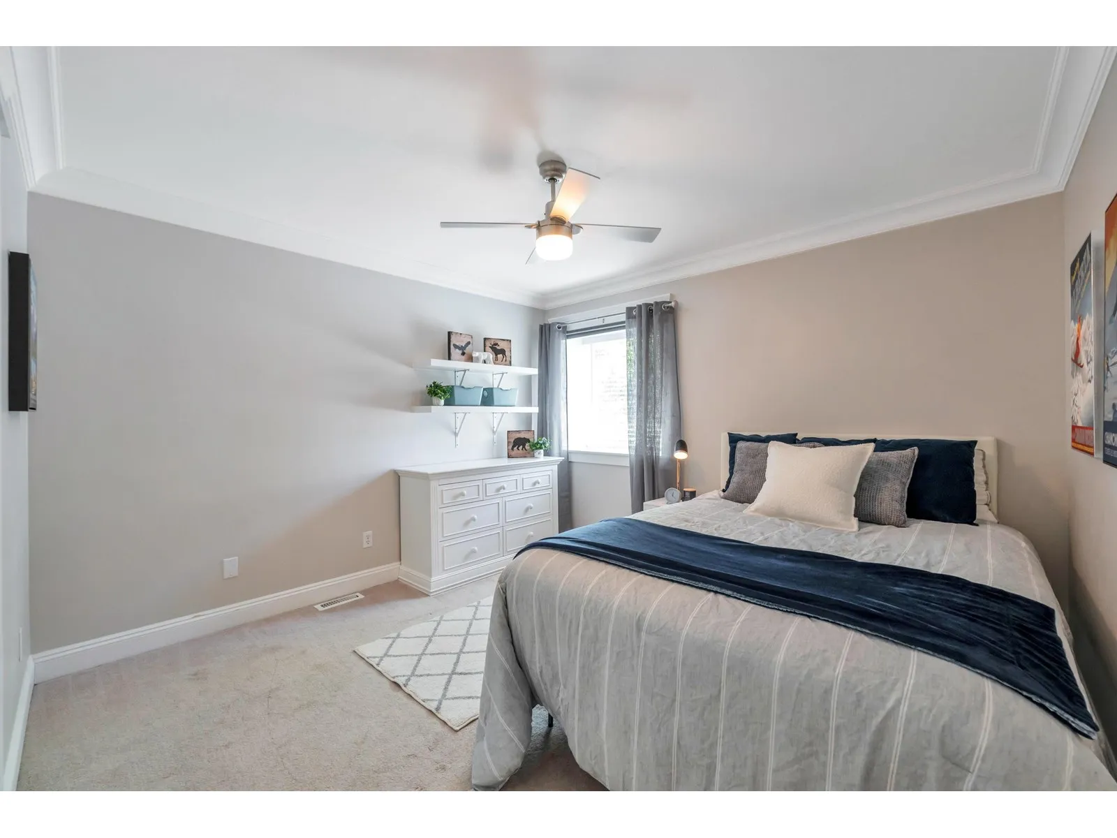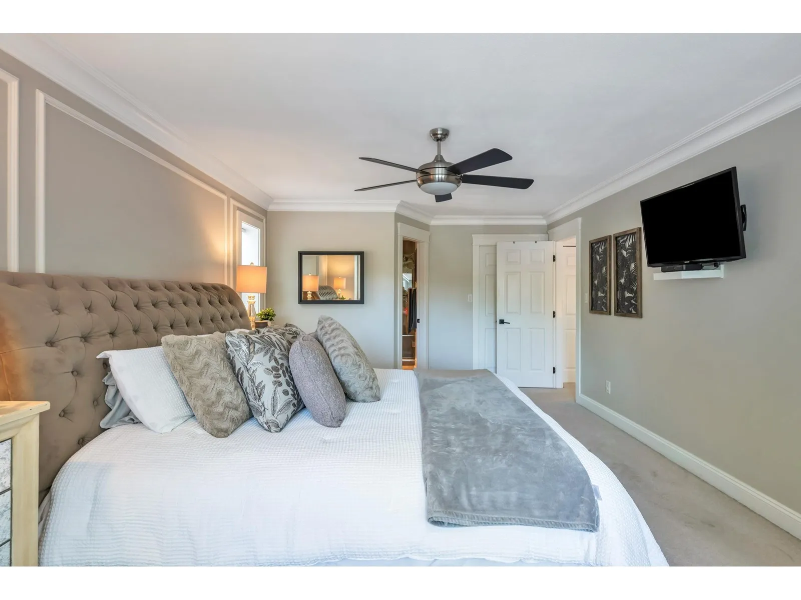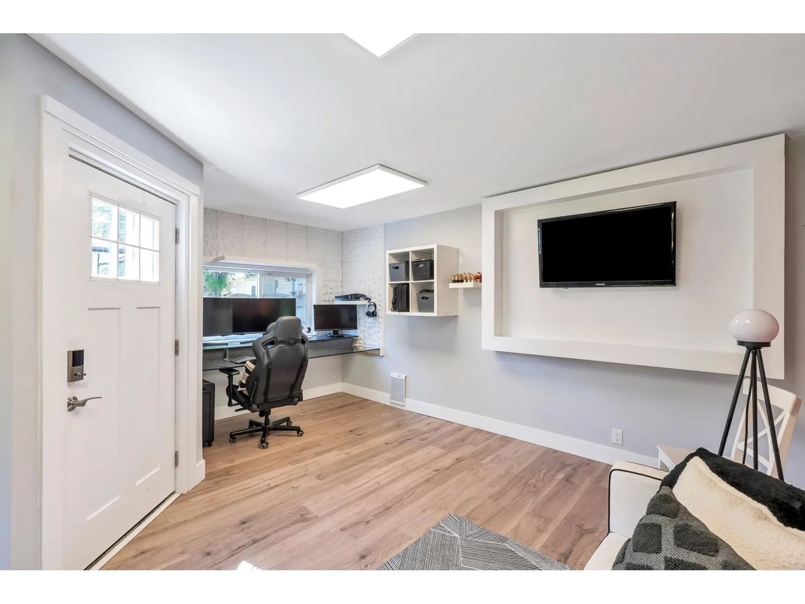 Beautiful 2-storey home on a quiet, tree-lined street in upper Murrayville. Main floor boasts wide plank hardwood flooring, crown moldings, a gorgeous renovated & expanded kitchen featuring extensive white shaker cabinetry, quartz counters, breakfast bar with pendant lighting, & stainless appliances incl double-wide fridge/freezer. Eating area w/ bay windows, and adjacent family room w/ glass doors leading to huge rear decks, private yard, and detached 230 sq ft rec room/flex space (ideal for teens or private office). Bdrm/flex rm, powder rm, and laundry. 3 spacious bedrooms up incl primary bdrm w/ sitting area and gorgeous ensuite. Bathrooms tastefully updated. Double garage, & RV parking! Great family neighbourhood close to parks, cafes, shops, schools, hospital, & WC Blair Rec Centre. (id:27476)