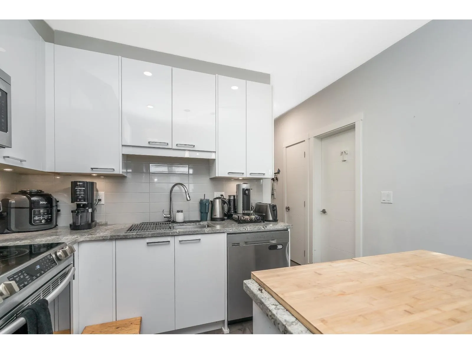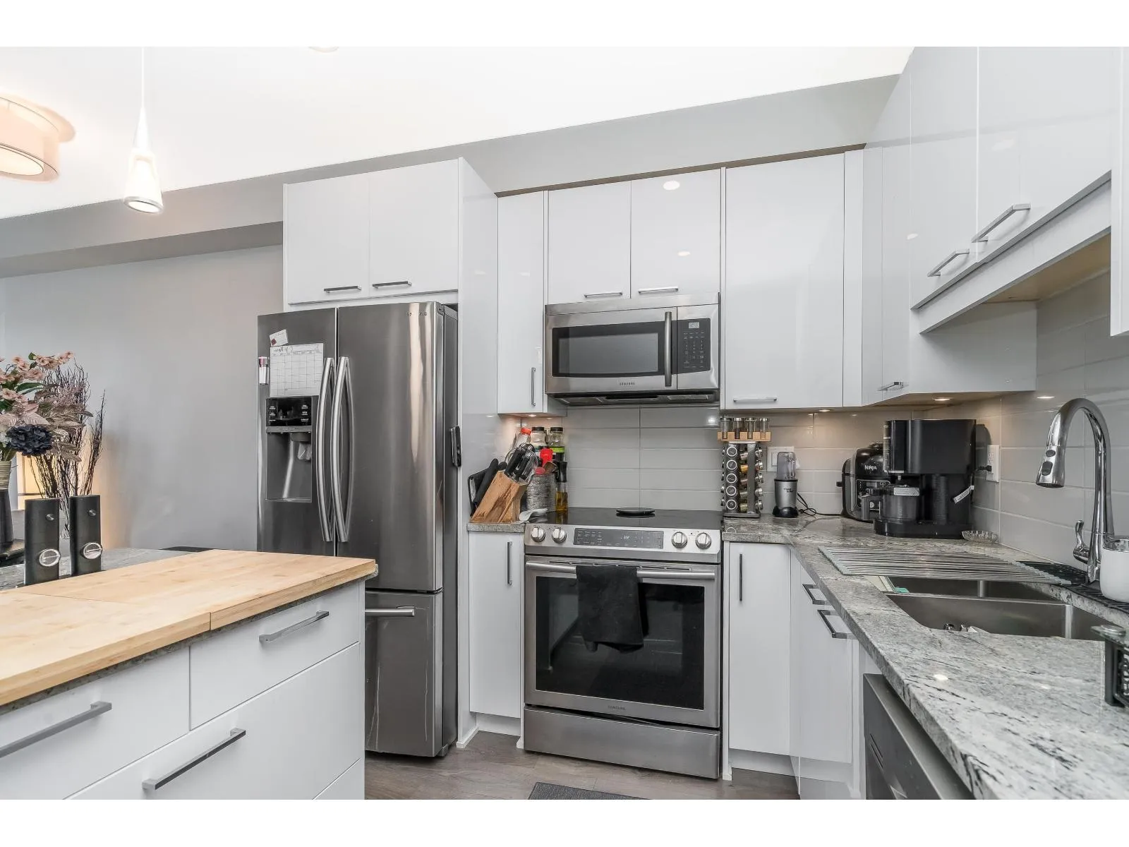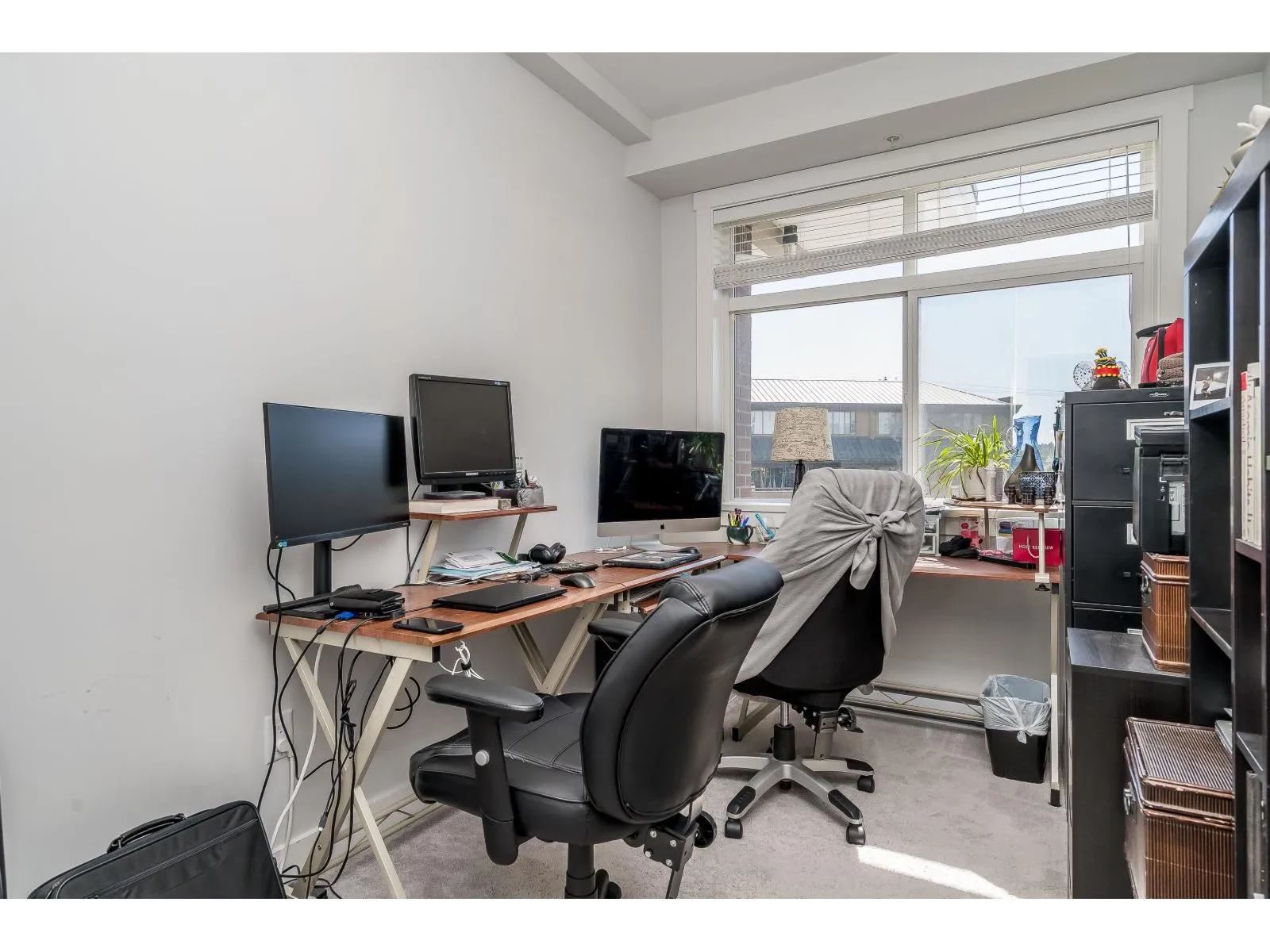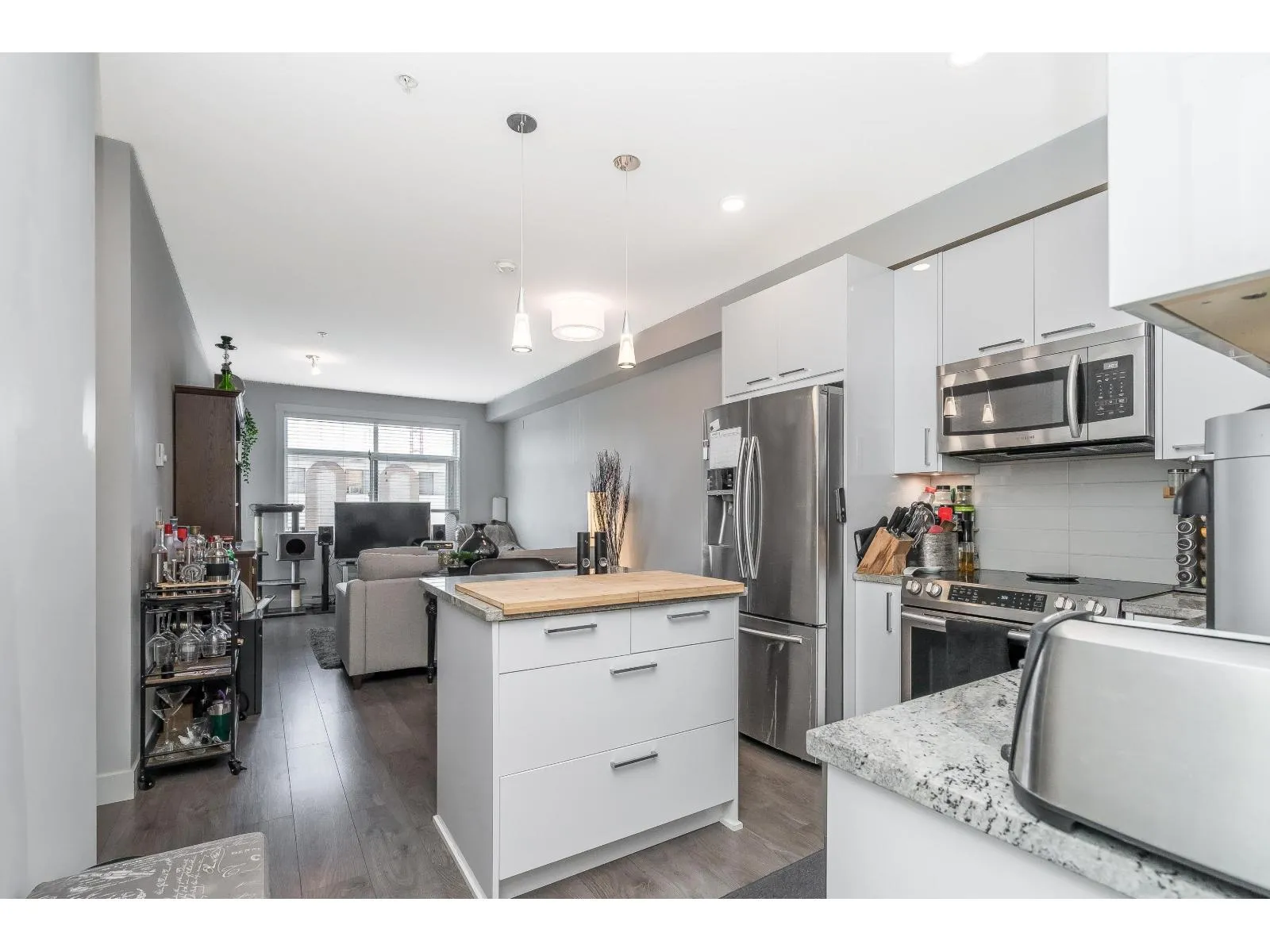 Welcome to "The Georgia" by Whitetail Homes-this spectacular 2 Bed + Den, 2 Bath corner unit is only a few blocks to the future Skytrain! Featuring 9' ceilings, an open concept layout, and top-tier finishes including granite counters, stainless steel appliances, and high-quality laminate throughout. The Den is perfect for a home office or extra storage. The spacious primary bedroom offers a walk-in closet, ensuite with double sinks, and A/C. Pet friendly building includes 1 parking, 1 locker and access to bike storage and EV charging. All this in a prime location-close to shopping, restaurants, and schools. A must-see! (id:27476)