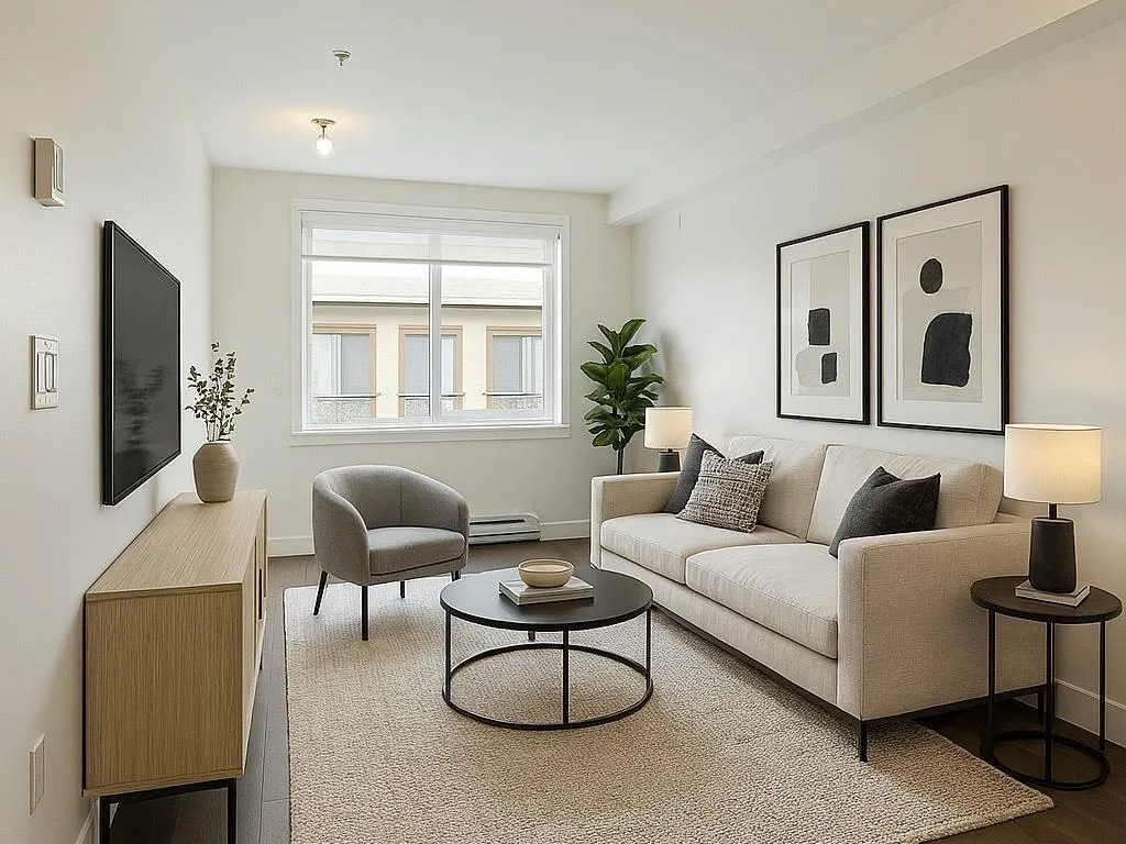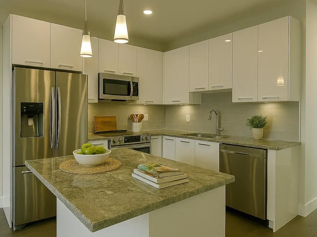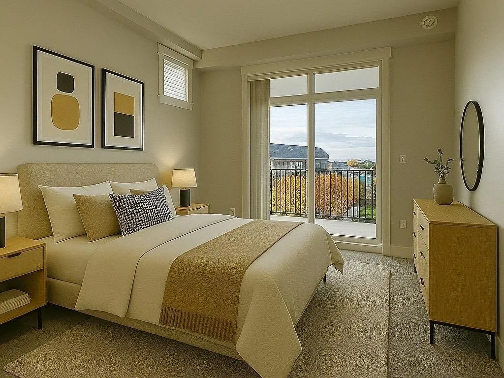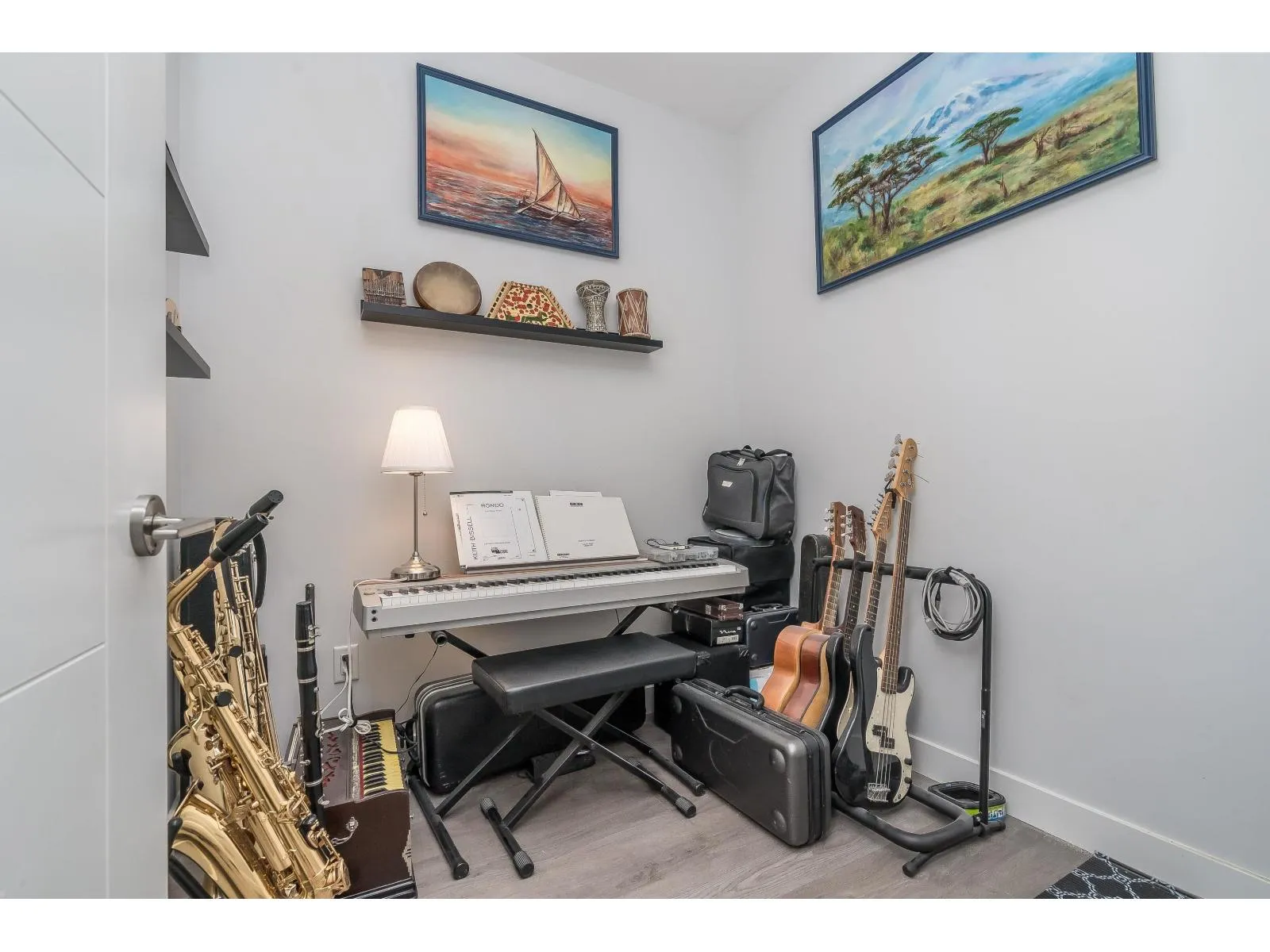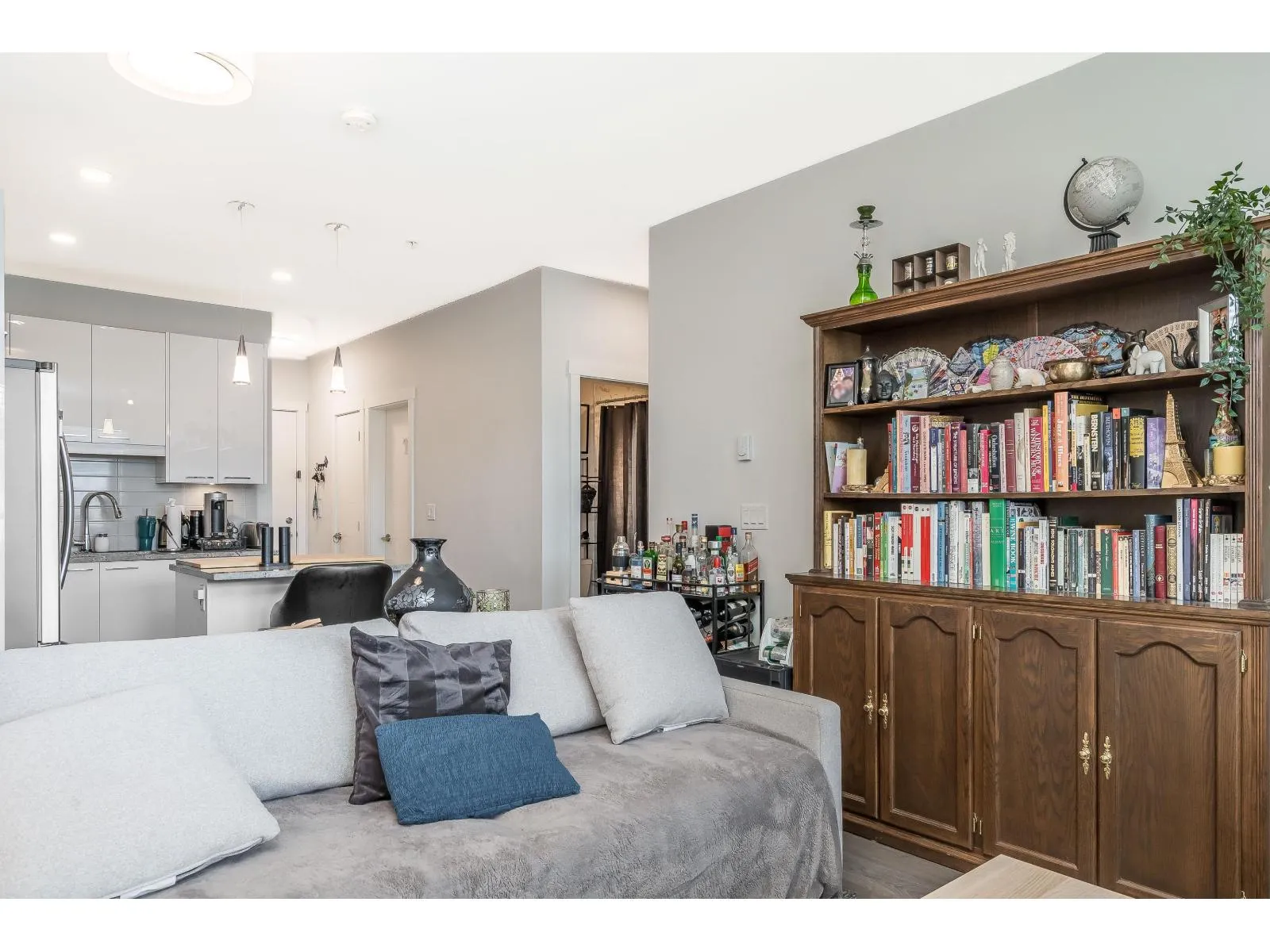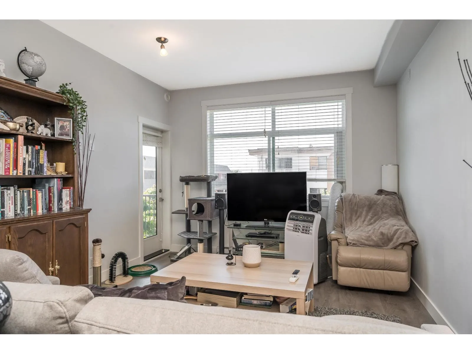 Welcome to "The Georgia" by Whitetail Homes-this spectacular 2 Bed + Den, 2 Bath corner unit is only a few blocks to the future Skytrain! Featuring 9' ceilings, an open concept layout, and top-tier finishes including granite counters, stainless steel appliances, and high-quality laminate throughout. The Den is perfect for a home office or extra storage. The spacious primary bedroom offers a walk-in closet, ensuite with double sinks, and A/C. Pet friendly building includes 1 parking, 1 locker and access to bike storage and EV charging. All this in a prime location-close to shopping, restaurants, and schools. A must-see! (id:27476)