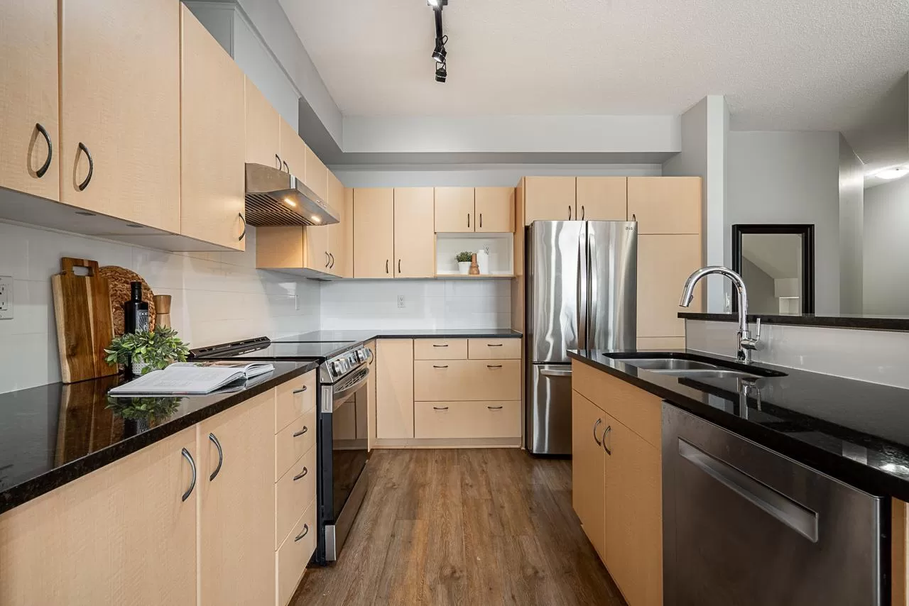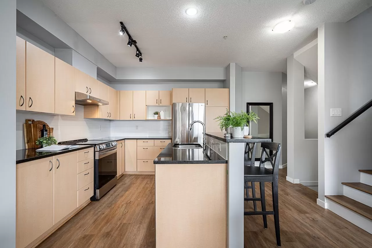 A 2,031 sq.ft home in the heart of Willoughby with 4 Extra-Large Bedrooms (2 Ensuites), 4 Bathrooms, and a Den/Flex Area. Featuring 9 ft High Ceilings on main, Balcony, Covered Patio and Fenced Garden. More recent updates include Vinyl Plank Floors throughout (professionally installed and levelled by NuFloors in 2016), Granite Kitchen Countertops and backsplash (2016), new hot water tank (2024), new bathroom counters (2025), Stainless Steel appliances (2019) and more. Over $50,000 spent - Excellent value. Walkable, close to shopping, recreation, schools, Transit. Vacant and move in ready. (id:27476)