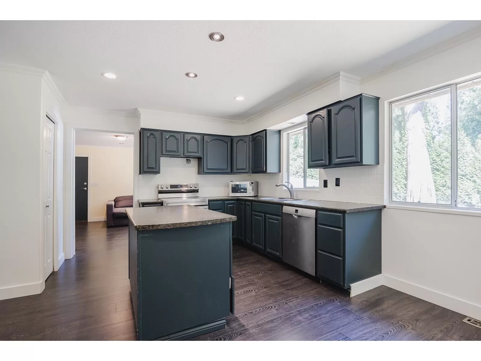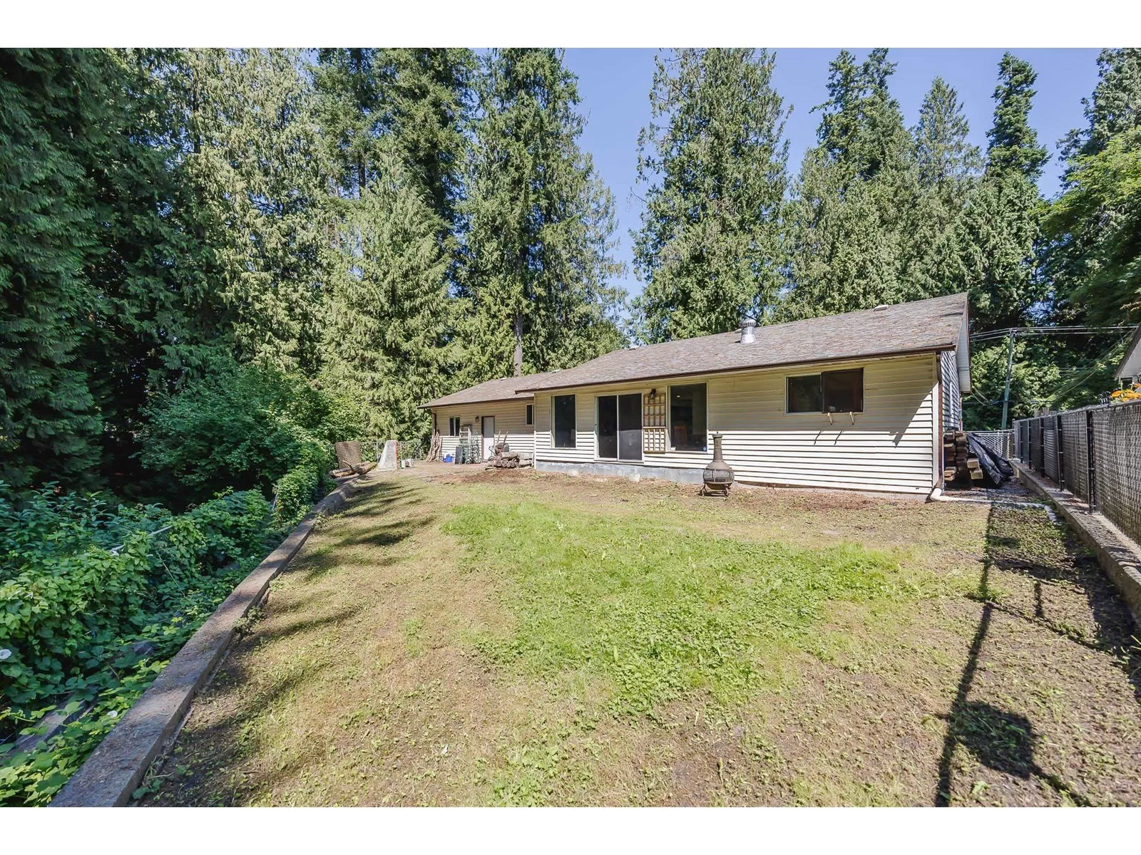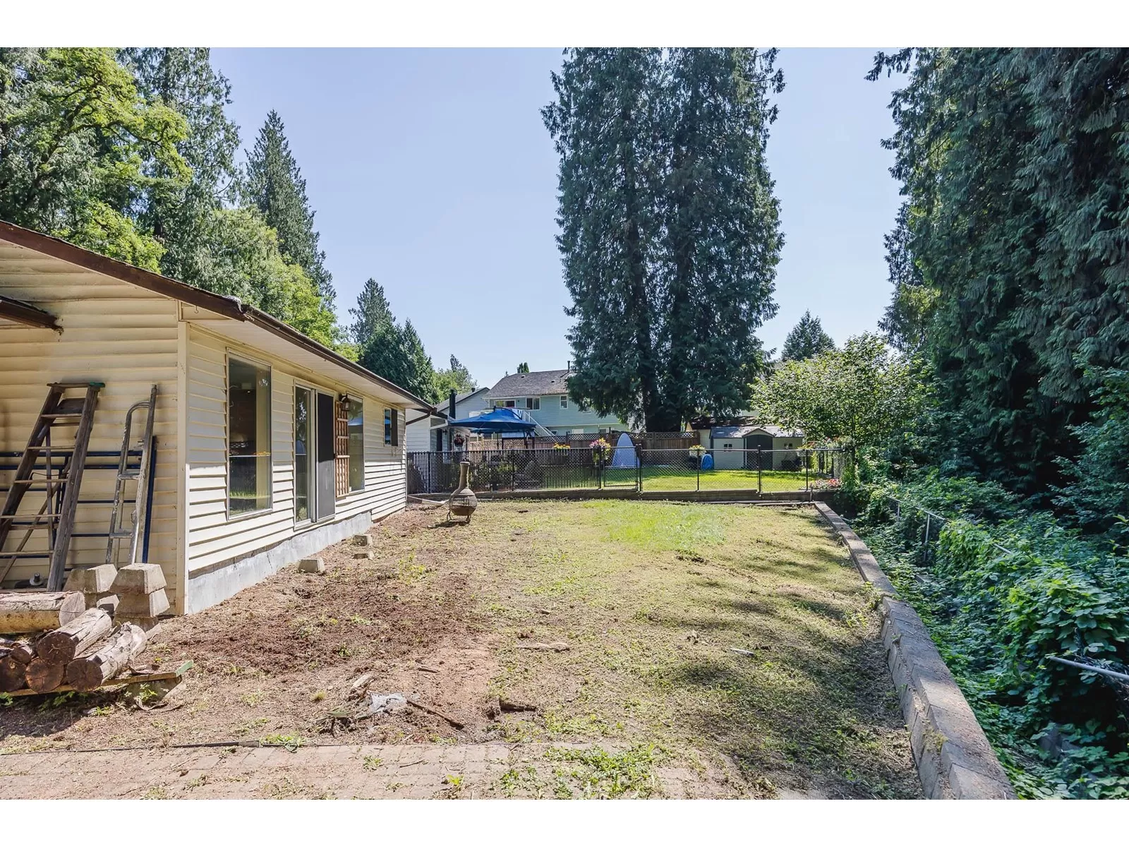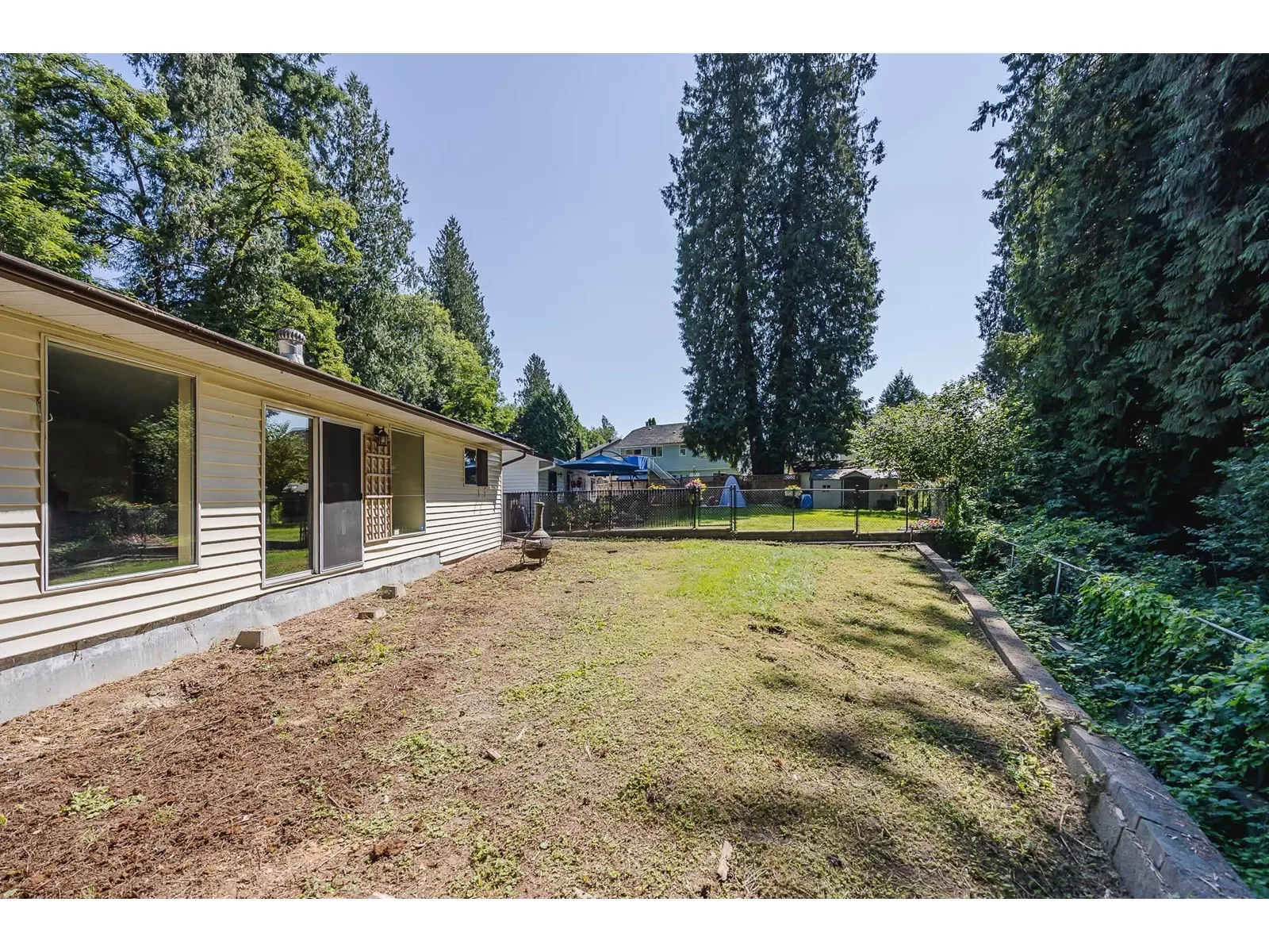 BEGINNER OR INVESTMENT PROPERTY. Situated adjacent to a lush greenbelt, this spacious 1,500+ sq.ft. rancher on 7858ft lot features durable laminate flooring throughout. Floor-to-ceiling windows offer stunning views of the south-facing backyard, which is perfect for relaxation or entertaining. The home includes generous living and dining areas with a slider door leading to a large private back yard with space for a hot tub-and a patio ideal for summer gatherings. A separate family room provides extra space for a pool table or media center. The property offers a double garage plus plenty of parking, including space for an RV. Ideal location for a home-based business. Conveniently situated near schools,shopping,recreation centers,golf courses,transit,Park & Ride, and the Golden Ears Bridge. (id:27476)