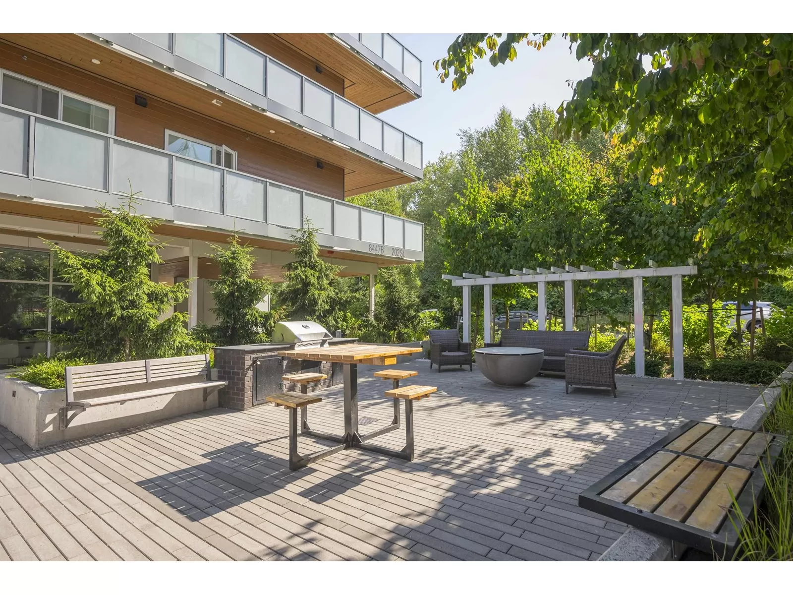 elcome to this stunning corner unit at ARISTOTLE in Willoughby Heights! This 2 bed + den, 2 bath home offers over 920 sqft of bright, modern living with a wrap-around patio, perfect for relaxing, entertaining, or soaking up the sun. The open-concept layout features a sleek kitchen with gas range, island, and ample storage. Both bedrooms are well-sized and separated for privacy, while the versatile den is ideal for a home office or nursery. Enjoy top-tier amenities including a gym, games room, clubhouse, and playground. Just steps to Carvolth Exchange, Hwy 1 & shops. A must-see! (id:27476)