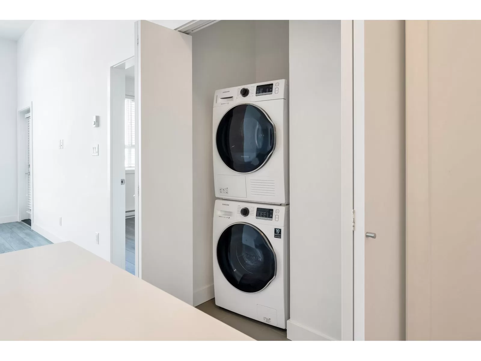 Top floor West-facing 2 bed/ 2 bath / 2 parking penthouse with vaulted ceilings and an ideal layout featuring bedrooms on opposite sides of the home (both with walk-in closets), primary fits a king, a bright white kitchen with island, living room that accommodates a large couch or sectional and oversized low E windows that let in lots of light while lowering utility bills! Walk across the street to Willoughby Town Centre for groceries, great restaurants, yoga and Pilates, trendy boutiques, banks, pharmacy and medical /dental. Everything you need is within reach, including transit right outside your door. Home is still under warranty and in spotless condition with quick possession possible. Book your private showing today. Home is where your Storey begins! (id:27476)
