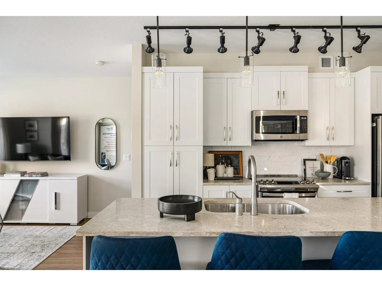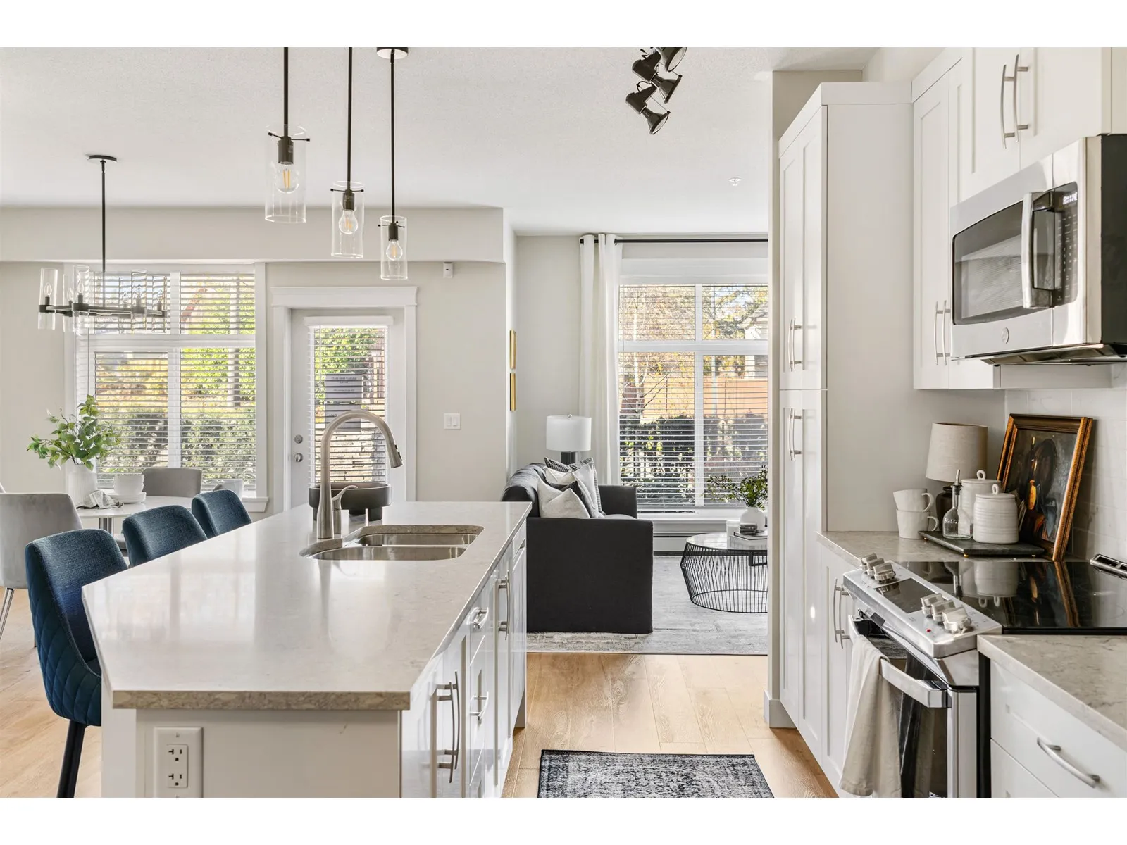1 BED + FLEX (FLEX FITS A BED!) WHEELCHAIR ACCESSIBLE CONDO! 2 PARKING STALLS (incl. EV-ready & handicap) & STORAGE LOCKER included with this brand new home! Located in the sought-after Walnut Park by Quadra Homes, this unit features 9' ceilings, A/C, quartz counters, soft-close cabinetry, under-cabinet lighting, S/S appliances, vinyl plank flooring, heated bathroom floors & a built-in safe. Enjoy your EAST-FACING PATIO OVERLOOKING THE COURTYARD or head to the ROOFTOP AMENITIES & FITNESS ROOM. One of just FIVE ONE BED + FLEX units in a 130-unit building! ADAPTABLE FLOORPLAN with handicap clearances-ask for details. Steps to shops, dining & more! Note: Show suite photos show a different floor plan, but are from the same developer. (id:27476)