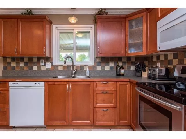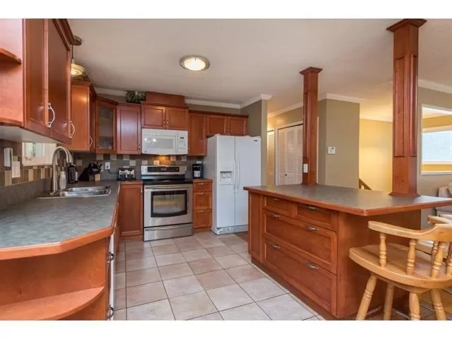 This well-maintained home features an open-concept kitchen with heated tile floors, a large island, and ample cabinets. The main floor boasts hardwood floors and crown molding, while bedrooms have laminate. The lower level offers 2 bedrooms, a spacious family room, and a laundry area with a sink. Highlights include 2 updated gas fireplaces, a 4-year-old hot water heater, and a large cedar-covered deck overlooking a west-facing backyard. The garage has new drywall and an insulated door. A 3-bedroom suite provides a $1,700/month mortgage helper. Near Simonds Elementary & HD Stafford Secondary. Some cosmetic updates, like fresh paint, add value. May 2025 - new dish washer upstairs, new flooring and sink tap downstairs. New drainage outside (south) $26,000 spent in renos. Open house Sun Oct 5 2-4PM. (id:27476)