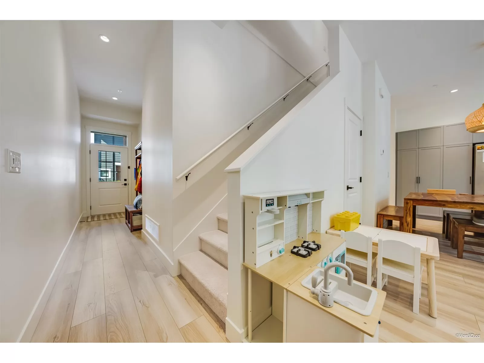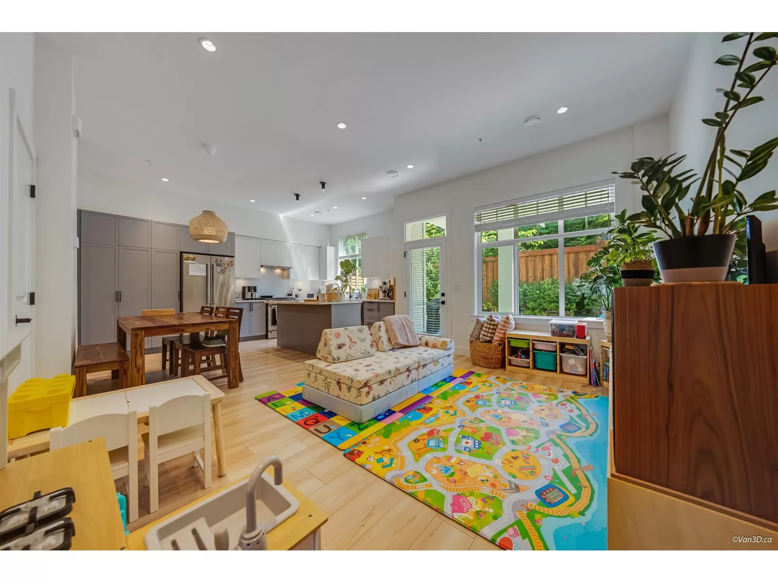 A great find! This two-level townhome has central A/C and 10ft high ceilings throughout the main floor. The open concept living space with L-shaped kitchen and big island, features large south facing windows for plenty of sunlight. The adjacent south facing back yard is great for planting, kids and pets. A large master bedroom, two south-facing large bedrooms and workstation are located upstairs. The large closets and custom shelving provide for abundant storage. Attached double garage with extra high ceilings and coated floor providing additional storage. This fast-developing neighborhood is surrounded by new high-end rowhomes and houses for a secure community feel. Easy access to 200-street for local shopping, services and restaurants; 8min drive north to Hwy1; south to downtown Langley. (id:27476)