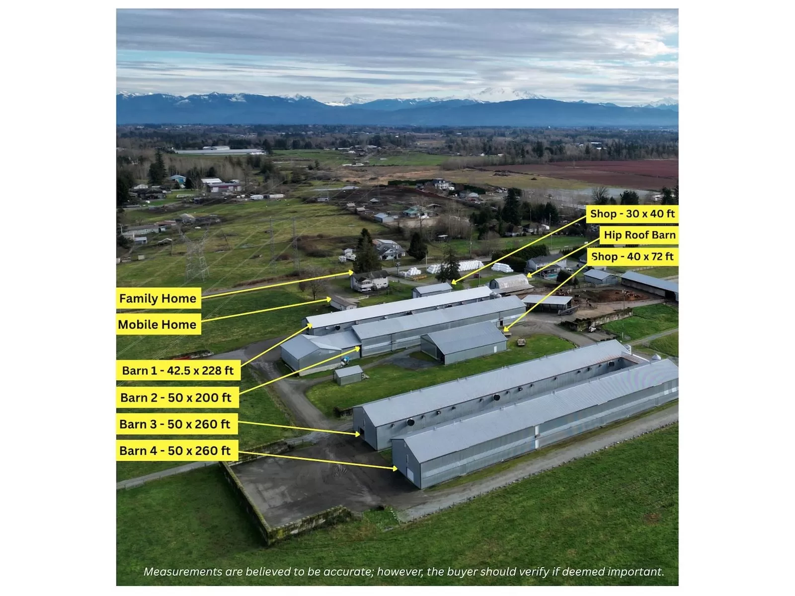 Going Concern Broiler Farm on nearly 20 acres in Langley! This turnkey operation boasts 4 two-storey barns with a total capacity of over 160,000 birds: 42.5 Ã 228 ft, 50 Ã 200 ft, and two 50 Ã 260 ft barns. Equipped with Maximus Computers, Cumberland feed pans, Ziggity drinkers, and Re-Verber-Ray tube heating. The property features 2 separate 400-amp services, 2 drilled wells, 2 natural gas standby generators, and revenue from a cellular tower. Residential buildings include a solid family home with a 1-bedroom suite and a mobile home for staff. Additional structures include two shops (40 Ã 72 ft and 30 Ã 40 ft), a hip roof barn, and a cow barn. High, dry land is prepped for expansion. Approx. 85,000 birds of BC broiler chicken quota available at market price! (id:27476)
