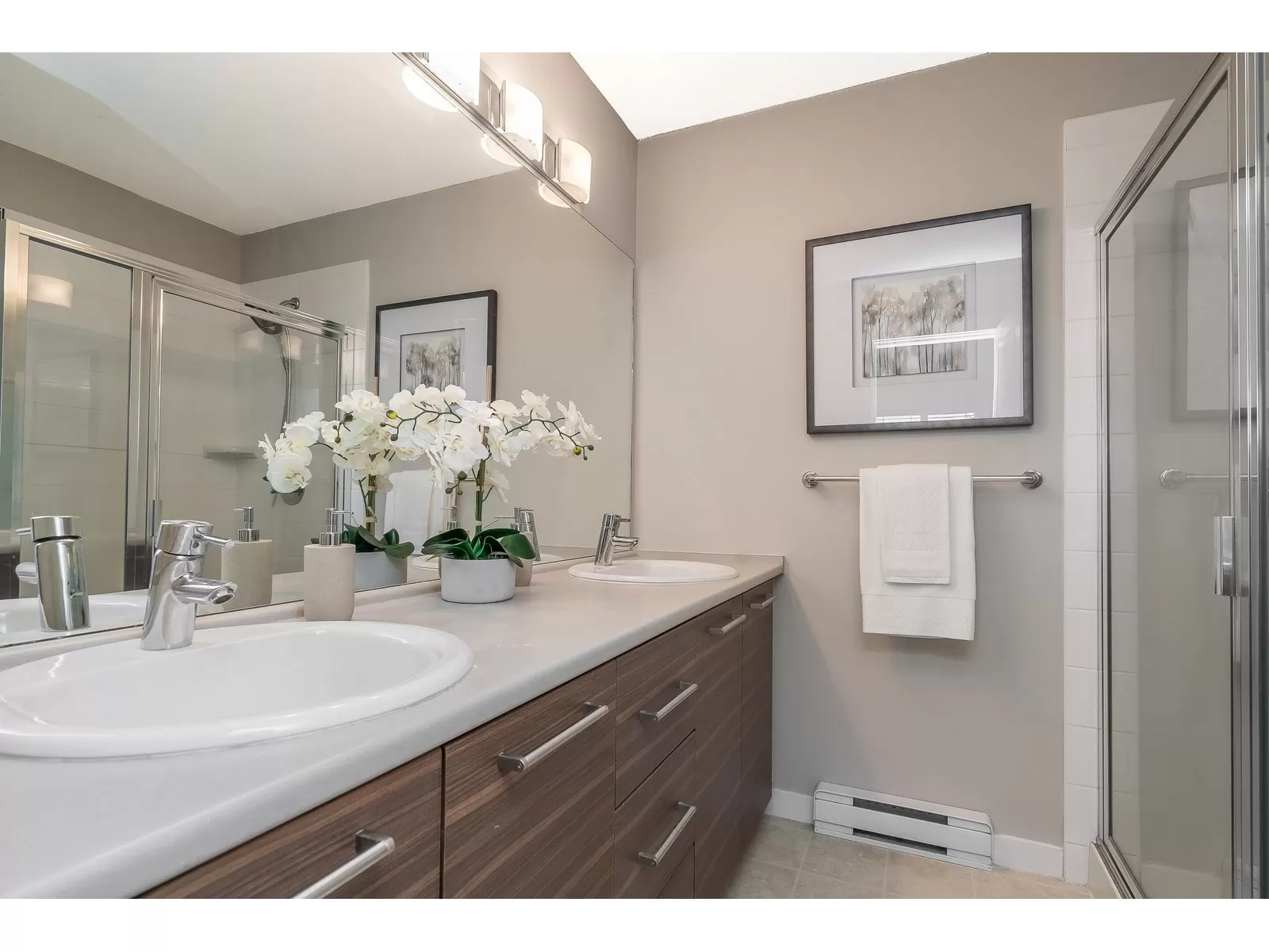 Welcome to Polygon's sought after Red Maple Park 2 LARGE bedrooms, 2 bath t/h with a tandem garage and parking for 3. PRIME LOCATION across from the pool, hot tub and the clubhouse. Step inside to find 9' ceilings on the main creating an open and airy atmosphere and freshly+professionally painted throughout. The large ensuite bathroom features a double vanity and roomy shower. Cozy up by the fireplace and open living concept main floor. Families/couples will love the resort-style living inc. outdoor pool, hot tub, fitness studio, ball hockey arena, 2 guest suites + huge playground. An easy 1/2 block walk to Bullpit Elementary through the adjoining development. Steps to all the shopping and dining Willoughby Town Centre offers and less than 5 minutes to HWY1 (id:27476)