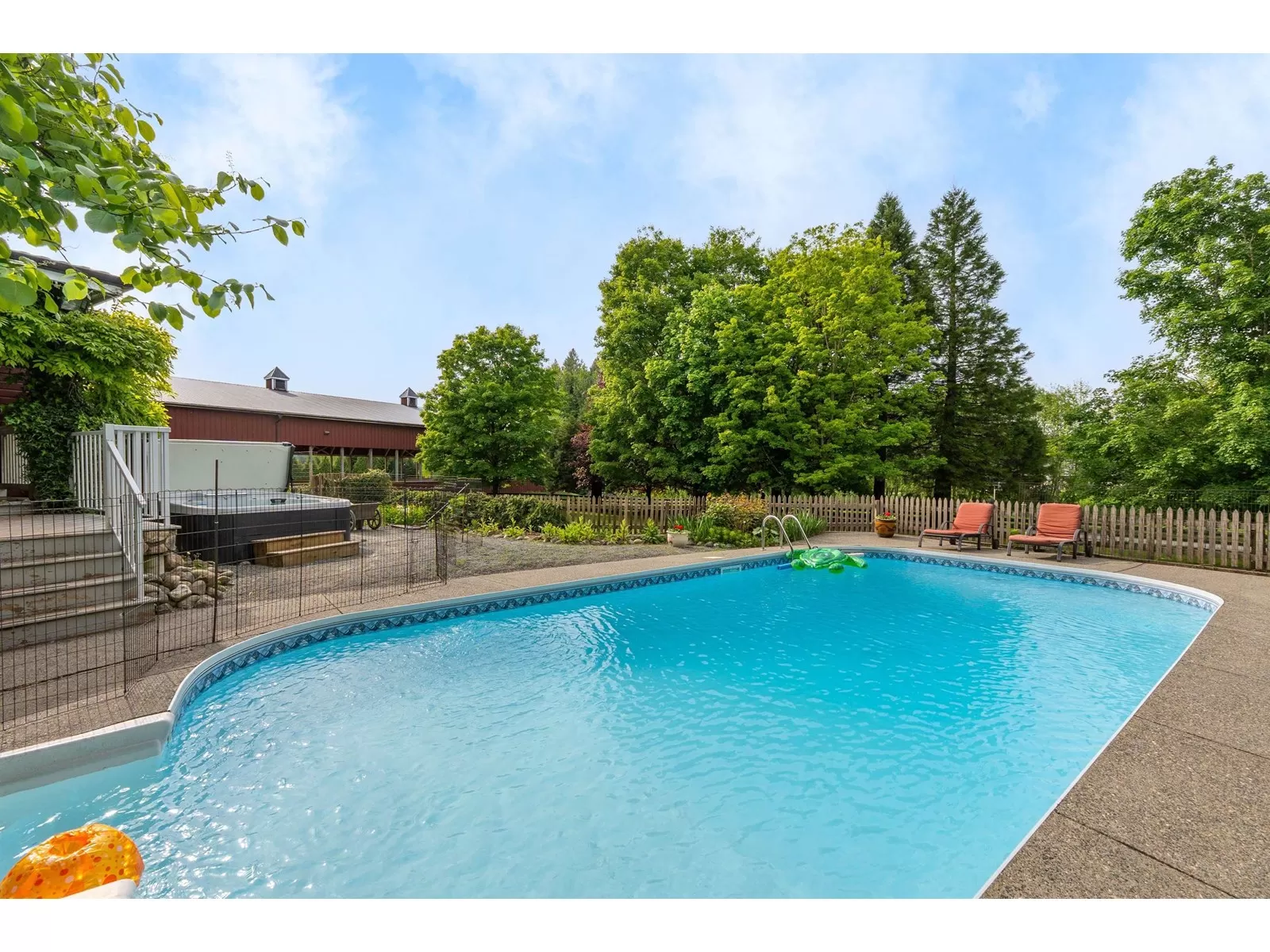 Cobblestone Farm - a premier equestrian property in Glen Valley, just 10 min from Thunderbird Show Park. Spanning 8.3 acres, it features a pristine hunter/jumper facility w/ a renovated country house, a Gambrel-style barn for 15 horses & extensive turnout. A charming brook crossed by multiple bridges that enhances the serene landscape. The fully renovated home offers a unique layout w/ covered verandahs, grand foyer, spacious living areas & a luxurious master suite. High-end appliances, outdoor pool, & a hidden loft to add to its charm. The barn includes oversized stalls, heated facilities, & a legal loft apartment. Add'l amenities include a 5-horse exerciser, covered indoor arena, oversized outdoor ring, & shelters/paddocks. Thoughtfully designed for horse welfare, an extremely rare find. (id:27476)