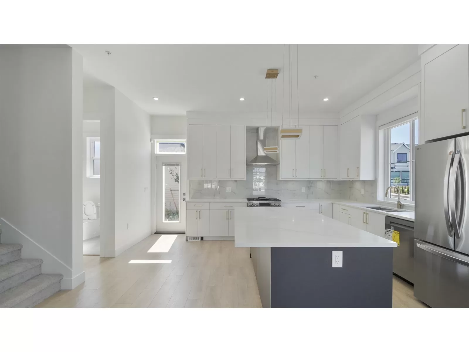 No Maintenance or Strata Fees! Introducing a stunning brand-new 1/2 Duplex built by Harwest Homes! This exquisite 3-story residence is a perfect blend of luxury and functionality. Step into the grand kitchen, where sleek soft-close cabinetry meets a striking black and white color scheme. The large island, paired with stainless steel appliances, makes this space a dream! With 3 bedrooms upstairs, the master bedroom is a true retreat, featuring a breathtaking 4-piece ensuite. Enjoy peace of mind with the 2/5/10 home warranty, and enjoy the convenience of having shops, eateries, health and wellness centers, and public transportation just moments away. The lower floor boasts a separate entry, adding to the versatility of this beautiful home. (id:27476)