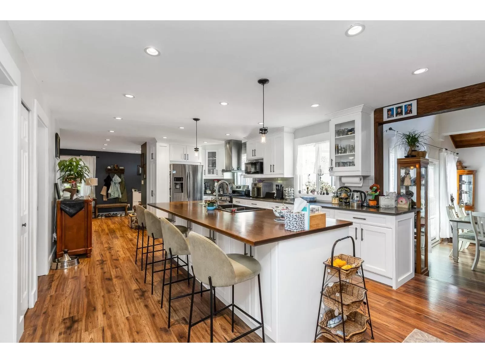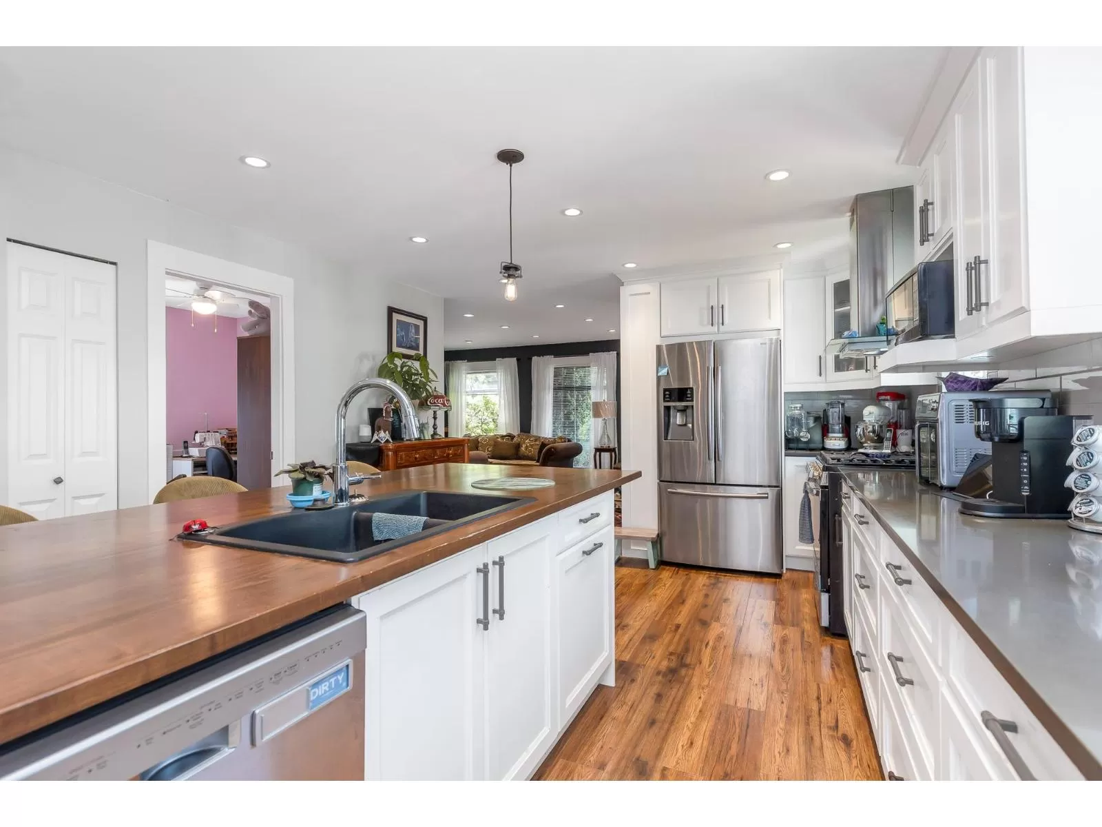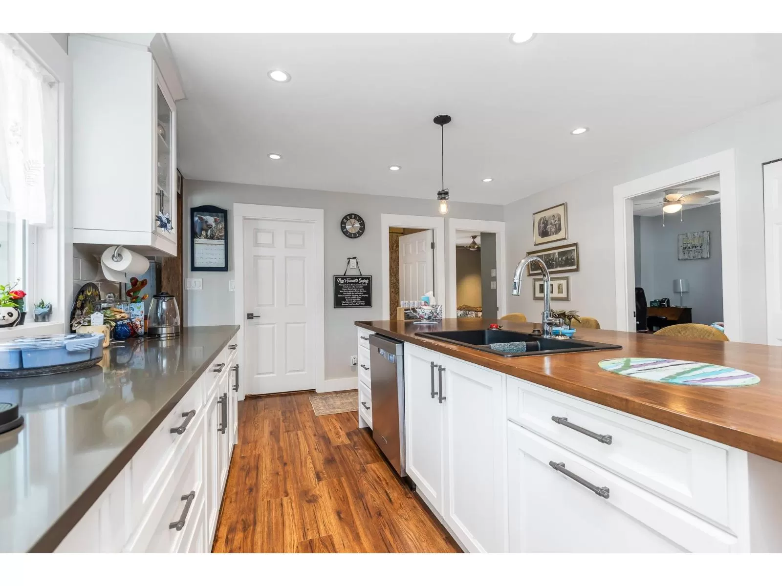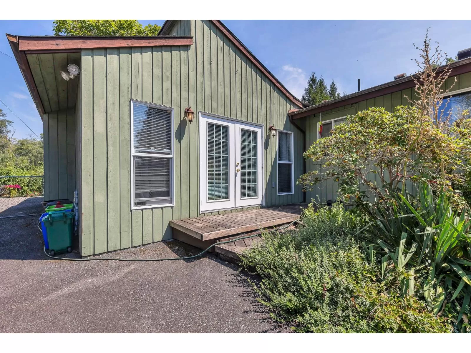 Beautifully renovated and full of West Coast charm, this 3-bed rancher is tucked away on a quiet cul-de-sac. The gorgeous kitchen has loads of cabinets and counter space with a massive island. Step down into the formal living room with vaulted wood ceilings and stone fireplace. The primary bedroom with 2 pc ensuite (closet is plumbed for a shower) and french door access to the back yard is a dreamy oasis. The backyard has a massive deck overlooking a private, fenced yard that backs directly onto Newlands Golf Course, with a gate for easy access. Enjoy the two storage sheds & RV parking. There's a potential future use to Low Rise Residential, Buyer to confirm with the City. Live long term or hold for investment! (id:27476)