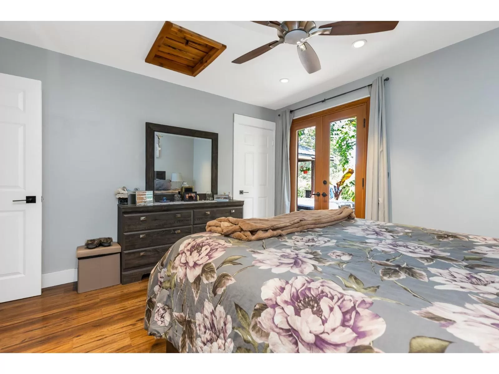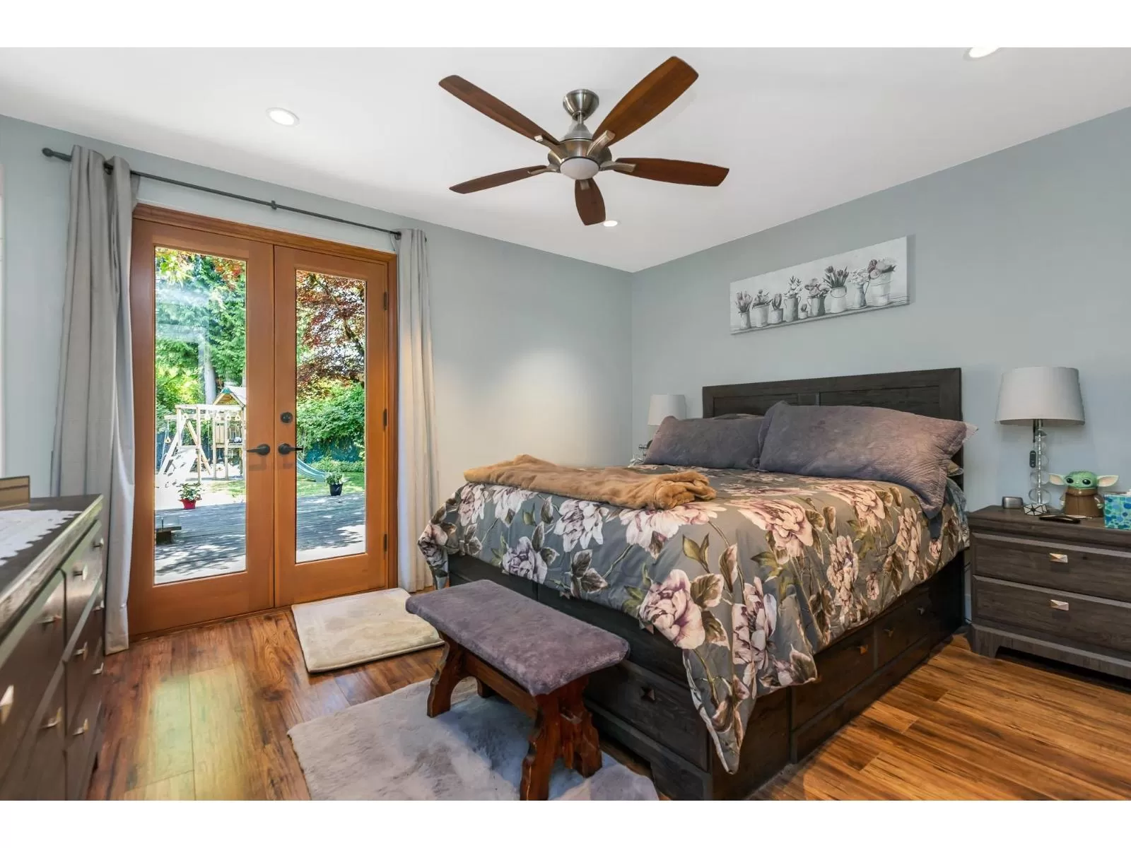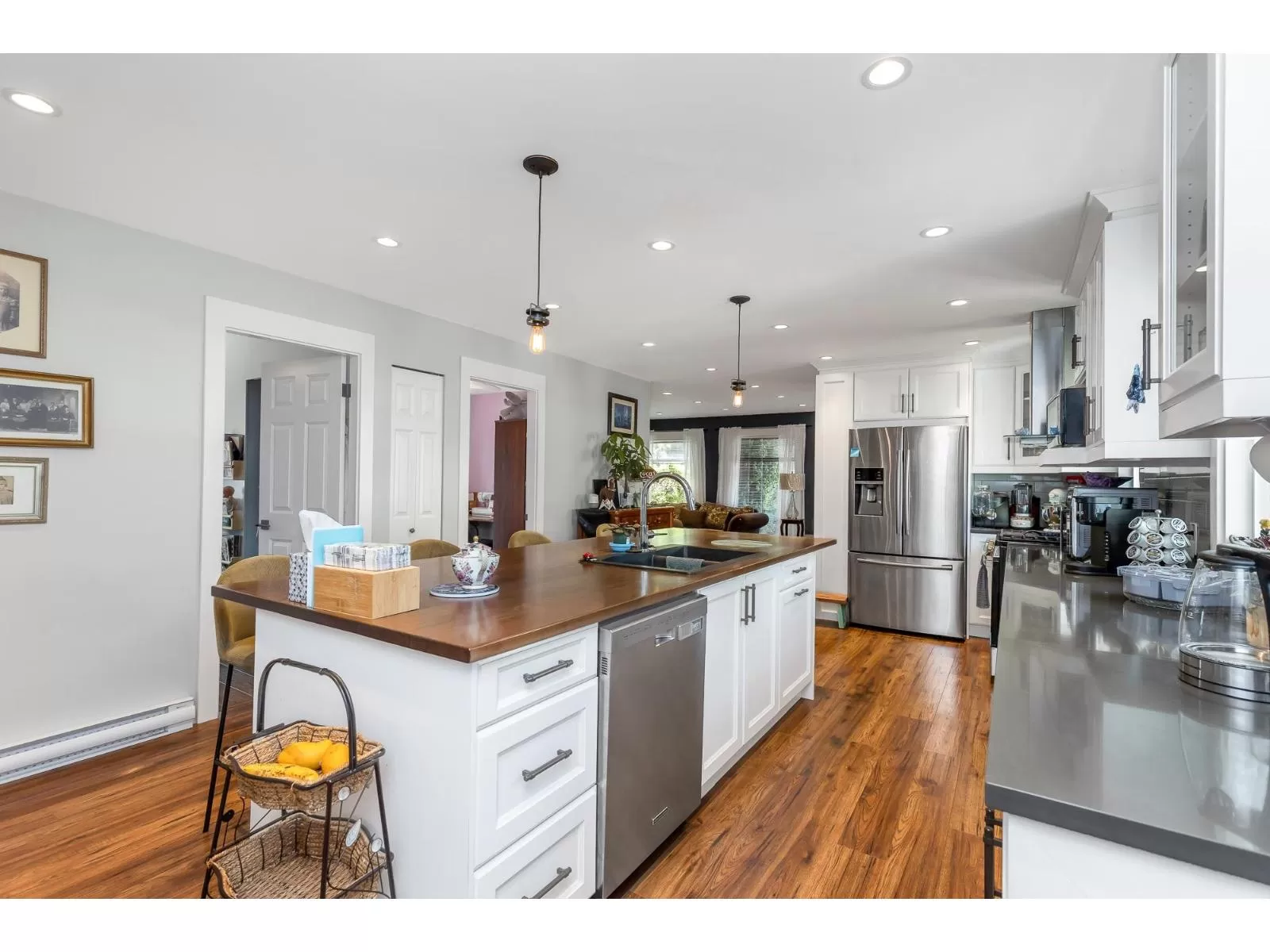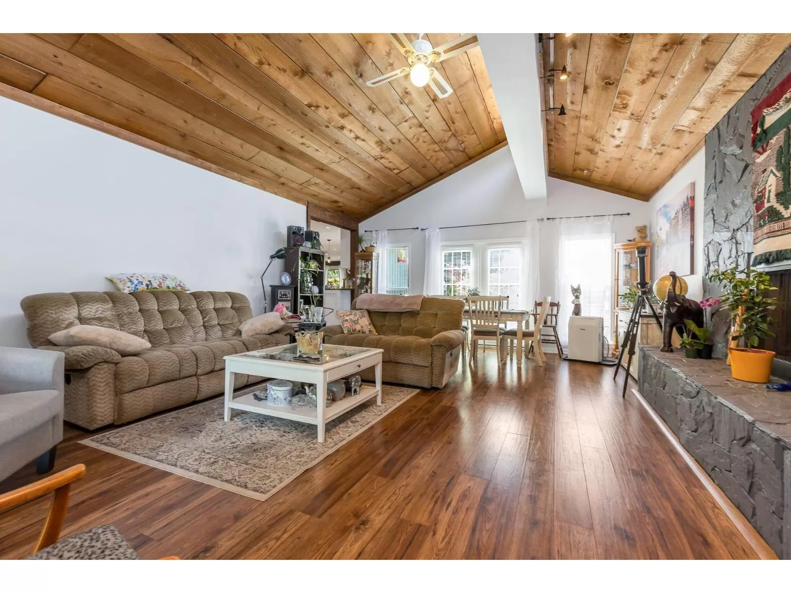 Beautifully renovated and full of West Coast charm, this 3-bed rancher is tucked away on a quiet cul-de-sac. The gorgeous kitchen has loads of cabinets and counter space with a massive island. Step down into the formal living room with vaulted wood ceilings and stone fireplace. The primary bedroom with 2 pc ensuite (closet is plumbed for a shower) and french door access to the back yard is a dreamy oasis. The backyard has a massive deck overlooking a private, fenced yard that backs directly onto Newlands Golf Course, with a gate for easy access. Enjoy the two storage sheds & RV parking. There's a potential future use to Low Rise Residential, Buyer to confirm with the City. Live long term or hold for investment! (id:27476)