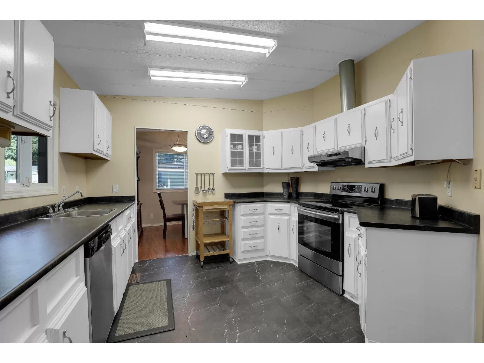Welcome to Fernridge Park! This updated double-wide manufactured home offers a bright. spacious floor plan with vaulted ceilings and a warm atmosphere. Featuring 2 beds & 2 full baths, this home is perfectly situated in a quiet, private spot within the park. Updates include a newer roof, carport, flooring, bathrooms, hot water tank, furnace, appliances and kitchen. Age restricted 55+ community (no exceptions), no pets or rentals permitted, maximum 2 residents per home, and park manager approval required (criminal background check/interview with Park Manager). Enjoy the best of both worlds, a peaceful, tucked-away setting that's close to shopping, transit, and all the amenities you need. This is a rare opportunity in a great park! Don't miss! (id:27476)