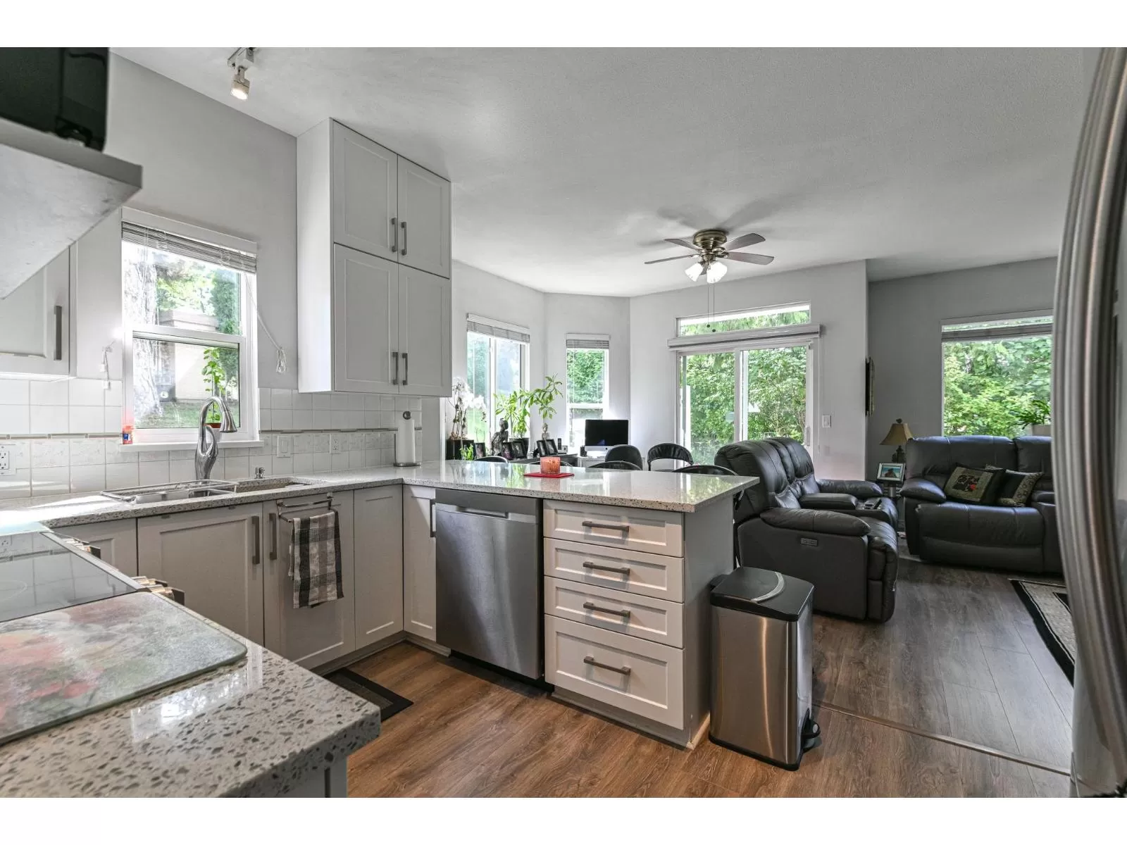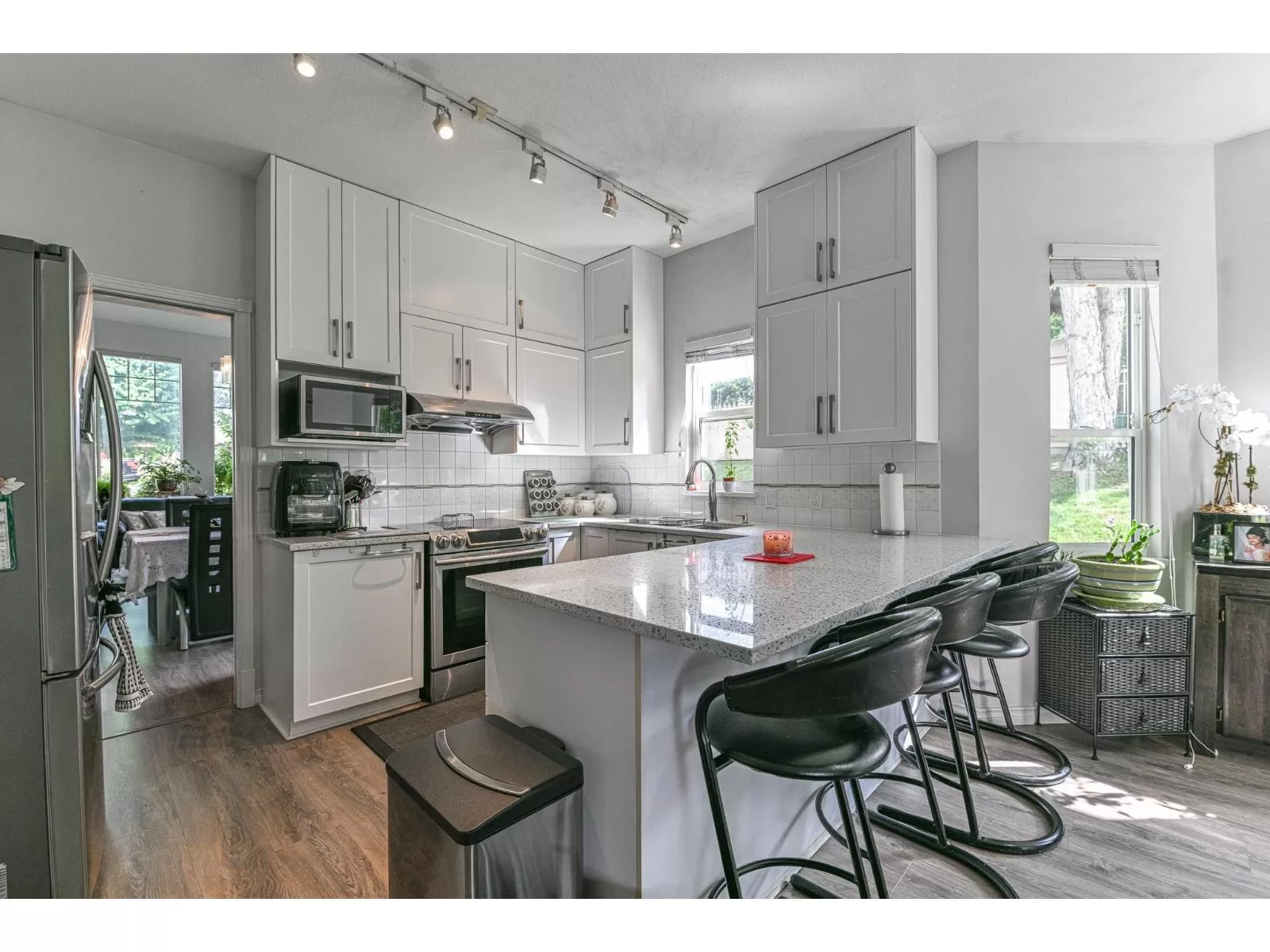 Welcome to Twin Lakes in the heart of Walnut Grove--an exceptional gated community close to restaurants, shopping, and entertainment. This fully renovated end-unit rancher townhome is the largest style available in the complex. South-facing and overlooking a tranquil pond water feature, the unit offers abundant natural light and privacy. Extensively updated in 2022, including new flooring, paint, kitchen, bathrooms, appliances, and a new radiant heat system. The spacious living room features a soaring turret-style ceiling and allows into a large dining area. The kitchen, family room, and primary suite are all positioned to enjoy views of the pond. New boiler, HWT in great shape, and newer dishwasher and garburator. Clean, move-in ready, and beautifully modernized. Large double garage (id:27476)