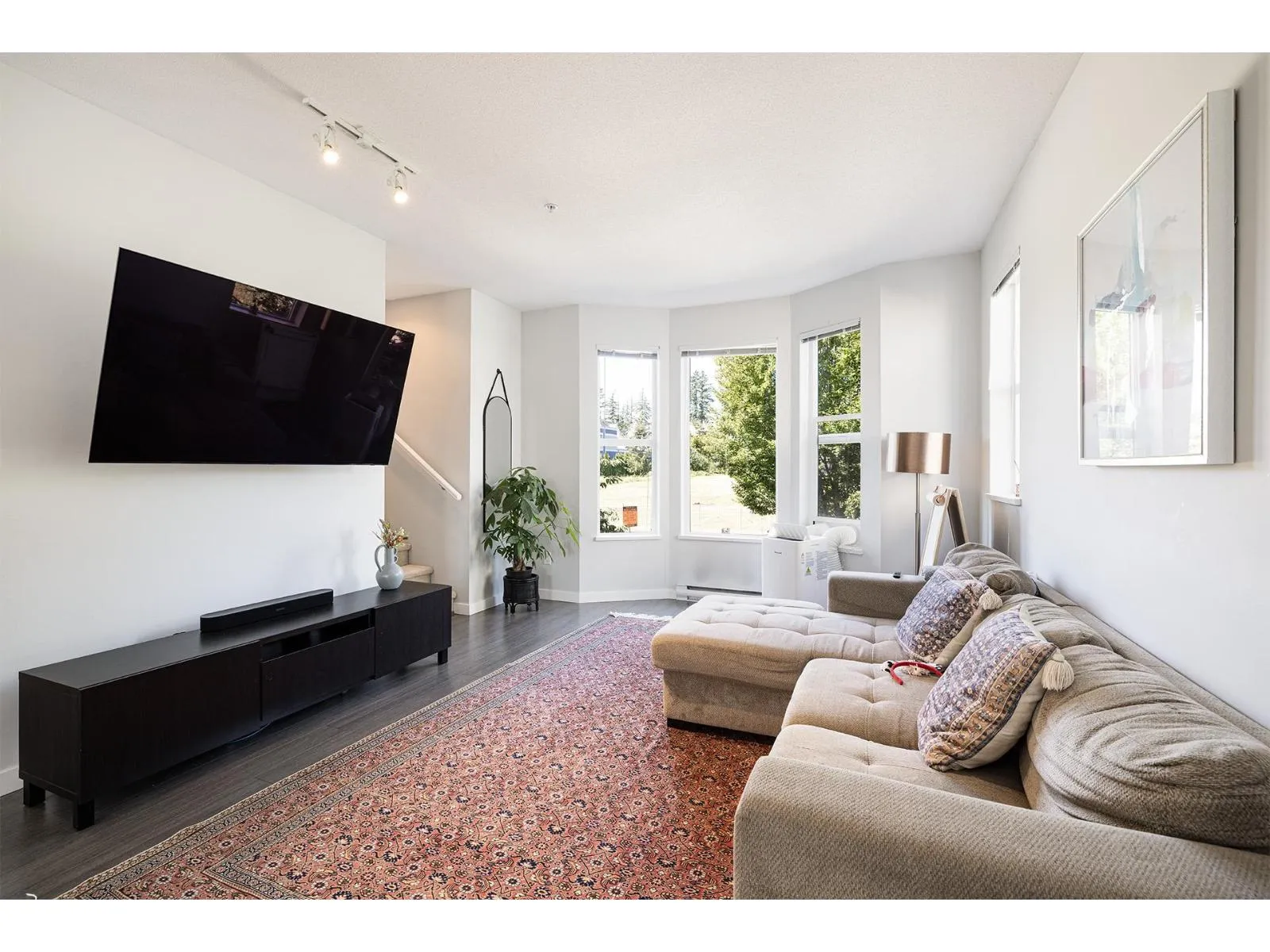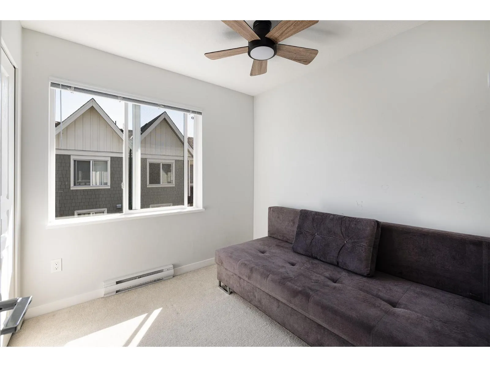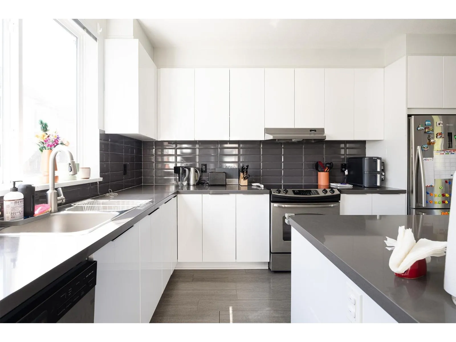 Welcome to Ashbury + Oak in Willoughby! This bright 3 bed + den, 3 bath corner unit features an open layout, large windows & double side-by-side garage. Stylish kitchen with quartz counters, shaker cabinets & stainless appliances. The living room offers an unobstructed view of the green field owned by the church across the street. Private fenced yard & sunny deck perfect for entertaining. The garage features home EV charge. Enjoy resort-style amenities: clubhouse, gym, pool, hot tub & guest suite. Family & pet-friendly community close to parks, schools, shops & Carvolth Exchange. (id:27476)