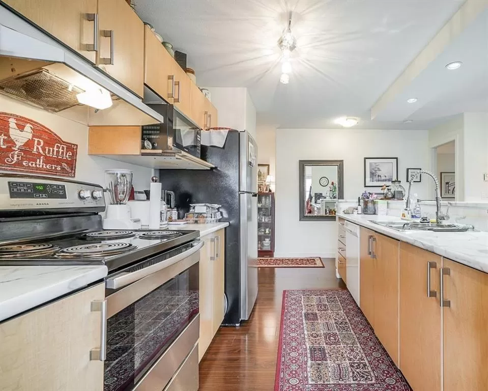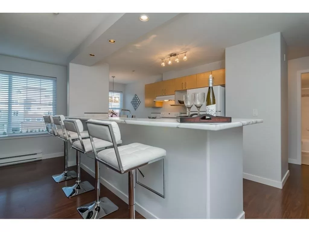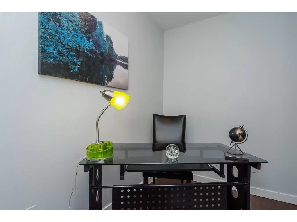 Step into style and comfort with this sun-drenched CORNER unit, perfectly designed for modern living. The versatile den is ideal for a home office or creative space, while the spacious living room flows seamlessly into a sleek, OPEN-concept kitchen featuring a bar-style island and newer SS appliances-perfect for entertaining or casual dining. Just a short stroll to the upcoming SkyTrain station, this location offers unbeatable convenience in the heart of Central City. The gated complex is built with enduring quality and offers a pet-friendly lifestyle. With the tenant moving out at the end of the month, quick possession is available-so you can move in and start living your best urban life without delay. This opportunity won't last! (id:27476)