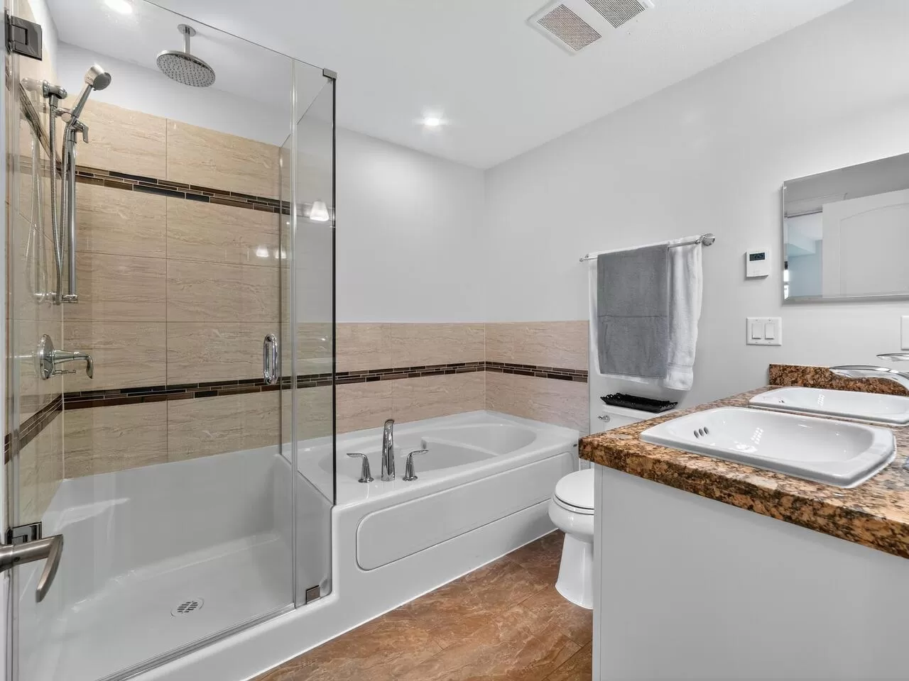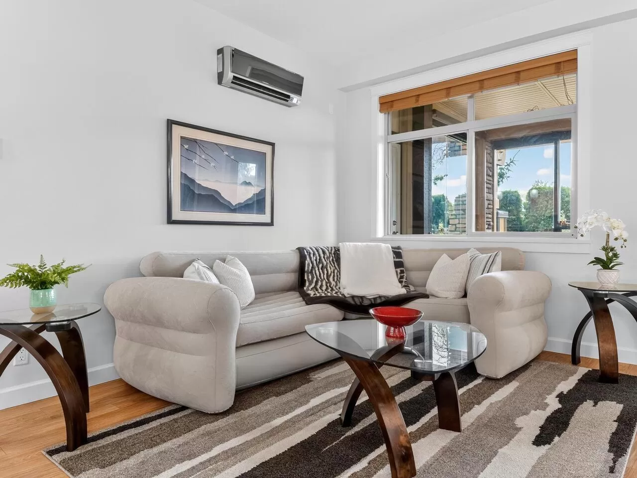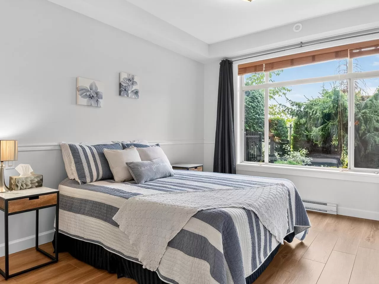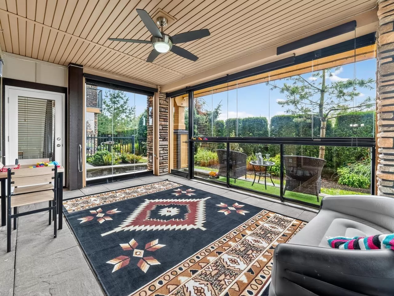 Rare 4 bedroom, 1,804 sqft ground floor condo in sought-after Yorkson! Offers 1,602 sqft of interior living + 202 sqft enclosed solarium w/ retractable glass panels, gas BBQ hook-up, and sound-proofing ceiling insulation - opening to a private grassy area. Primary bedroom with large walk-in closet has a private ensuite w/ in-floor heating, double sinks, and walk-in shower. Second bath has in-floor heating, dbl sinks, walk-in shower + soaker tub, and dual access from bedroom or living room. Kitchen features granite counters, S/S appliances, gas range w/ pot filler, and breakfast bar. A/C, heat pump, electric fireplace. Shaw Cable/Internet (to Mar 2027), and gas incl. in strata. 2 side-by-side parking stalls and 2 storage lockers (1 w/ EV charger capability). Walk to schools/parks/transit. (id:27476)