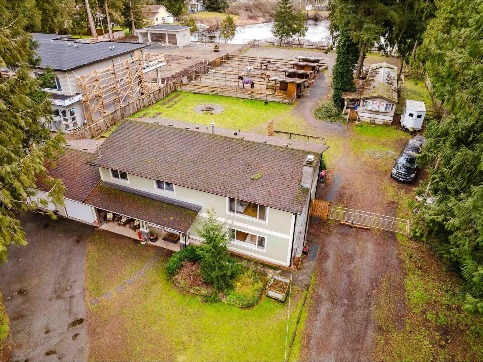 Beautiful 2652 sq ft, 4 bdrm 2 bath home on quiet & private 0.91 acre lot, complete with 4 horse shelters and turn outs plus riding ring PLUS there's a 2bdrm Modular Home! Inside has been tastefully remodelled, with a bright open kitchen with quartz countertops and gas range, spacious living room with gas fireplace, and dining room opening up to large sundeck overlooking the pristine and private property. On a very quiet street, located close to Campbell Valley Park, this property is zoned SSMUH 2 (7000 sq ft lots) in the Brookswood-Fernridge Community Plan. Enjoy peaceful living in this serene and private property while waiting for the upside of future development. Call now to book your private viewing! (id:27476)