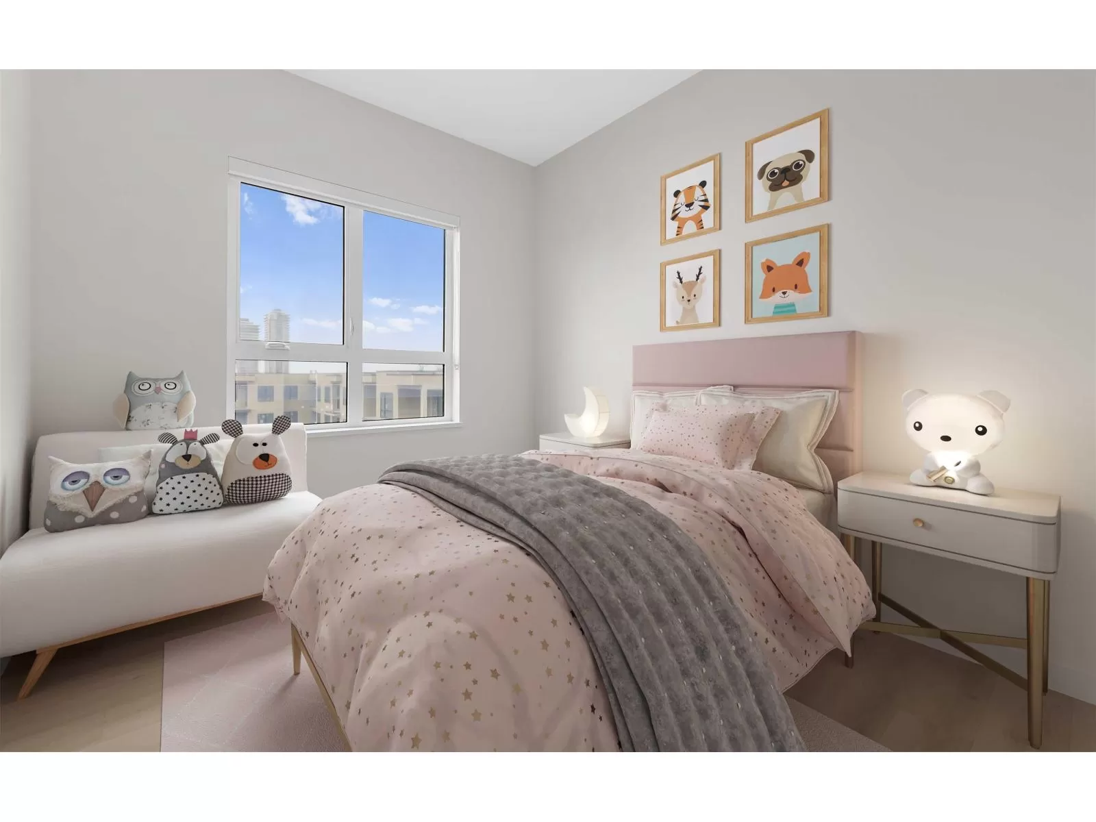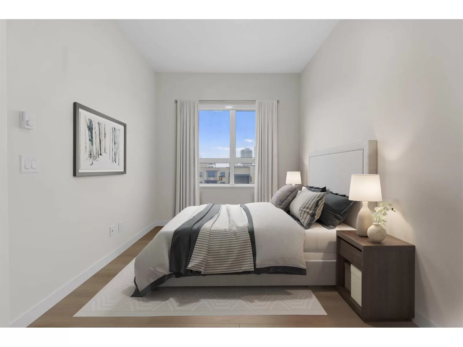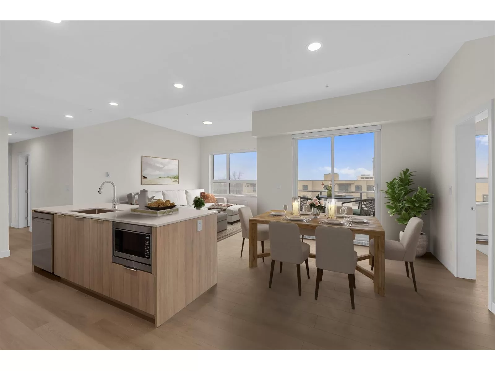 Welcome to VESTA BUILT South Village Condos with 2 PARKING SPOTS! This stylish & functional floorplan boasts 9"ceilings, a SPACIOUS living & dining room with expansive windows for loads of natural light. Entertain in your modern kitchen with ++ storage, generous sized island, soft-close cabinetry, under-cabinet lighting, stainless steel appliances inc. 5-burner gas cooktop, sleek quartz counters & modern backsplash. Primary bedroom has a walk-in closet & a 2-sink vanity ensuite. Enjoy your CORNER, Northeast facing balcony where you will see mountain peaks over morning coffee. Contemporary 'sand' color scheme, AC, EV capable parking & pet friendly! Located close to NEW Josette Dundurand Elementary, Langley Events Centre, Carvolth Bus Exchange, 200 Street transit & easy access to Hwy 1. (id:27476)