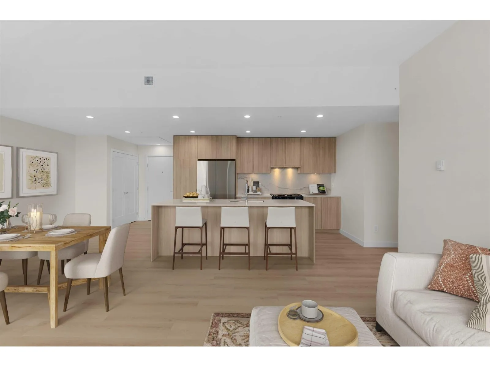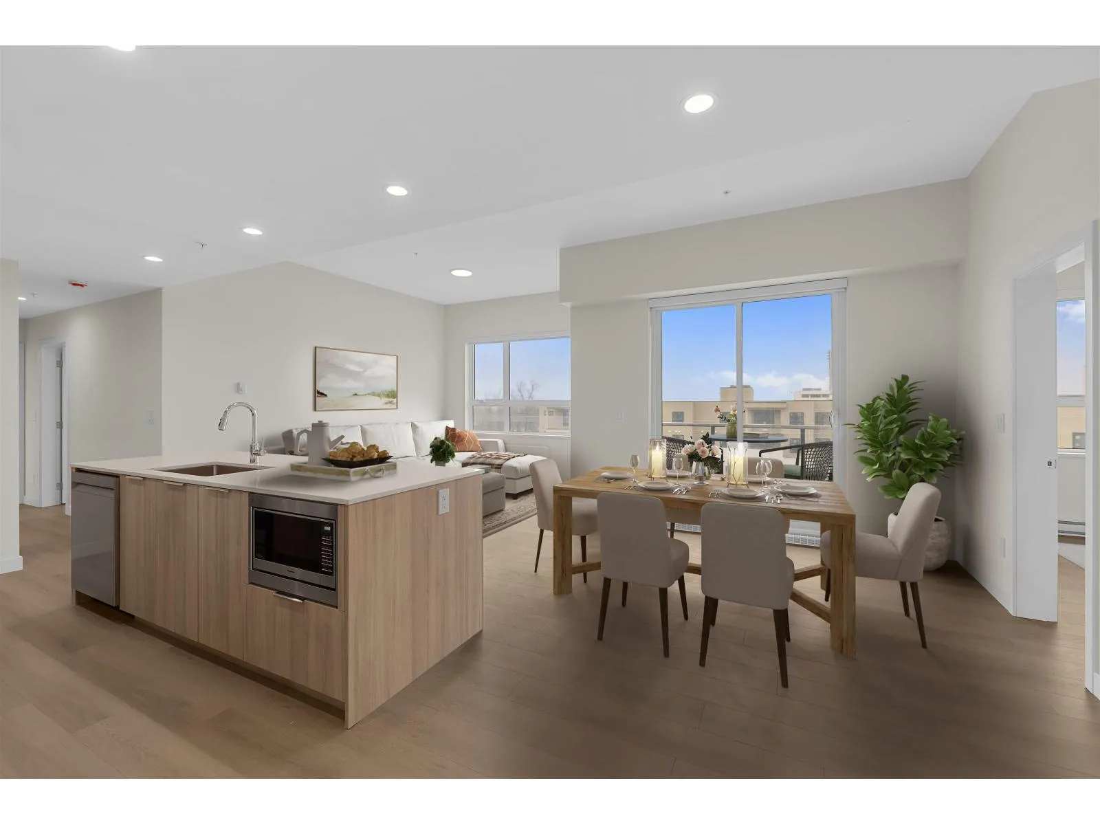 Welcome to VESTA BUILT South Village Condos with 2 PARKING SPOTS!! This stylish & functional floorplan boasts 9"ceilings, a SPACIOUS living & dining room with expansive windows for loads of natural light. OVERLOOKS Cascade Mtns & watercourse below (extra privacy). Entertain in your modern kitchen with ++ storage, generous sized island, soft-close cabinetry, under-cabinet lighting, S/S appliances inc. 5-burner GAS cooktop, quartz counters & contemp backsplash. Primary bedroom w walk-in closet & a 2-sink vanity ensuite. BIGGEST CORNER, NE facing balcony where you get MOUNTAIN VIEWS over morning coffee. AC, EV capable parking & pet friendly! Steps from NEW Josette Dundurand Elementary, Langley Events Centre, Carvolth Bus Exchange, 200 St transit & easy access to Hwy 1. (id:27476)