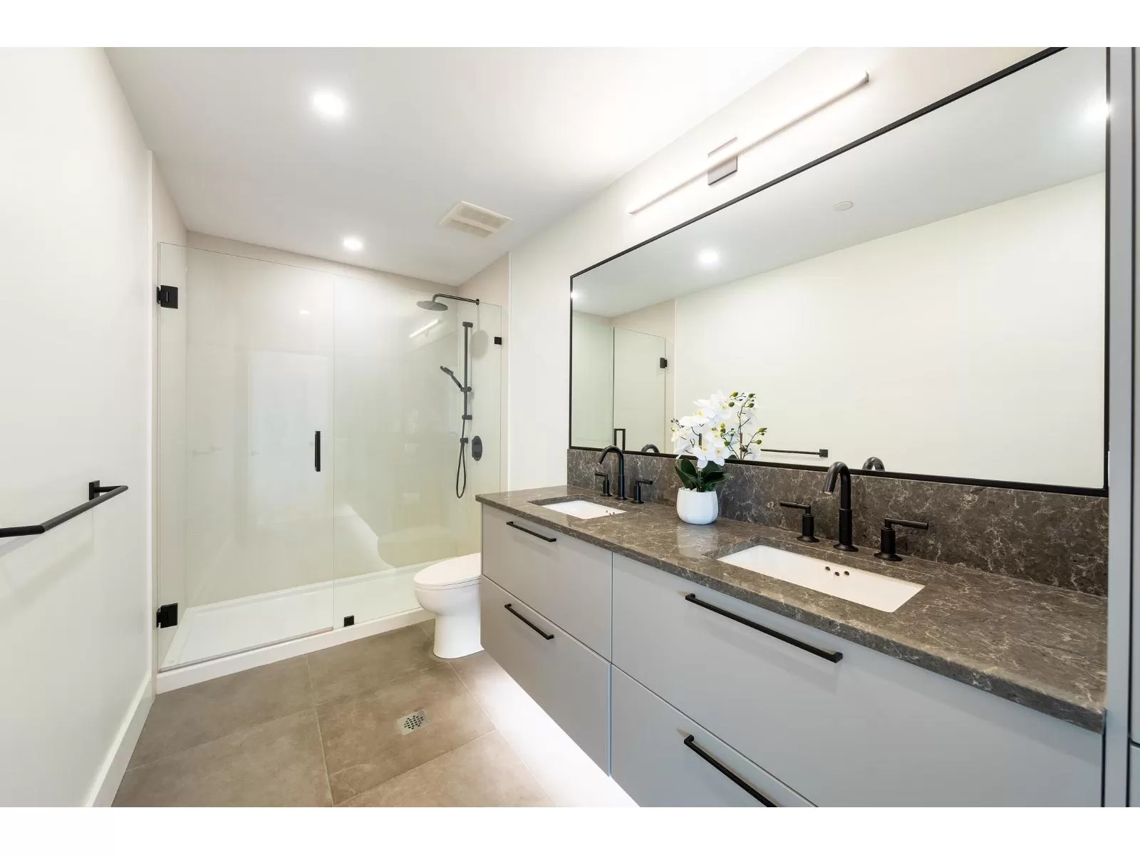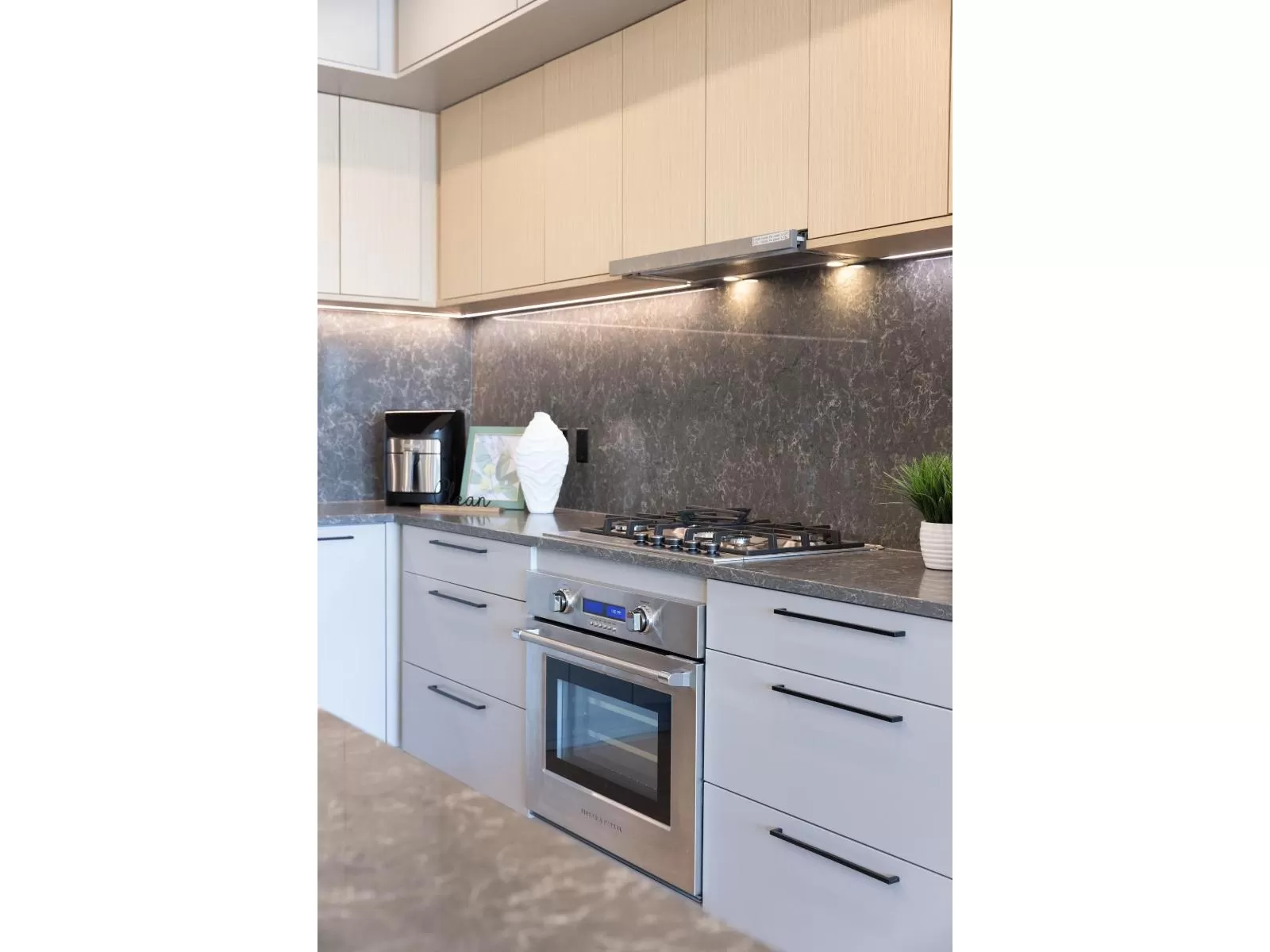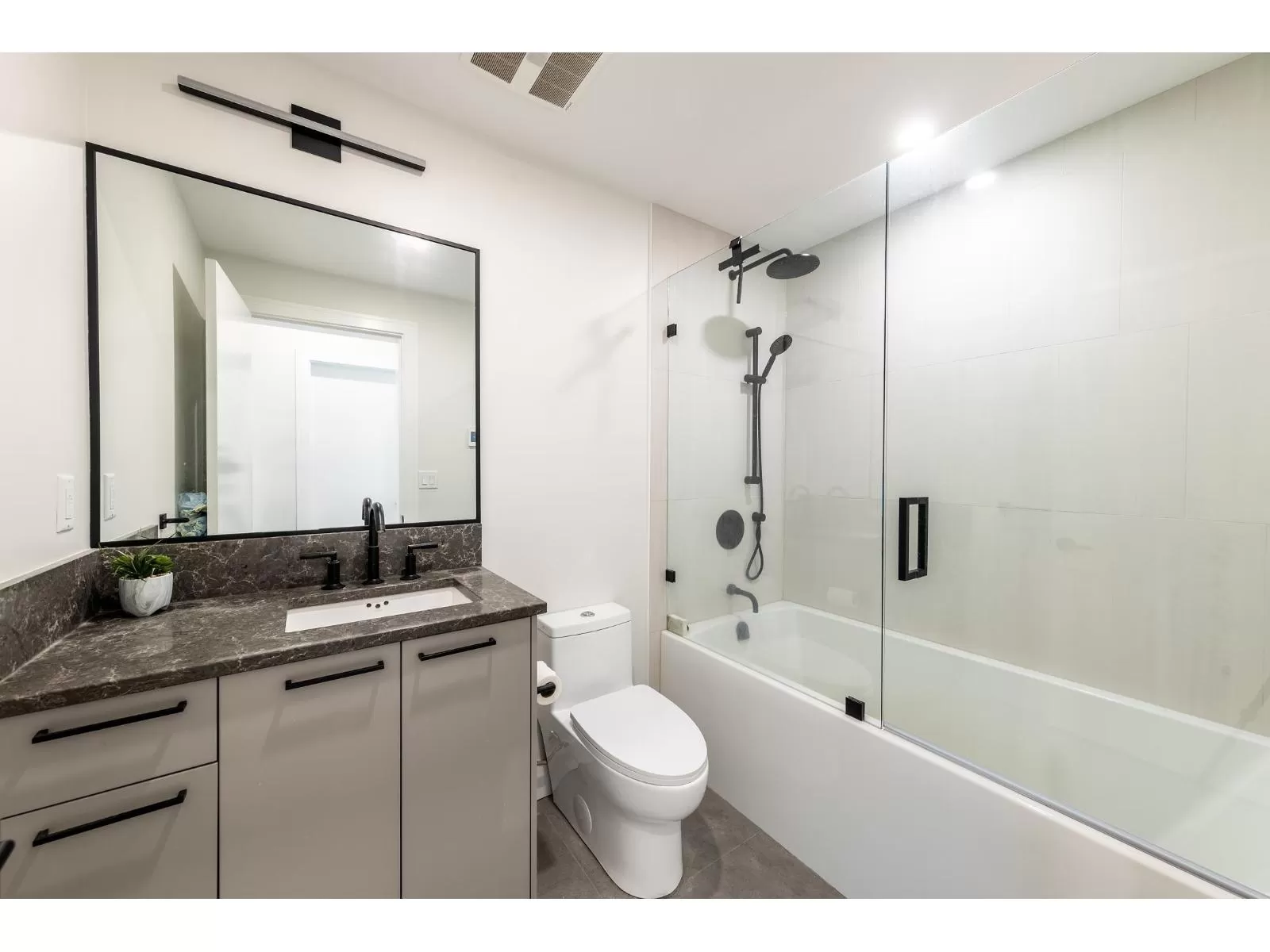 Luxurious sub-penthouse at Legacy On Park Avenue! This stunning 54' wide home features floor-to-ceiling windows showcasing beautiful mountain views and a 331 sq. ft. deck spanning the entire width. Unique curved architecture, durable aluminum & tile exterior, and mass timber low-carbon construction ensure timeless quality. Features 3 bedrooms + den with a walk-in closet (can be used as a 4th bedroom), ducted heating & air conditioning, Fisher & Paykel built-in appliances, Caesarstone countertops, and 3/4" oak hardwood flooring throughout. Amenities include concierge, fitness centre, Grand Lounge, and EV charging. Includes 2 parking & 1 locker. Half a block to shopping and community centre, and only 8-minute walk to the future SkyTrain station. (id:27476)