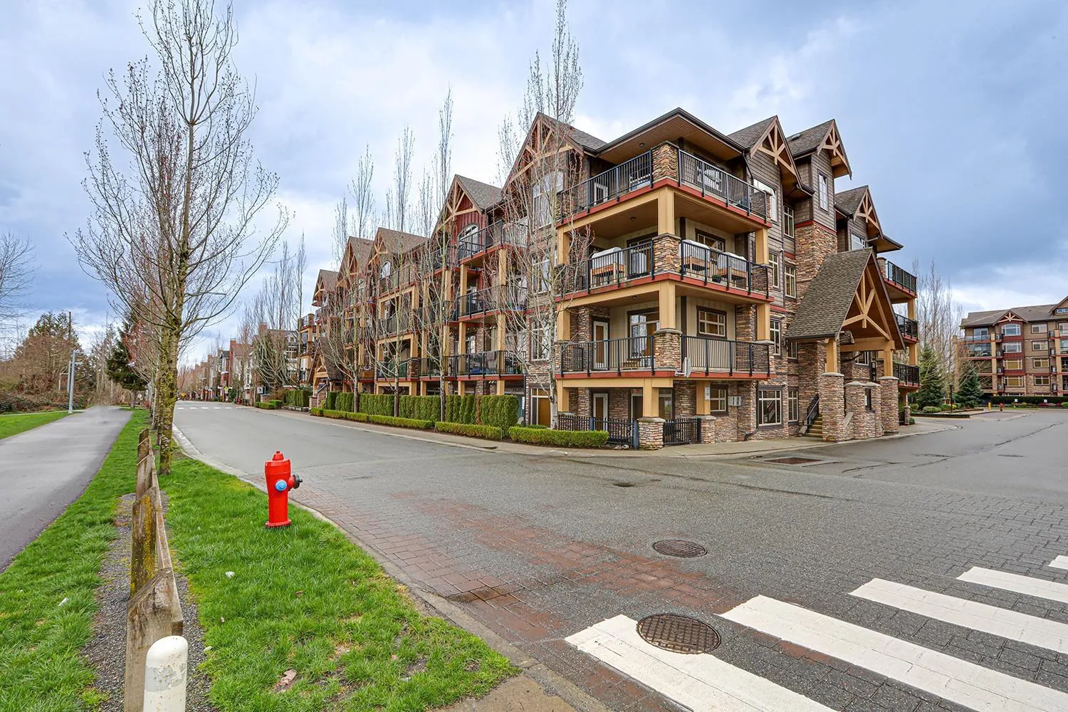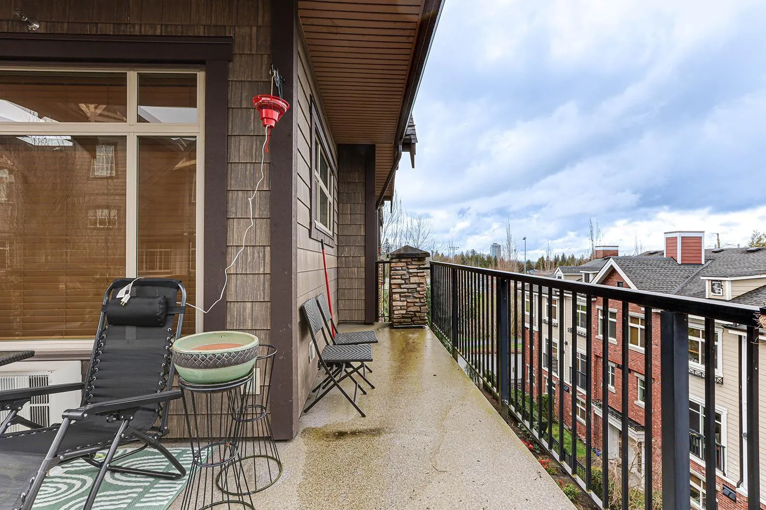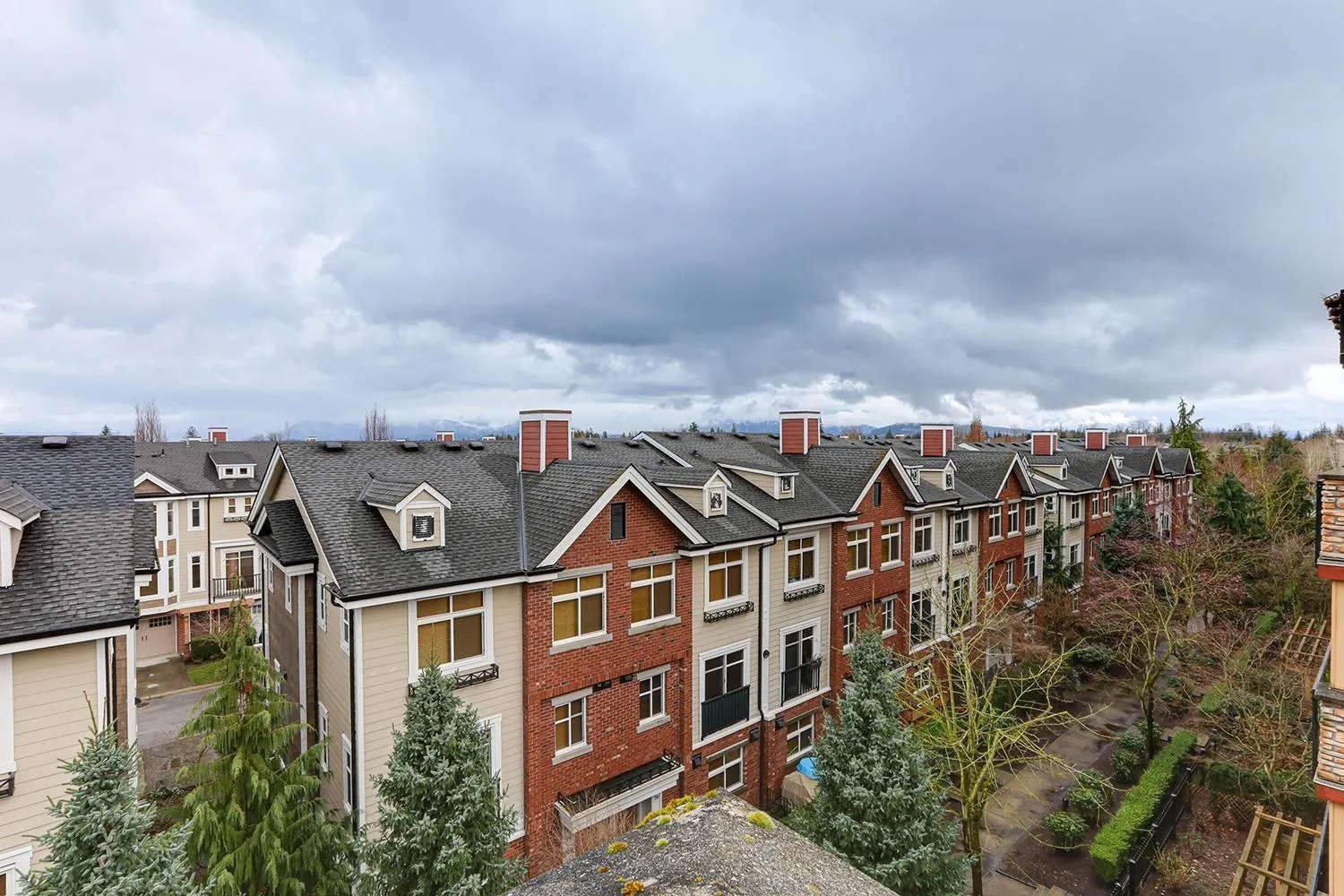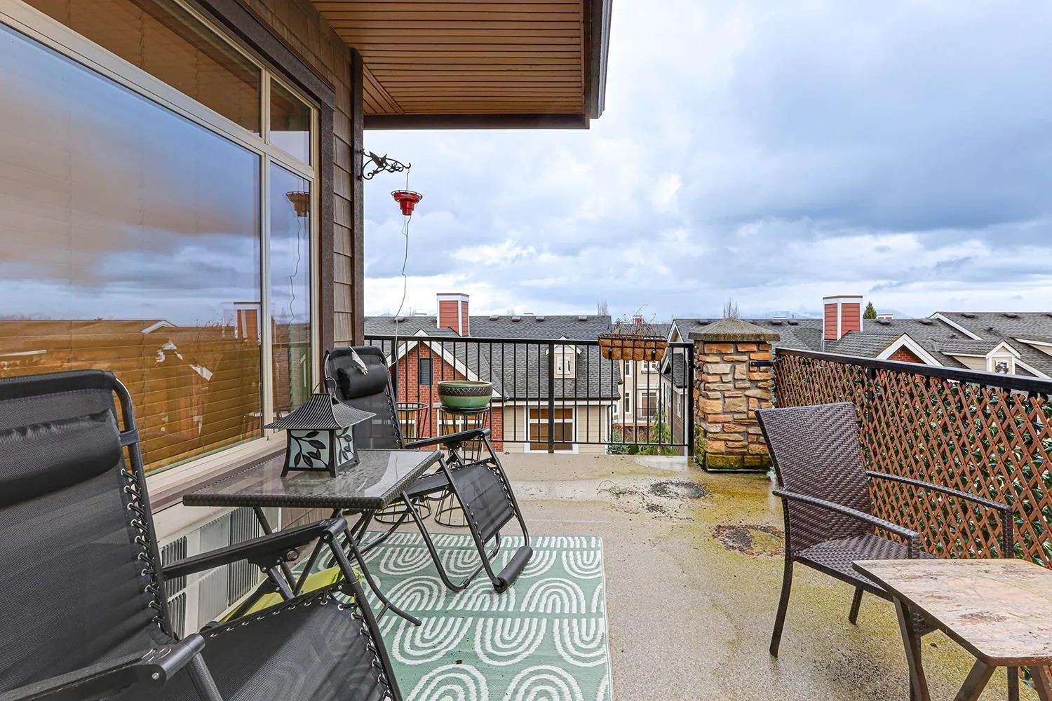 TOP FLOOR CORNER UNIT with soaring vaulted ceilings and a massive 231 sqft balcony-perfect for entertaining or unwinding with mountain views! Welcome to Yorkson Creek, one of Willoughby's most desirable communities. This 2 bed + DEN, 2 bath home offers 906 sqft of beautifully designed living space featuring rich hardwood floors, granite countertops, solid wood cabinetry, and s/s appliances. Natural light pours in through oversized windows, creating a bright and inviting ambiance. The layout offers excellent bedroom separation and a flexible den-ideal for a home office or nursery. Perfect for downsizers or young families! Comes with 2 parking stalls and a large storage locker conveniently located behind your stall. Amenities include gym, playground, and more. Pet-friendly, steps to schools, transit, parks, shopping, and HWY 1. Click on virtual tour for more. (id:27476)