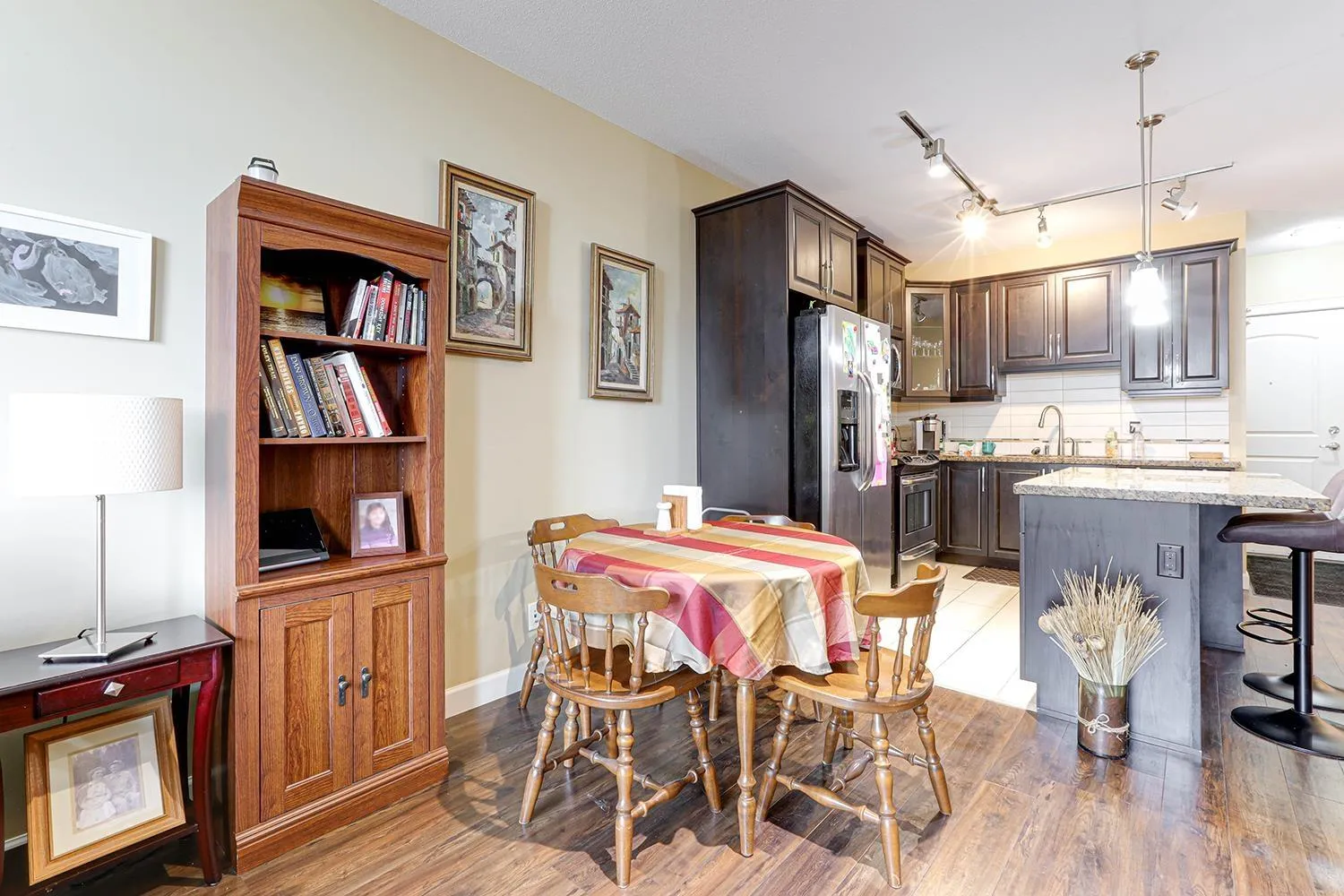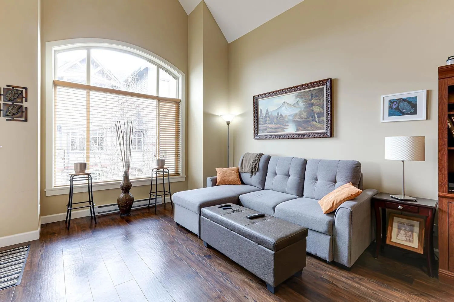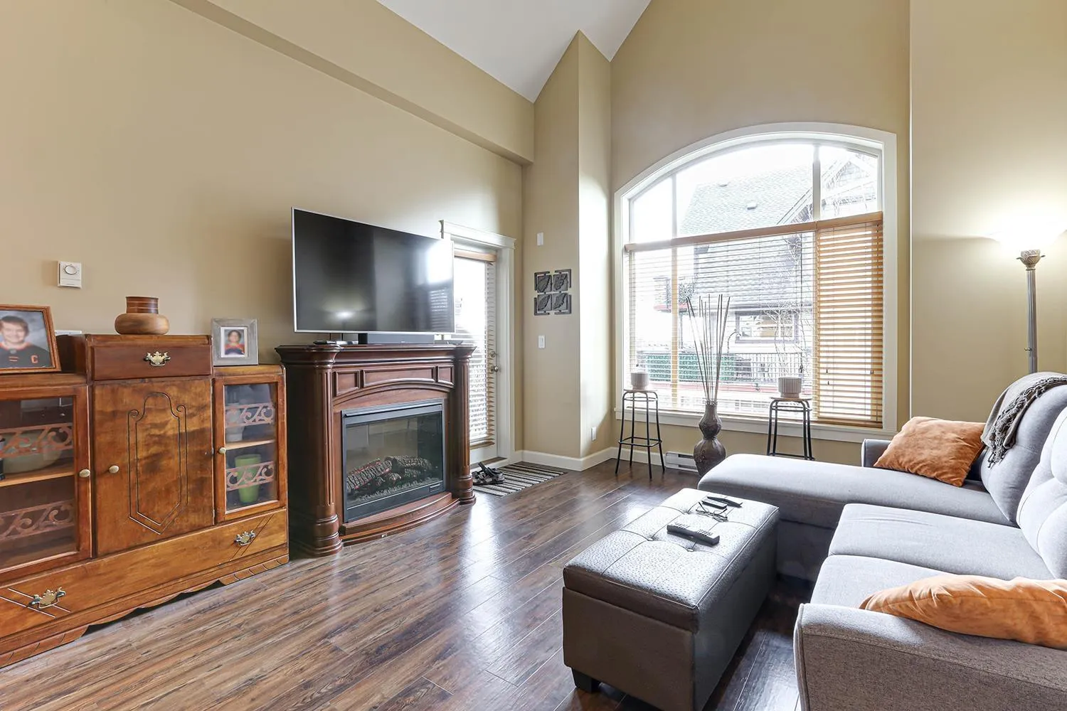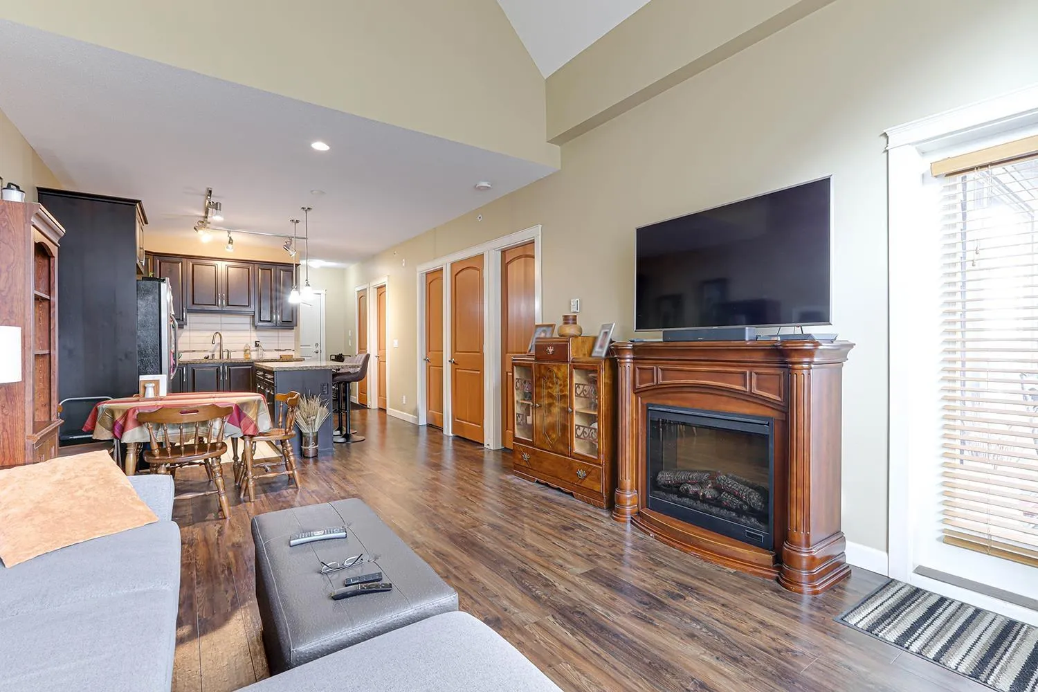 TOP FLOOR CORNER UNIT with soaring vaulted ceilings and a massive 231 sqft balcony-perfect for entertaining or unwinding with mountain views! Welcome to Yorkson Creek, one of Willoughby's most desirable communities. This 2 bed + DEN, 2 bath home offers 906 sqft of beautifully designed living space featuring rich hardwood floors, granite countertops, solid wood cabinetry, and s/s appliances. Natural light pours in through oversized windows, creating a bright and inviting ambiance. The layout offers excellent bedroom separation and a flexible den-ideal for a home office or nursery. Perfect for downsizers or young families! Comes with 2 parking stalls and a large storage locker conveniently located behind your stall. Amenities include gym, playground, and more. Pet-friendly, steps to schools, transit, parks, shopping, and HWY 1. Click on virtual tour for more. (id:27476)