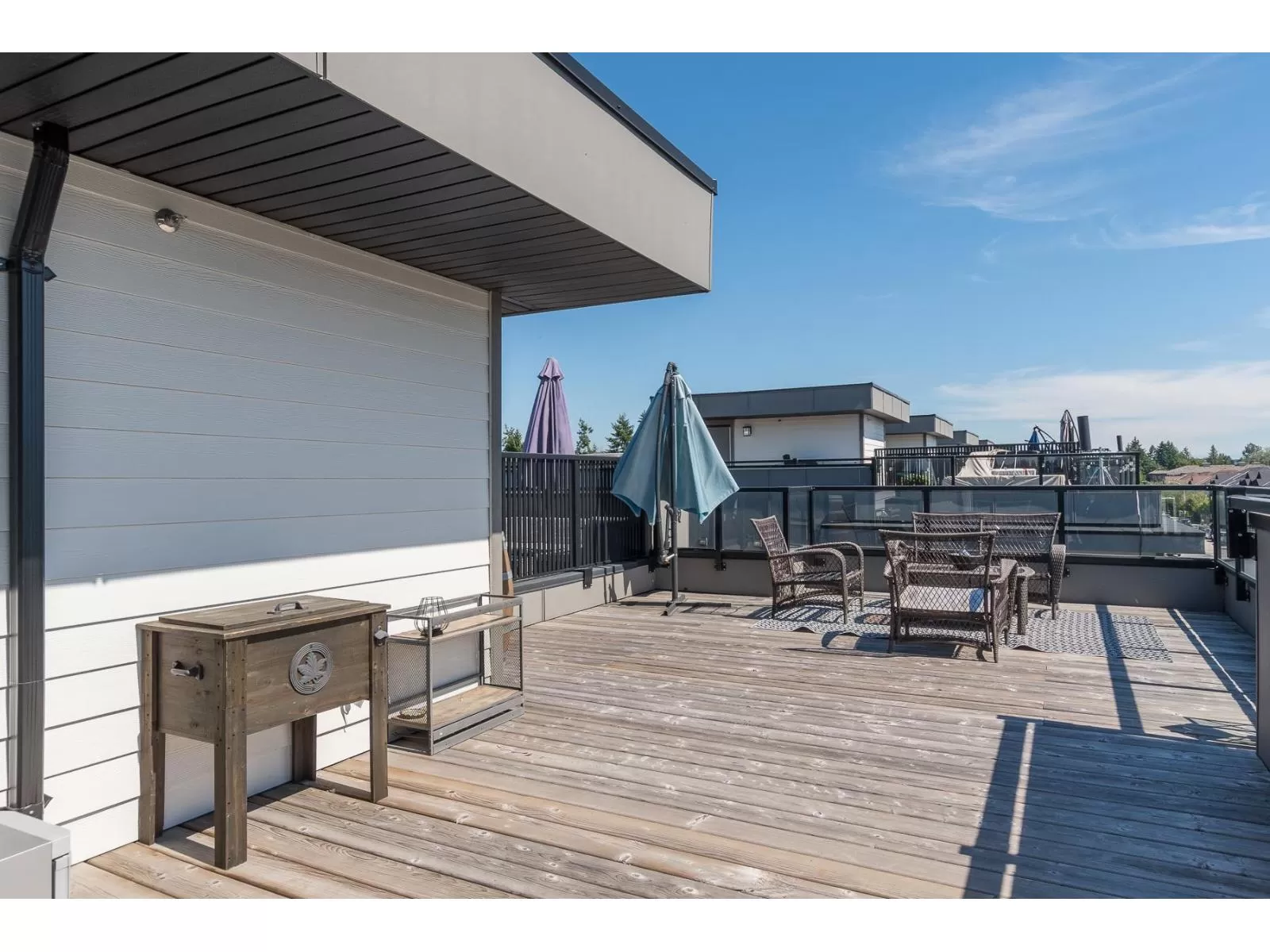 This spacious Corner next to a dead end street is Bright .2 bed / 3 bath,3 year old unit with 1501 sq ft,Primary bedroom has double closets,Extra corner window ,2nd bedroom is good size with 3 closets,Both rooms are practical. Double tandem garage currently part of it is used as a workshop area in the garage. Roof top deck approx 500 sq ft. Sundeck off the nook area. Bright Kitchen with gas Range, quartz countertops, engineered laminate flooring, frameless glass showers, custom wooden cabinets, stainless steel appliances,Clean and fresh, making this all ready for your family.Enjoy Air conditioning, Gas forced air furnace.Excellent value. Located in Langley City close to shops, restaurants, shopping, recreation and the newly expected Skytrain Station (id:27476)