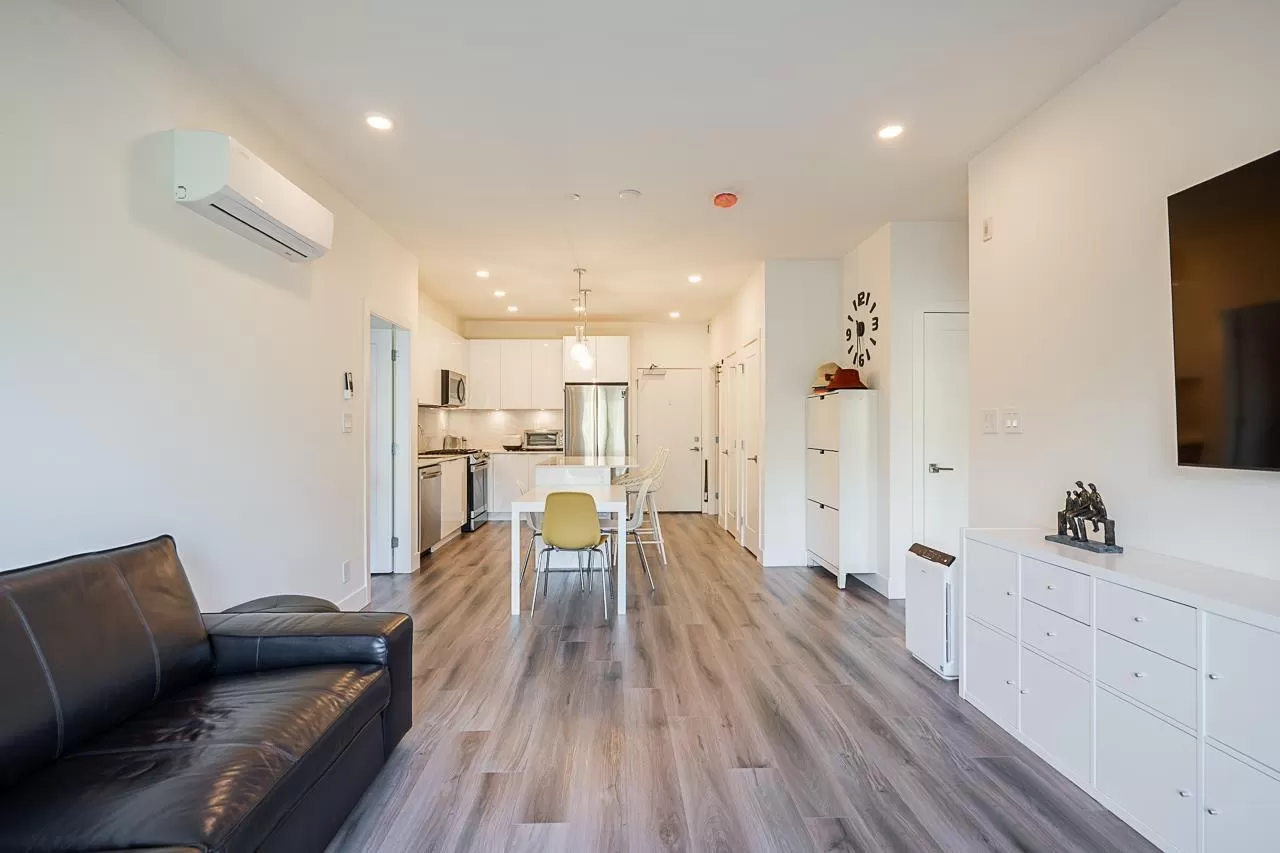 Aristotle Living in the heart of Willoughby, East Facing Modern 2 bedroom + den with 9' ceilings. Light Color Scheme - Featuring beautiful wide plank vinyl flooring throughout, large kitchen island with quartz countertop, modern kitchen cabinets, S/S Samsung appliances throughout, and a large balcony. The full-sized closet in the den makes it an optional 3rd bedroom. Over 3800 sq.ft of amenities: fitness centre, yoga studio, games room, dog wash station, and outdoor lounge with BBQ station. More upgraded items such as Air conditioning, Custom Closet shelving, & 2 parking stalls including 1 EV Ready. Walking distance to restaurants, shops, top-rated schools, Parks, Public transit, Carvolth Exchange, Easy access to Hwy #1. You'll Absolutely Love this Home. Book your showing today! (id:27476)