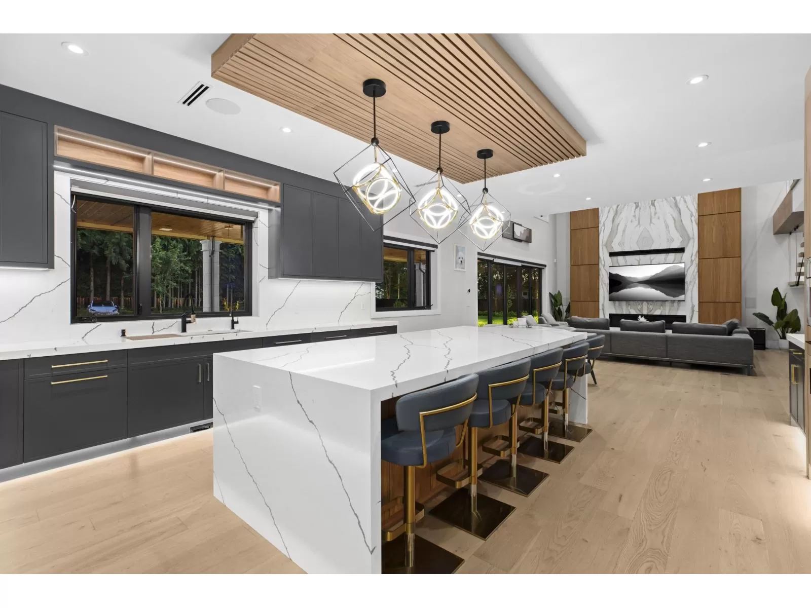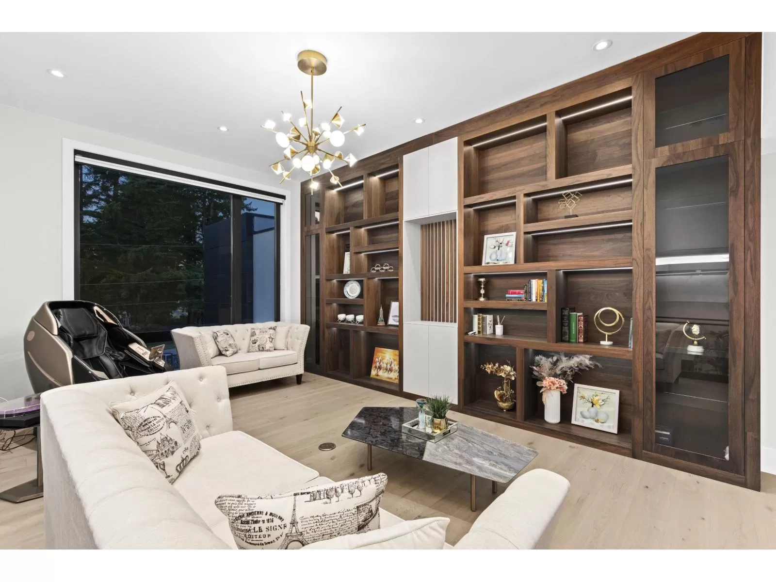 Discover this WORLD-CLASS modern marvel on over an acre of gated park-like property. The exquisite design & high-quality finishes create a remarkable residence that caters to the security & convenience of today's active family lifestyle. Experience a spacious main level featuring soaring ceilings, floor-to-ceiling windows, & generous principal rooms that offer an exceptional indoor-outdoor living experience, complete with a walk-out terrace overlooking the grounds. Additional features include a chef's kitchen with Miele appliances, a secondary kitchen, FOUR primary bedroom suites + additional guest bedrooms, library, office, gym, sauna, theatre adorned with fibre optic star ceiling, Control4 & more. BONUS: 2 bedroom legal suite & large outbuilding that can serve as additional living space! (id:27476)