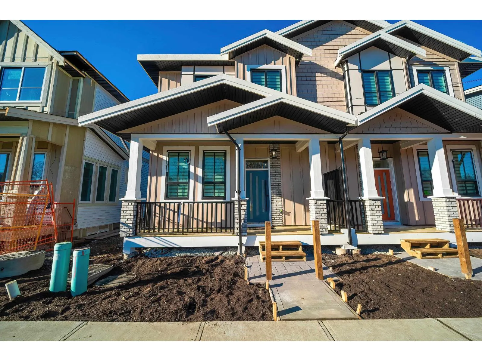 Discover this exceptional new development in Willoughby featuring half-duplex homes with no strata fees. These modern 4-bedroom, 5-bath residences are designed for ultimate comfort and style, offering 10-foot ceilings on the main floor, expansive windows that fill the home with natural light, a chef-inspired kitchen with quartz countertops and premium appliances, and a spacious primary suite with a walk-in closet and serene park views. The fully finished basement includes a bedroom, media room, and large living area-perfect for extended family or guests. Ideally located near Donna Gabriel Robins Elementary, Peter Ewart Middle School, and R.E. Mountain Secondary, this community delivers a perfect blend of elegance, functionality, and convenience for your dream home. (id:27476)