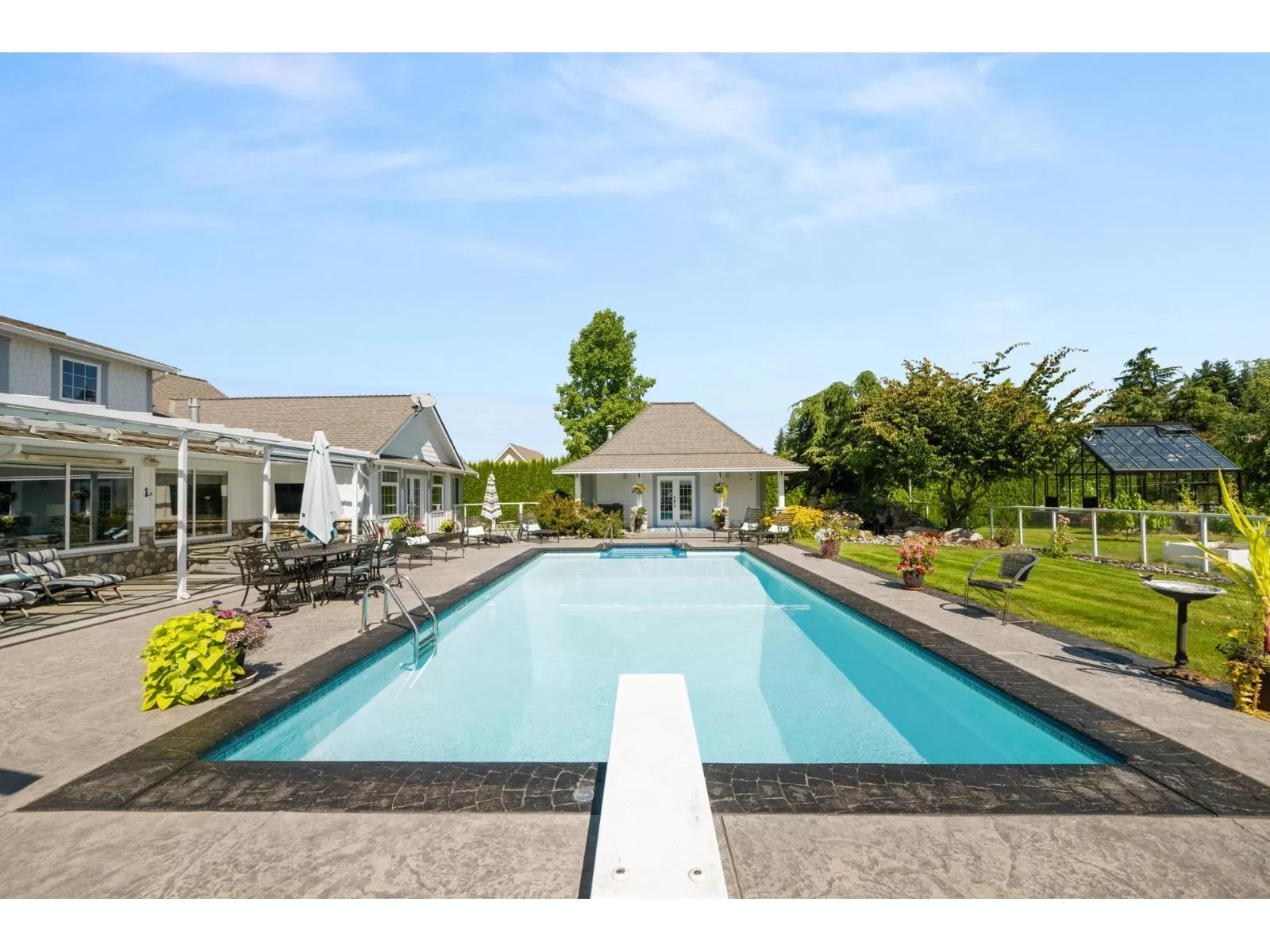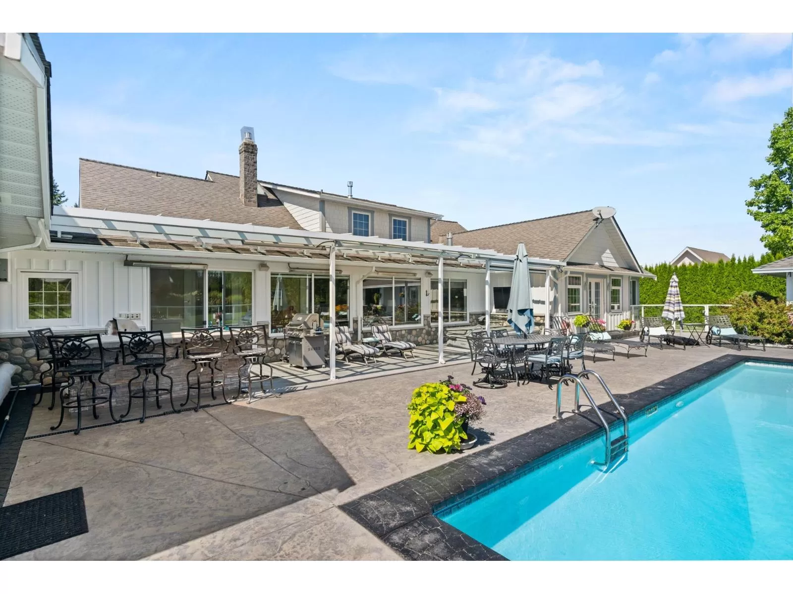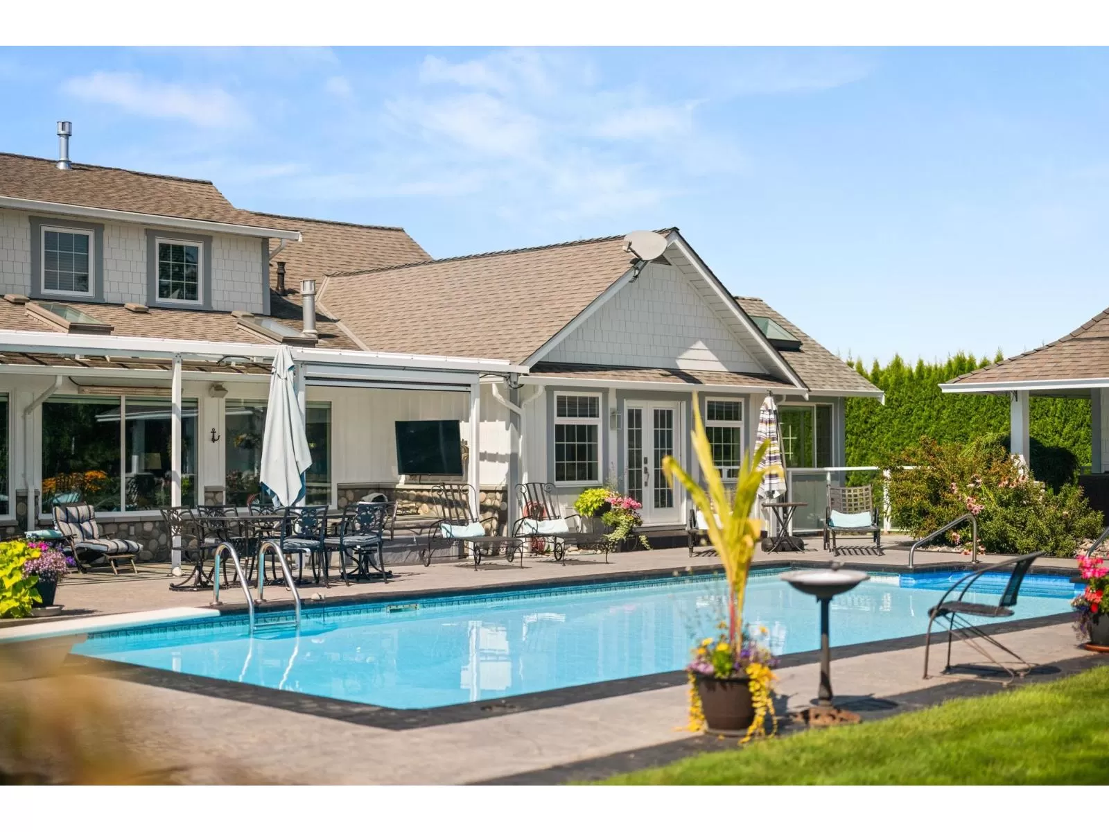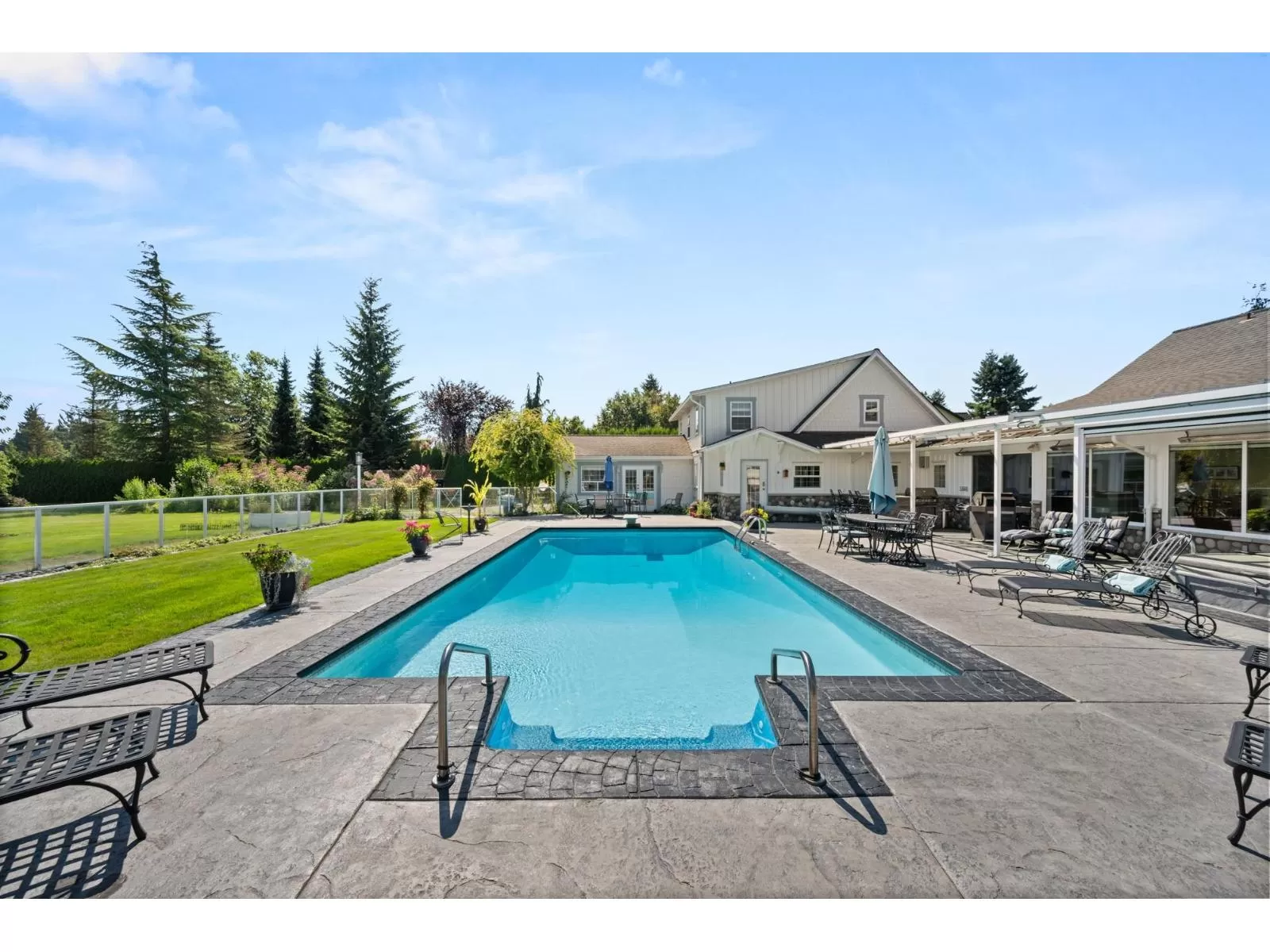 Luxury living in Langley's sought-after Strawberry Hills! This bright, private 6,026 sq.ft. 4 BED/6BATH custom home sits on a private 1-acre estate designed for seamless indoor/outdoor living. Elegant wainscoting, detailed millwork, and timeless traditional styling create a warm, sophisticated feel. The main-floor primary bedroom offers a spa-like ensuite and walk-in closet, while a beautiful guest suite is ideal for extended family. The backyard is an entertainer's dream with a covered outdoor kitchen, cabana with bathroom & gym, pool, and hot tub - your own resort at home. A detached workshop/garage with loft and a fantastic custom-built greenhouse add versatility for hobbies and lifestyle. A rare combination of craftsmanship, comfort, and outdoor living in an irreplaceable setting. (id:27476)