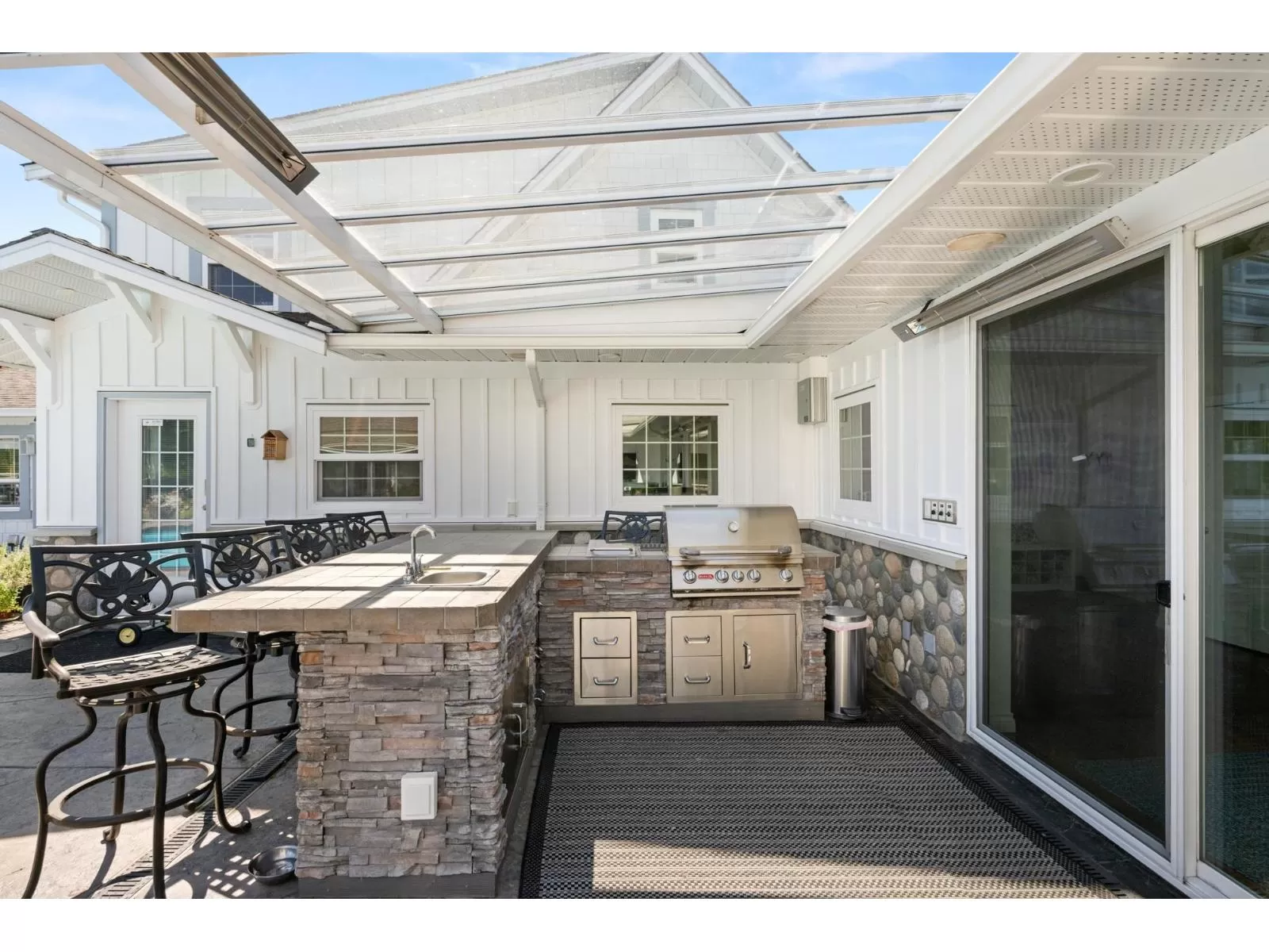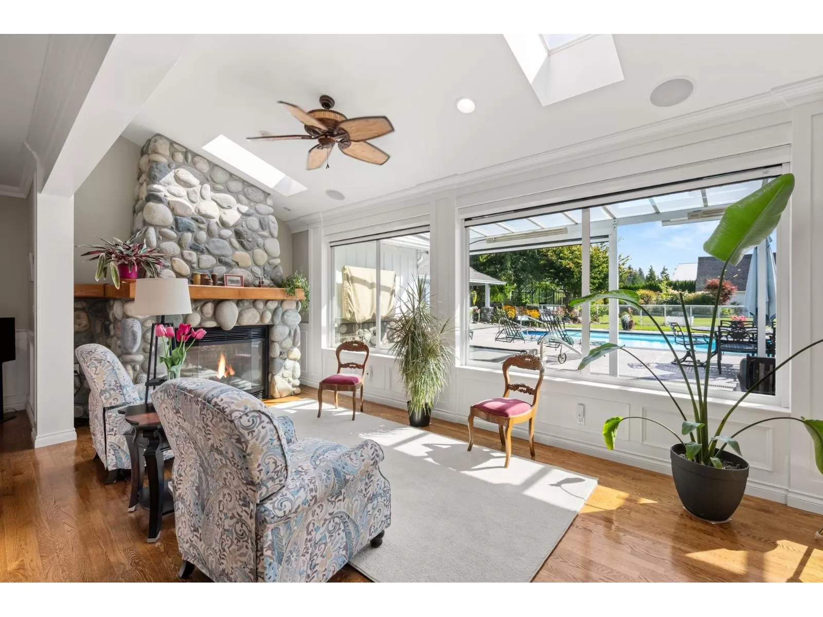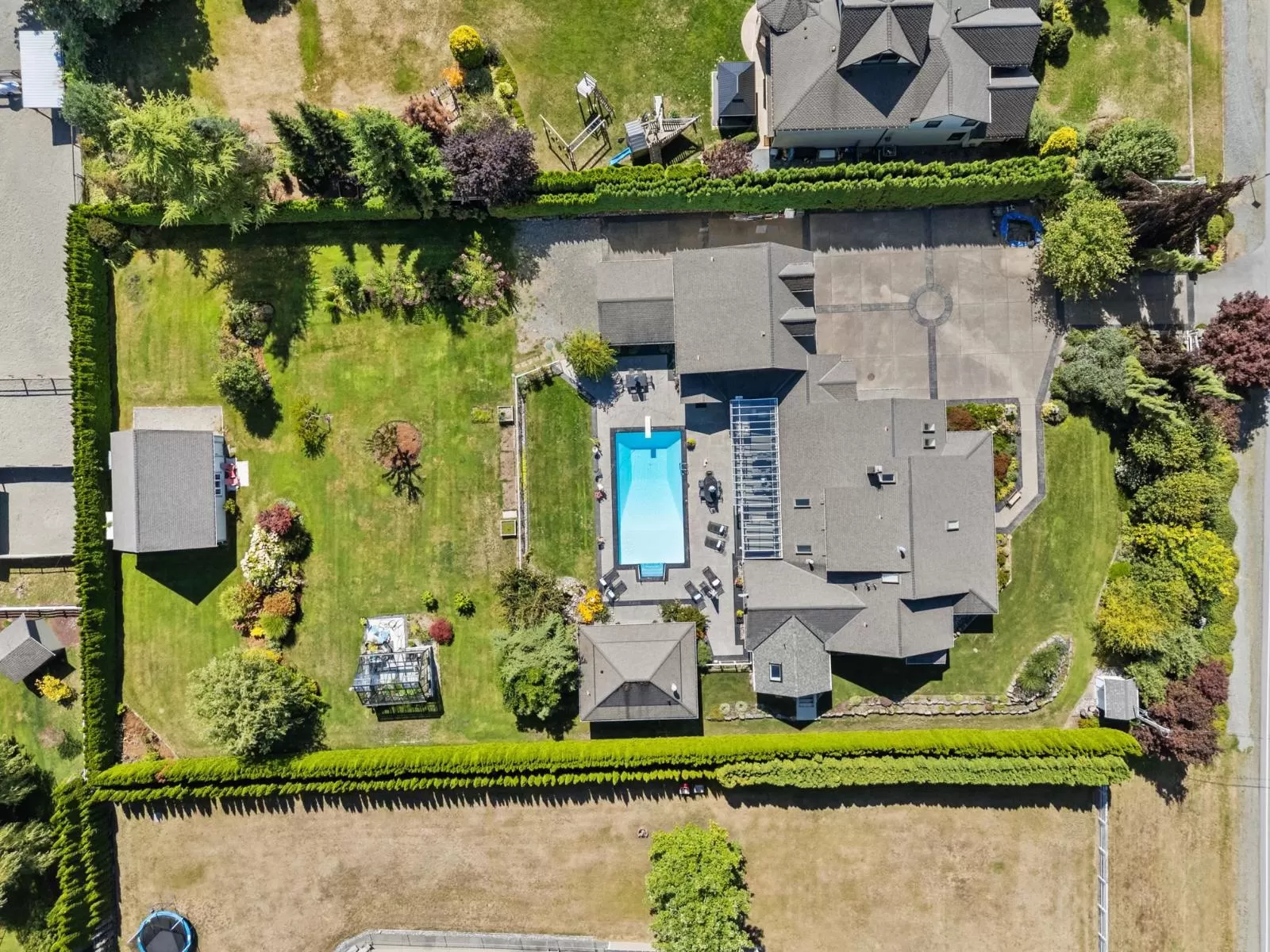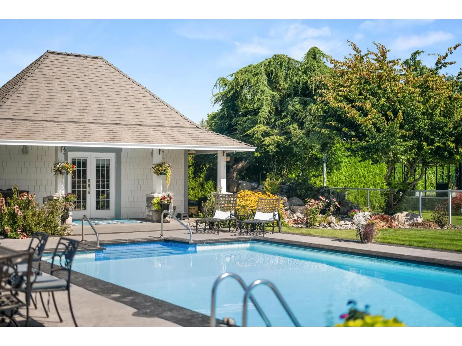 Luxury living in Langley's sought-after Strawberry Hills! This bright, private 6,026 sq.ft. 4 BED/6BATH custom home sits on a private 1-acre estate designed for seamless indoor/outdoor living. Elegant wainscoting, detailed millwork, and timeless traditional styling create a warm, sophisticated feel. The main-floor primary bedroom offers a spa-like ensuite and walk-in closet, while a beautiful guest suite is ideal for extended family. The backyard is an entertainer's dream with a covered outdoor kitchen, cabana with bathroom & gym, pool, and hot tub - your own resort at home. A detached workshop/garage with loft and a fantastic custom-built greenhouse add versatility for hobbies and lifestyle. A rare combination of craftsmanship, comfort, and outdoor living in an irreplaceable setting. (id:27476)