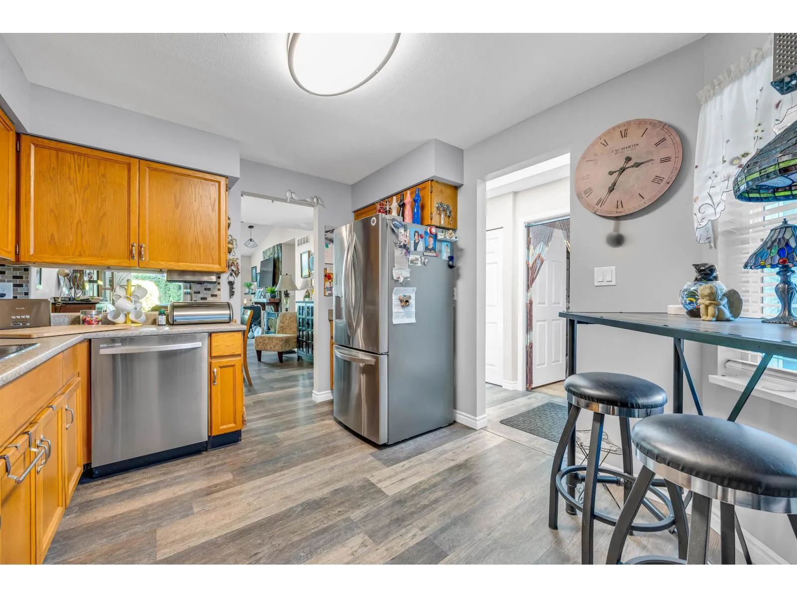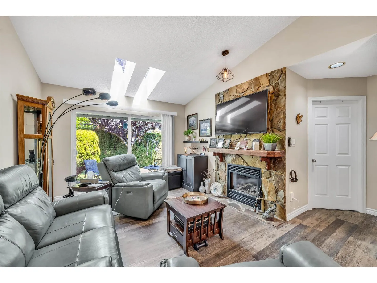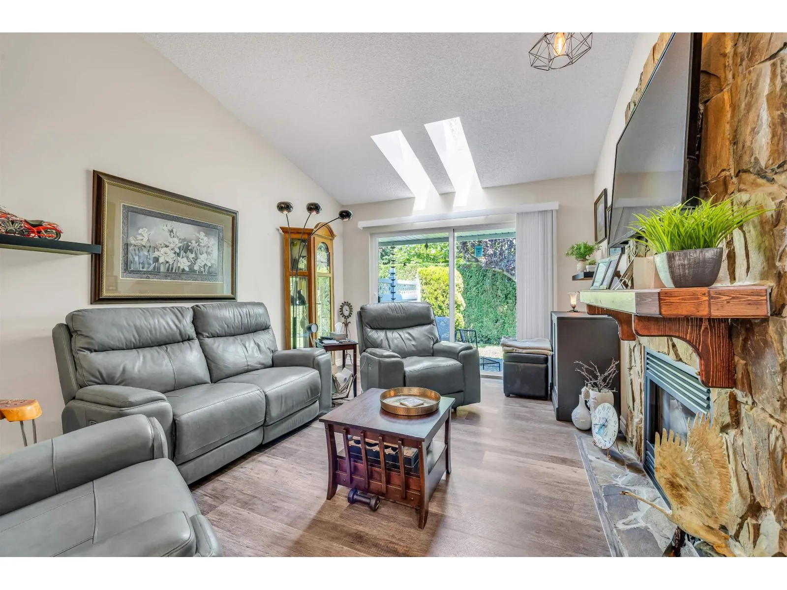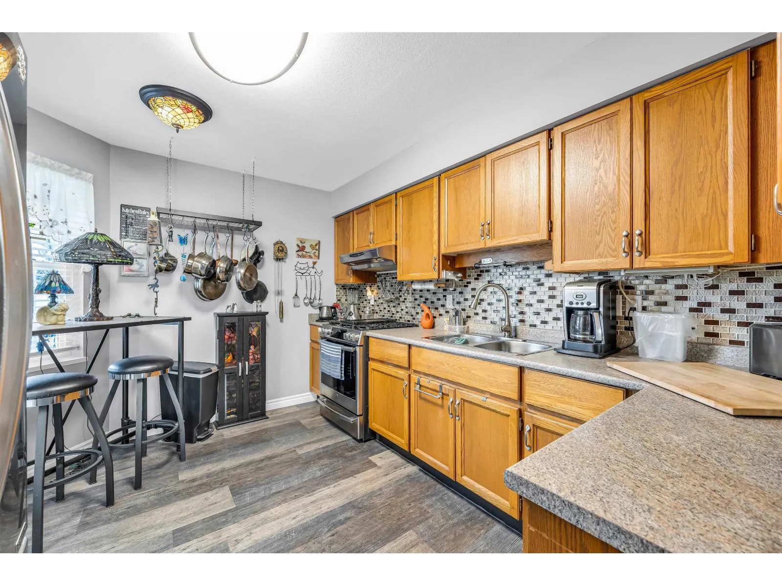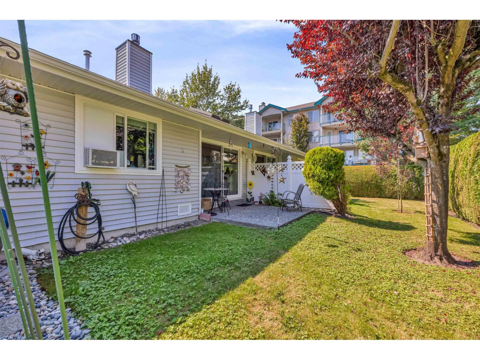 Welcome to Morningside Estates! This charming 55+ age-restricted rancher-style bungalow offers 2 bedrooms and 958 sq. ft. of comfortable living space. Recent updates within the past three years include new vinyl flooring, fireplace mantle, a new stove, new fridge, and updated plumbing in the crawlspace. The spacious primary bedroom features its own ensuite, while the second bedroom is versatile-perfect as a guest room, office, or home gym. From the kitchen, step into the serene living room and out to the peaceful backyard, an ideal spot to enjoy your morning coffee. Please note: for all showings please park on 205 street as there are no visitor parking stalls within the complex. (id:27476)