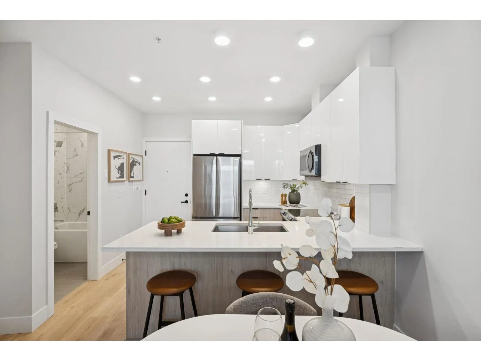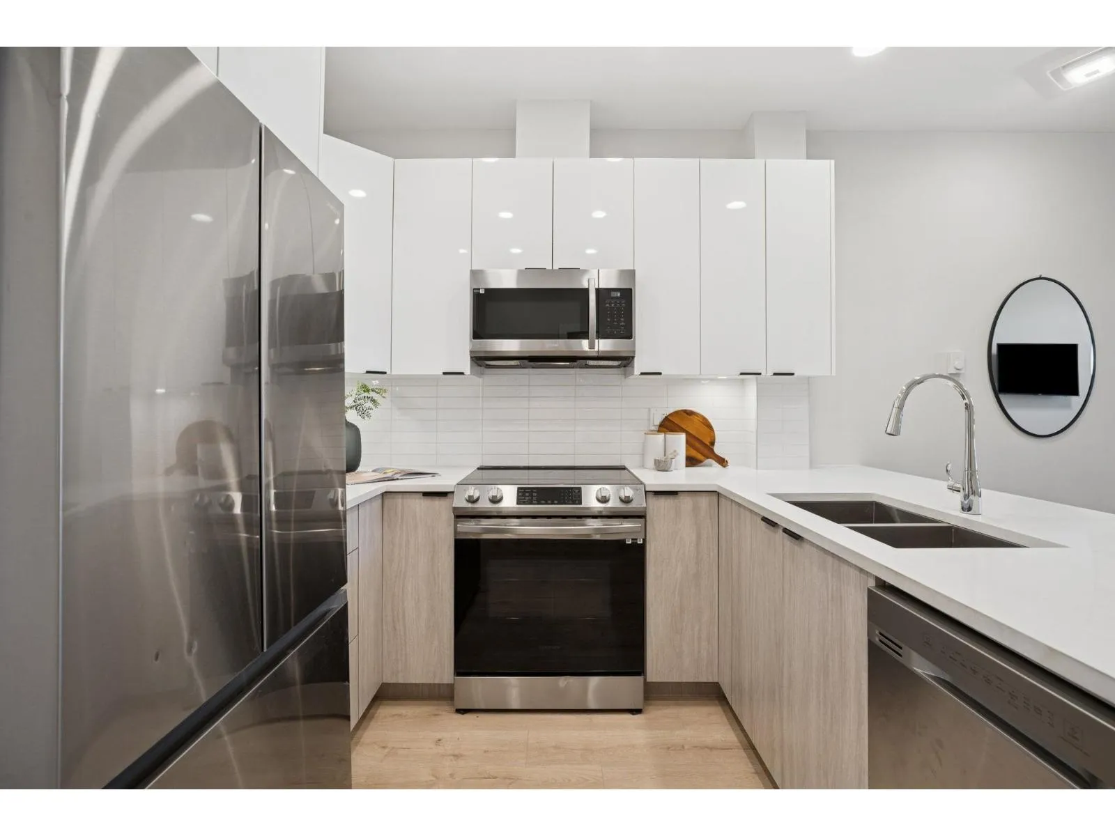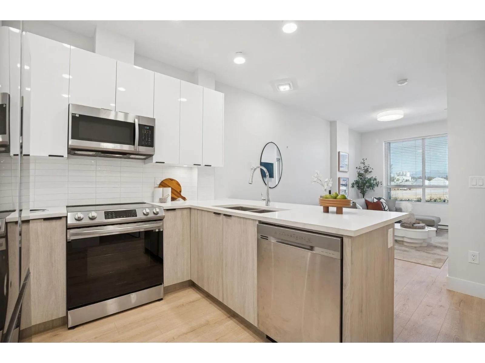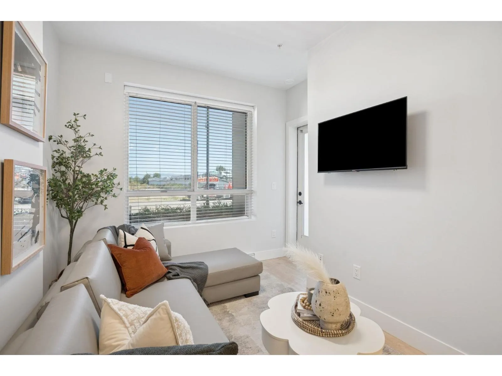 Newly Renovated and move-in ready! This 1 bed, 1 bath unit in the sold-out GENESIS by Whitetail Homes offers 460 sq ft of bright, open-concept living. Closet new project in Langley to future skytrain station. Recently fully redone after an insurance claim, it features brand new quartz counters, stainless steel appliances, wide-plank laminate flooring, and a spa-style bath and 9 foot ceilings. Enjoy year-round use of the covered patio and ground level entrance. The building offers excellent amenities including a gym, landscaped courtyard with putting green, and meeting rooms, Located steps from future SkyTrain, shopping, restaurants, and schools. Rentals and 2 pets allowed-ideal for investors or first-time buyers! (id:27476)