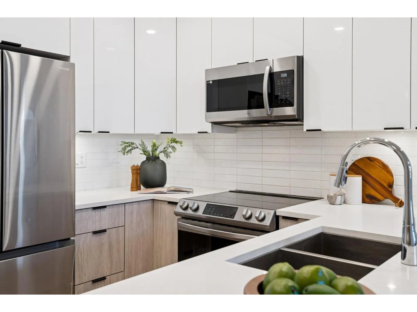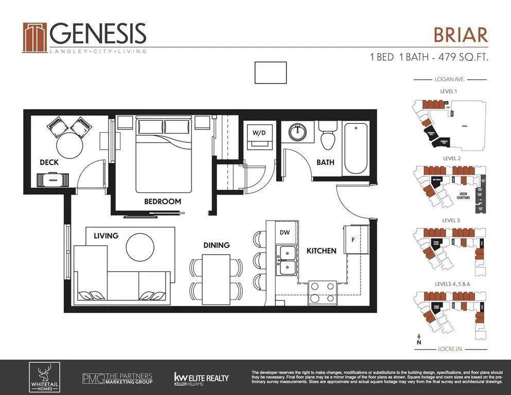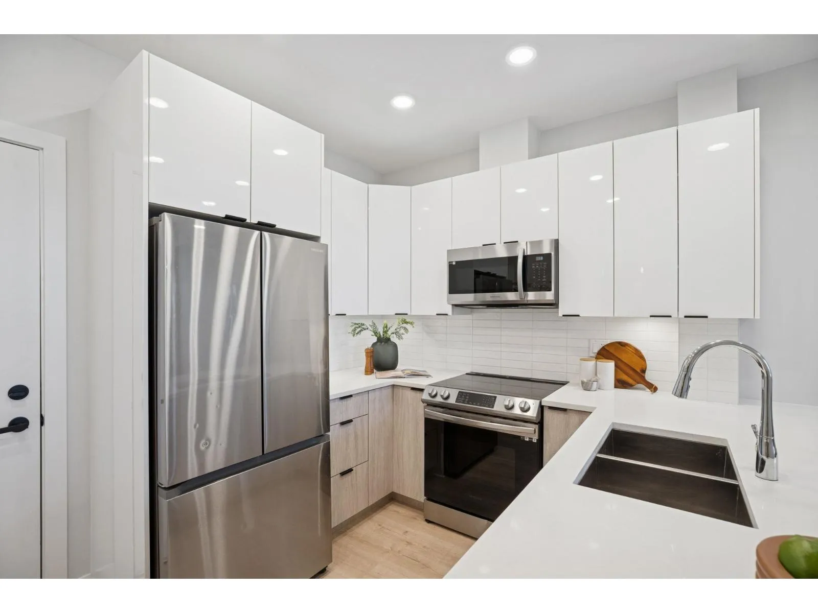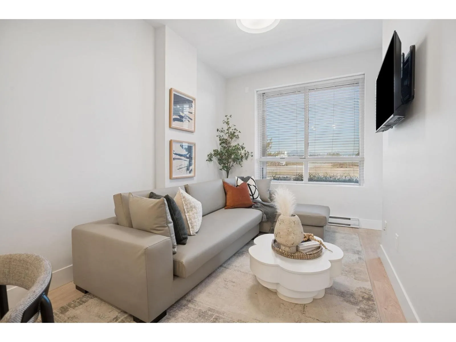 Newly Renovated and move-in ready! This 1 bed, 1 bath unit in the sold-out GENESIS by Whitetail Homes offers 460 sq ft of bright, open-concept living. Closet new project in Langley to future skytrain station. Recently fully redone after an insurance claim, it features brand new quartz counters, stainless steel appliances, wide-plank laminate flooring, and a spa-style bath and 9 foot ceilings. Enjoy year-round use of the covered patio and ground level entrance. The building offers excellent amenities including a gym, landscaped courtyard with putting green, and meeting rooms, Located steps from future SkyTrain, shopping, restaurants, and schools. Rentals and 2 pets allowed-ideal for investors or first-time buyers! (id:27476)