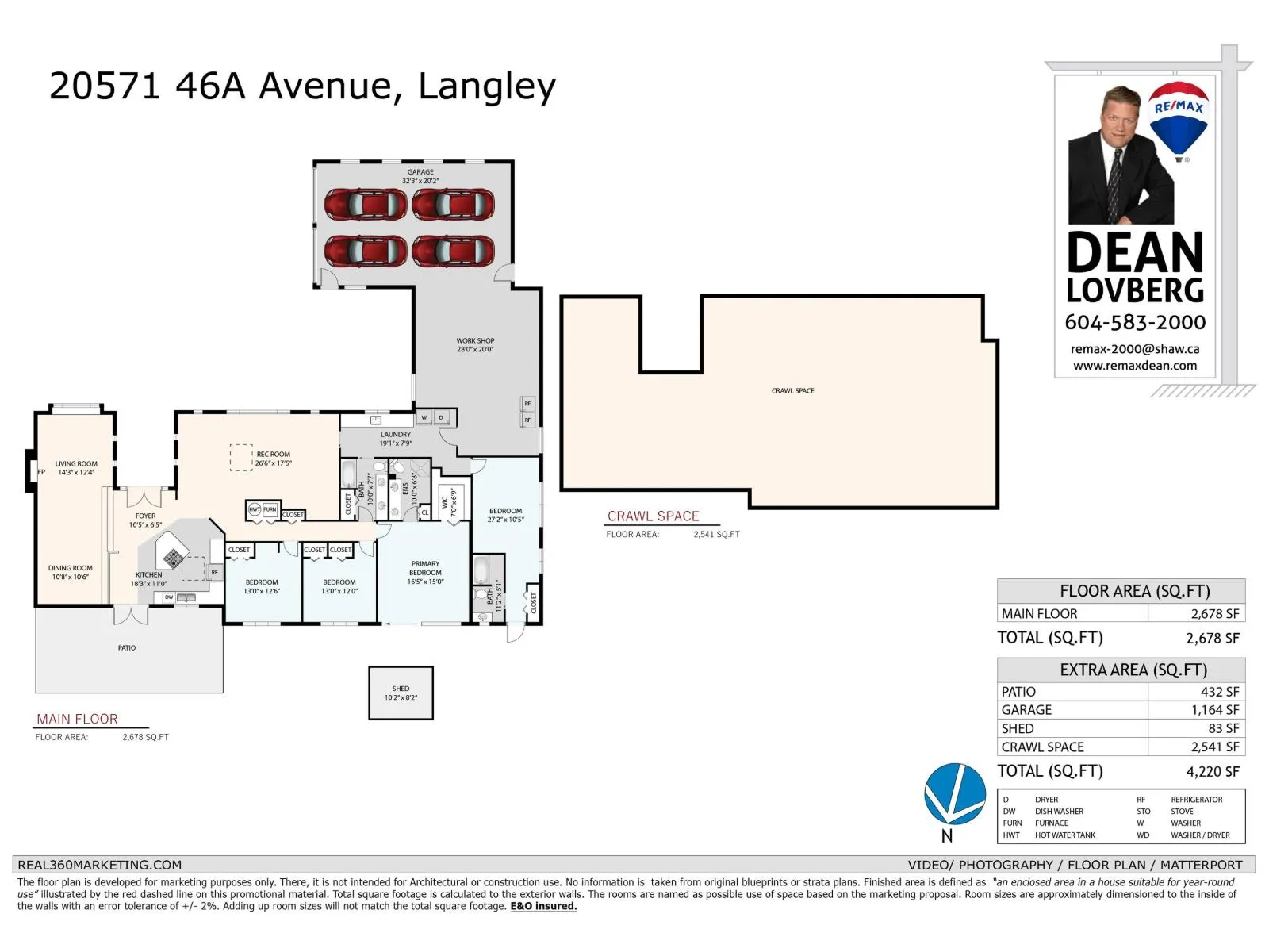 Rare Opportunity on One of Langley's Premier Streets! This spacious 2,678 sq. ft. 4-bed, 3-bath rancher sits on a massive 12,497 sq. ft. (99' x 126') lot. The attached 20'2 x 32'3 shop with 10' doors plus an additional 20' x 28' workshop makes it an ideal setup for the car enthusiast or hobbyist. Inside, you'll find a bright open kitchen with ample cupboard and counter space, flowing seamlessly into the living, dining, and family rooms. All bedrooms are generously sized, with the entire home offering the convenience of single-level living. The private backyard features a large patio, perfect for entertaining or relaxing. Nestled in a peaceful, tranquil area just steps to transit and minutes from shopping. (id:27476)
